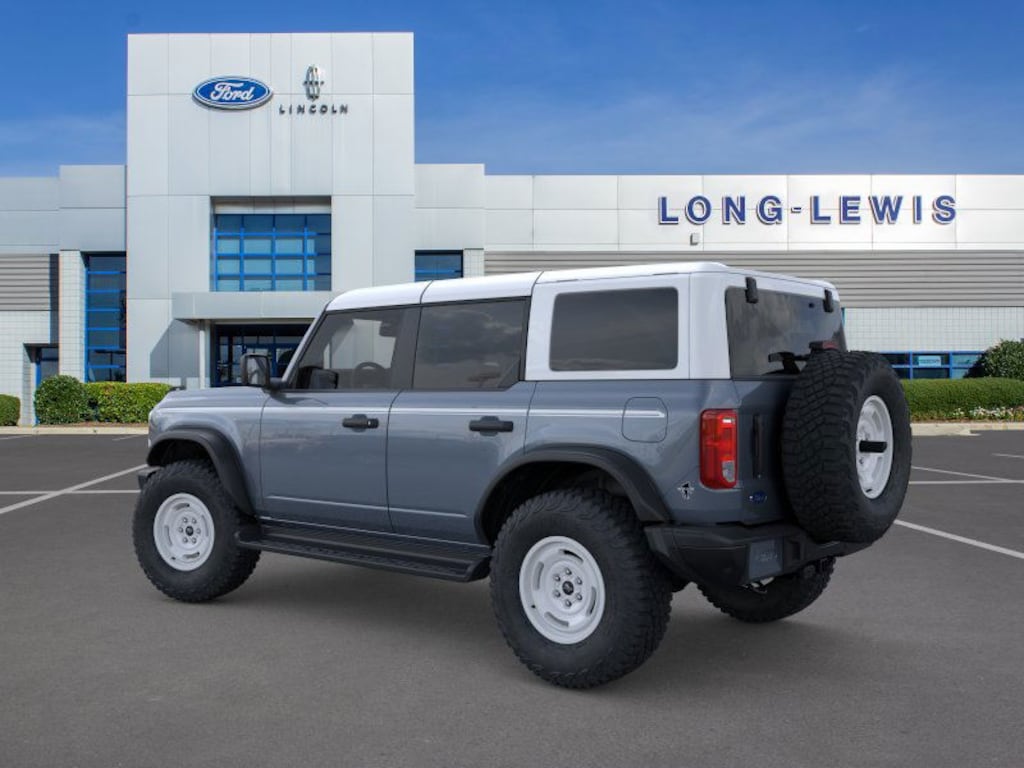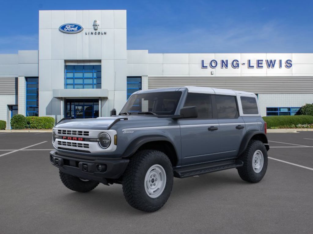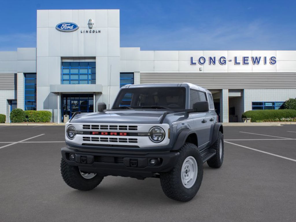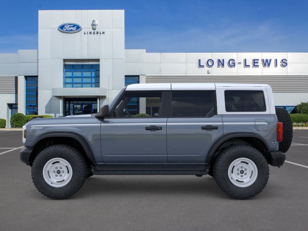 Dealer Discount of $2,616 off MSRP Azure Gray Metallic Tri-Coat 2025 Ford Bronco Heritage Edition NFT 4WD 10-Speed Automatic 2.7L EcoBoost V6 4-Wheel Disc Brakes, 7 Speakers, ABS brakes, Air Conditioning, Alloy wheels, AM/FM radio: SiriusXM with 360L, AM/FM Stereo, Auto High-beam Headlights, Auto-dimming Rear-View mirror, Automatic temperature control, Brake assist, Compass, Connected Navigation, Convertible HardTop, Convertible roof lining, Delay-off headlights, Driver door bin, Driver vanity mirror, Dual front impact airbags, Dual front side impact airbags, Electronic Stability Control, Emergency communication system: 911 Assist, Equipment Group 662A Mid Package, Exterior Parking Camera Rear, Front anti-roll bar, Front Bucket Seats, Front Center Armrest, Front dual zone A/C, Front fog lights, Front License Plate Bracket, Front reading lights, Front wheel independent suspension, Fully automatic headlights, Glass rear window, Heated door mirrors, Heated front seats, Heated steering wheel, Illuminated entry, Integrated roll-over protection, Leather Shift Knob, Low tire pressure warning, Navigation system: Connected Navigation, Occupant sensing airbag, Outside temperature display, Overhead airbag, Overhead console, Panic alarm, Passenger door bin, Passenger vanity mirror, Plaid Cloth Front Heated Bucket Seats, Power door mirrors, Power steering, Power windows, Radio data system, Rear window defroster, Rear window wiper, Remote keyless entry, Security system, SiriusXM w/360L, Speed control, Split folding rear seat, Steering wheel mounted audio controls, SYNC 4, Tachometer, Telescoping steering wheel, Tilt steering wheel, Traction control, Trip computer, Variably intermittent wipers, Wheels: 17" Unique White.