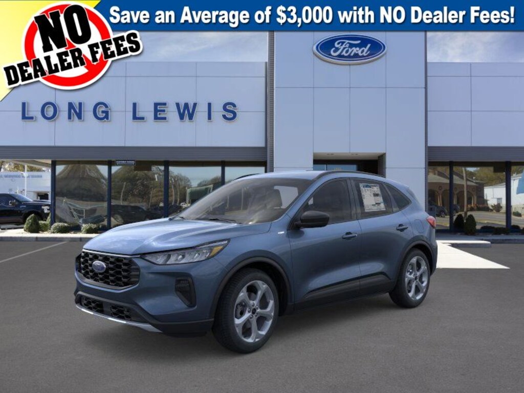 Vapor Blue Metallic 2025 Ford Escape ST-Line fctp FWD eCVT 2.5L iVCT 2.5L iVCT, eCVT, 3.81 Axle Ratio, 4-Wheel Disc Brakes, 6 Speakers, ABS brakes, Adaptive Cruise Control w/Stop-and-Go, Air Conditioning, Alloy wheels, AM/FM radio: SiriusXM, AM/FM Stereo, Auto High-beam Headlights, Automatic temperature control, Brake assist, Bumpers: body-color, Compass, Connected Navigation, Delay-off headlights, Driver door bin, Driver vanity mirror, Dual front impact airbags, Dual front side impact airbags, Electronic Stability Control, Emergency communication system: SYNC 4 911 Assist, Ford Co-Pilot360 Assist+, FordPass Connect, Four wheel independent suspension, Front anti-roll bar, Front Bucket Seats, Front Center Armrest, Front dual zone A/C, Front License Plate Bracket, Front reading lights, Fully automatic headlights, Illuminated entry, Intersection Assist, Knee airbag, Low tire pressure warning, Occupant sensing airbag, Outside temperature display, Overhead airbag, Overhead console, Panic alarm, Passenger door bin, Passenger vanity mirror, Power door mirrors, Power driver seat, Power Liftgate, Power steering, Power windows, Predictive Speed Assist, Radio data system, Rear anti-roll bar, Rear Parking Sensor, Rear reading lights, Rear seat center armrest, Rear window defroster, Rear window wiper, Rear-View Camera, Remote keyless entry, Speed control, Speed-sensing steering, Speed-Sensitive Wipers, Split folding rear seat, Spoiler, Sport steering wheel, Steering wheel mounted audio controls, SYNC 4, SYNC 4 w/Enhanced Voice Recognition, Tachometer, Tech Pack #1, Telescoping steering wheel, Tilt steering wheel, Traction control, Trip computer, Variably intermittent wipers, Vinyl/Cloth Front Sport Contour Bucket Seats, Wheels: 18" Rock Metallic Painted Aluminum, 2.5L iVCT, eCVT.