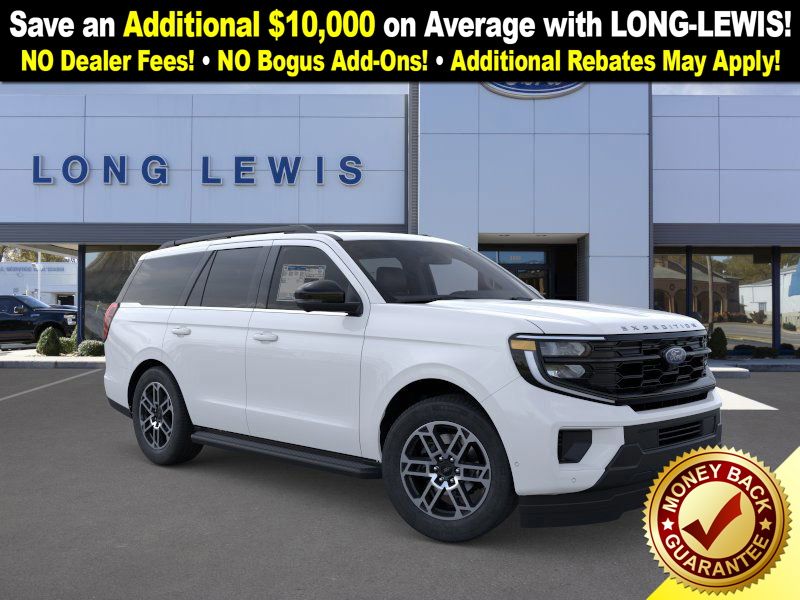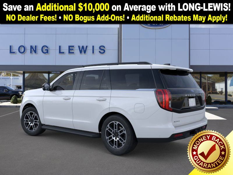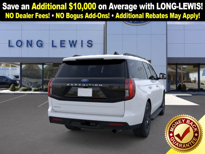 Oxford White 2025 Ford Expedition Active FCT RWD 10-Speed Automatic EcoBoost 3.5L V6 GTDi DOHC 24V Twin Turbocharged 3.31 Axle Ratio, 3rd row seats: split-bench, 4-Wheel Disc Brakes, 6 Speakers, ABS brakes, ActiveX Front Heated Captain's Chairs, Air Conditioning, Alloy wheels, AM/FM radio: SiriusXM with 360L, Apple CarPlay/Android Auto, Auto High-beam Headlights, Auto-dimming Rear-View mirror, Automatic temperature control, Brake assist, Bumpers: body-color, Cloth Front Captain's Chairs, Compass, Delay-off headlights, Driver door bin, Driver vanity mirror, Dual front impact airbags, Dual front side impact airbags, Electronic Stability Control, Emergency communication system: 911 Assist, Exterior Parking Camera Rear, Four wheel independent suspension, Front anti-roll bar, Front Bucket Seats, Front Center Armrest, Front dual zone A/C, Front License Plate Bracket, Front reading lights, Fully automatic headlights, Heated door mirrors, Illuminated entry, Low tire pressure warning, Navigation System, Occupant sensing airbag, Outside temperature display, Overhead airbag, Overhead console, Panic alarm, Passenger door bin, Passenger vanity mirror, Power door mirrors, Power driver seat, Power passenger seat, Power steering, Power windows, Radio data system, Radio: AM/FM Stereo w/MP3 Capable, Rear air conditioning, Rear anti-roll bar, Rear reading lights, Rear window defroster, Rear window wiper, Reclining 3rd row seat, Remote keyless entry, Security system, SiriusXM w/360L, Speed control, Speed-sensing steering, Speed-Sensitive Wipers, Split folding rear seat, Spoiler, Steering wheel mounted audio controls, Tachometer, Telescoping steering wheel, Tilt steering wheel, Traction control, Trip computer, Variably intermittent wipers, Voltmeter, Wheels: 18" Dark Alloy Painted Aluminum.