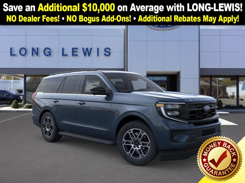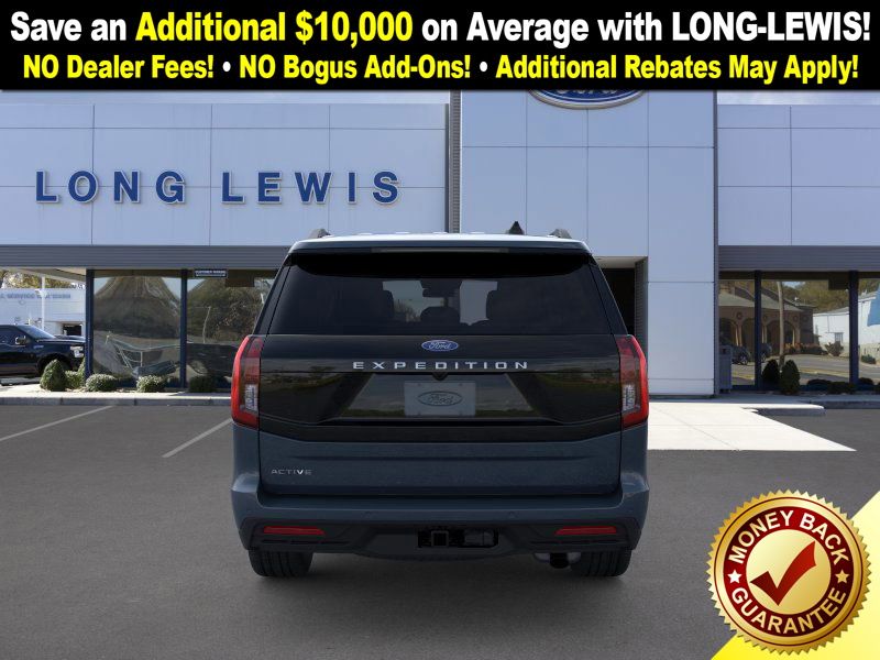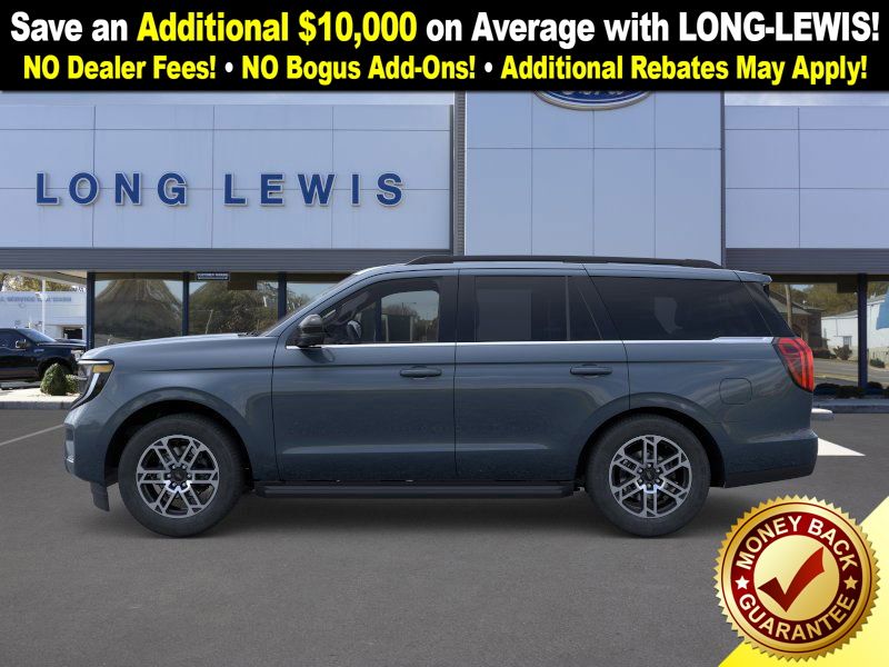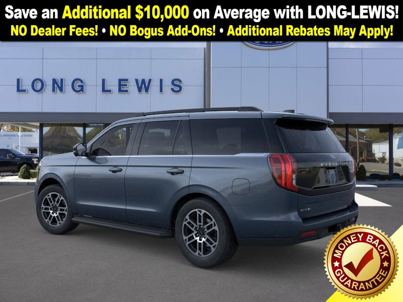 Stone Blue Metallic 2025 Ford Expedition Active FCT RWD 10-Speed Automatic EcoBoost 3.5L V6 GTDi DOHC 24V Twin Turbocharged 3.31 Axle Ratio, 3rd row seats: split-bench, 4-Wheel Disc Brakes, 6 Speakers, ABS brakes, ActiveX Front Heated Captain's Chairs, Air Conditioning, Alloy wheels, AM/FM radio: SiriusXM with 360L, Apple CarPlay/Android Auto, Auto High-beam Headlights, Auto-dimming Rear-View mirror, Automatic temperature control, Brake assist, Bumpers: body-color, Cloth Front Captain's Chairs, Compass, Delay-off headlights, Driver door bin, Driver vanity mirror, Dual front impact airbags, Dual front side impact airbags, Electronic Stability Control, Emergency communication system: 911 Assist, Exterior Parking Camera Rear, Four wheel independent suspension, Front anti-roll bar, Front Bucket Seats, Front Center Armrest, Front dual zone A/C, Front License Plate Bracket, Front reading lights, Fully automatic headlights, Heated door mirrors, Illuminated entry, Low tire pressure warning, Navigation System, Occupant sensing airbag, Outside temperature display, Overhead airbag, Overhead console, Panic alarm, Passenger door bin, Passenger vanity mirror, Power door mirrors, Power driver seat, Power passenger seat, Power steering, Power windows, Radio data system, Radio: AM/FM Stereo w/MP3 Capable, Rear air conditioning, Rear anti-roll bar, Rear reading lights, Rear window defroster, Rear window wiper, Reclining 3rd row seat, Remote keyless entry, Security system, SiriusXM w/360L, Speed control, Speed-sensing steering, Speed-Sensitive Wipers, Split folding rear seat, Spoiler, Steering wheel mounted audio controls, Tachometer, Telescoping steering wheel, Tilt steering wheel, Traction control, Trip computer, Variably intermittent wipers, Voltmeter, Wheels: 18" Dark Alloy Painted Aluminum.