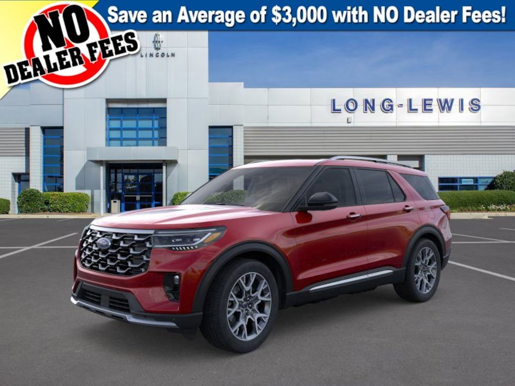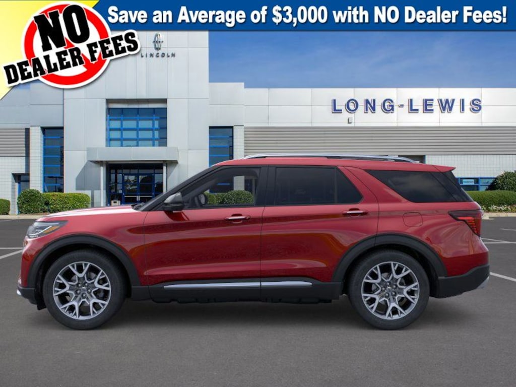 Dealer Discount of $3,484 off MSRP Rapid Red Metallic Tinted Clearcoat 2025 Ford Explorer Platinum RWD 10-Speed Automatic 3.0L EcoBoost V6 14 Speakers, 3.58 Non-Limited Slip Rear Axle, 3rd row seats: bench, 4-Wheel Disc Brakes, ABS brakes, ActiveX Trimmed Sport Captain's Chairs, Air Conditioning, Alloy wheels, AM/FM radio: SiriusXM with 360L, Apple CarPlay/Android Auto, Auto High-beam Headlights, Auto-dimming door mirrors, Auto-dimming Rear-View mirror, Automatic temperature control, Brake assist, Bumpers: body-color, Compass, Delay-off headlights, Driver door bin, Driver vanity mirror, Dual front impact airbags, Dual front side impact airbags, Electronic Stability Control, Emergency communication system: 911 Assist, Equipment Group 600A Standard Package, Exterior Parking Camera Rear, Ford BlueCruise Equipped (1-Year Plan) (DISC), Four wheel independent suspension, Front anti-roll bar, Front Bucket Seats, Front Center Armrest, Front dual zone A/C, Front fog lights, Front License Plate Bracket, Front reading lights, Fully automatic headlights, Garage door transmitter, Heated door mirrors, Heated front seats, Heated rear seats, Heated steering wheel, Illuminated entry, Knee airbag, Leather Seating Surfaces Sport Captain Chairs, Leather steering wheel, Low tire pressure warning, Lux Leather Package, Memory seat, Navigation System, Occupant sensing airbag, Outside temperature display, Overhead airbag, Overhead console, Panic alarm, Passenger door bin, Passenger vanity mirror, Platinum Badges on Front Row Seats, Power door mirrors, Power driver seat, Power Liftgate, Power moonroof, Power passenger seat, Power steering, Power windows, Quilting & Stitching on Door Panels, Quilting & Stitching on Seats, Radio data system, Radio: B&O Sound System by Bang & Olufsen w/HD, Rain sensing wipers, Rear air conditioning, Rear anti-roll bar, Rear reading lights, Rear window defroster, Rear window wiper, Remote keyless entry, Security system, Speed control, Speed-sensing steering, Speed-Sensitive Wipers, Split folding rear seat, Spoiler, Steering wheel mounted audio controls, Tachometer, Telescoping steering wheel, Tilt steering wheel, Traction control, Trip computer, Turn signal indicator mirrors, Ultimate Package, Variably intermittent wipers, Ventilated front seats, Wheels: 20" Luster Nickel-Painted Aluminum, Wheels: 21" Dark Alloy-Painted Machined Aluminum. Price includes: $1500 - Bonus Customer Cash. Exp. 01/05/2026