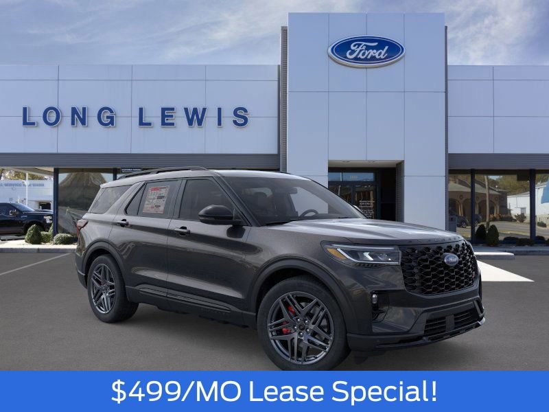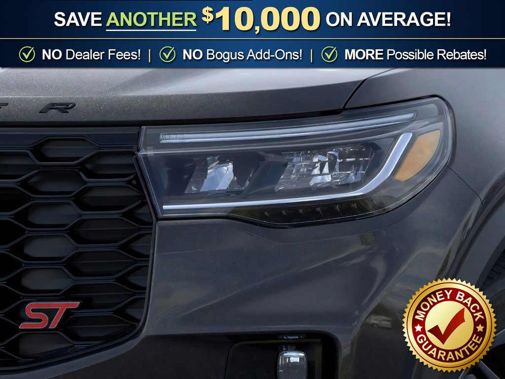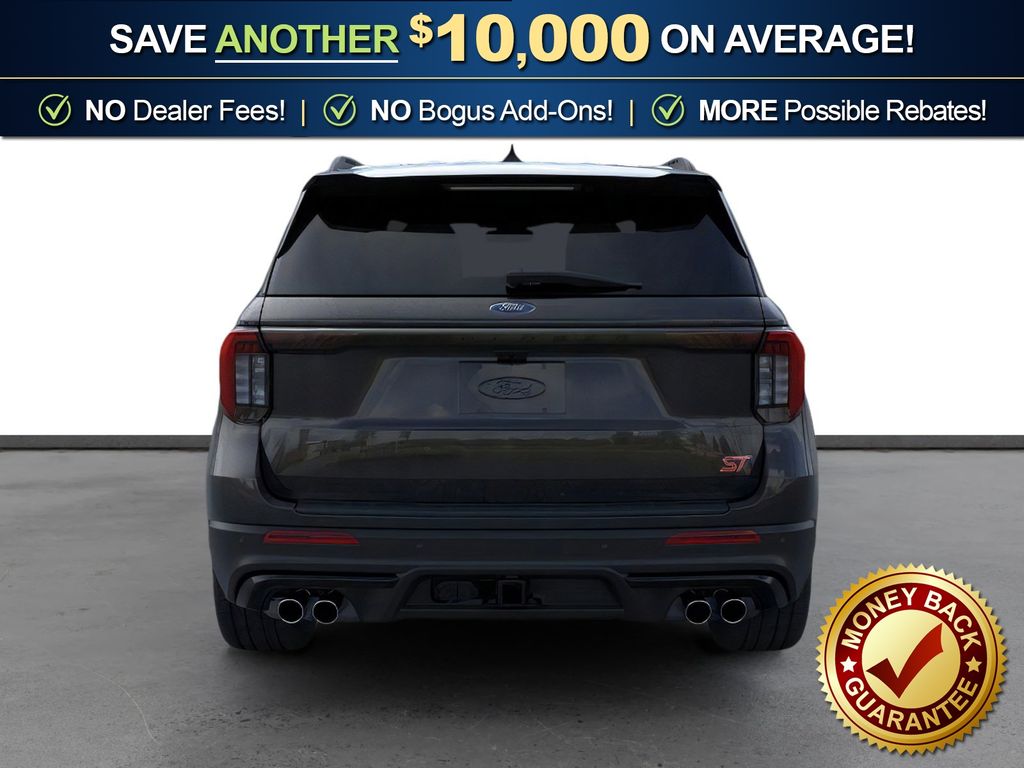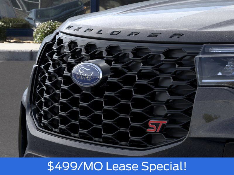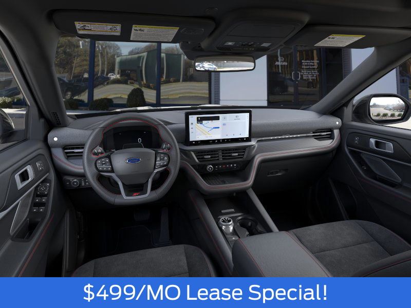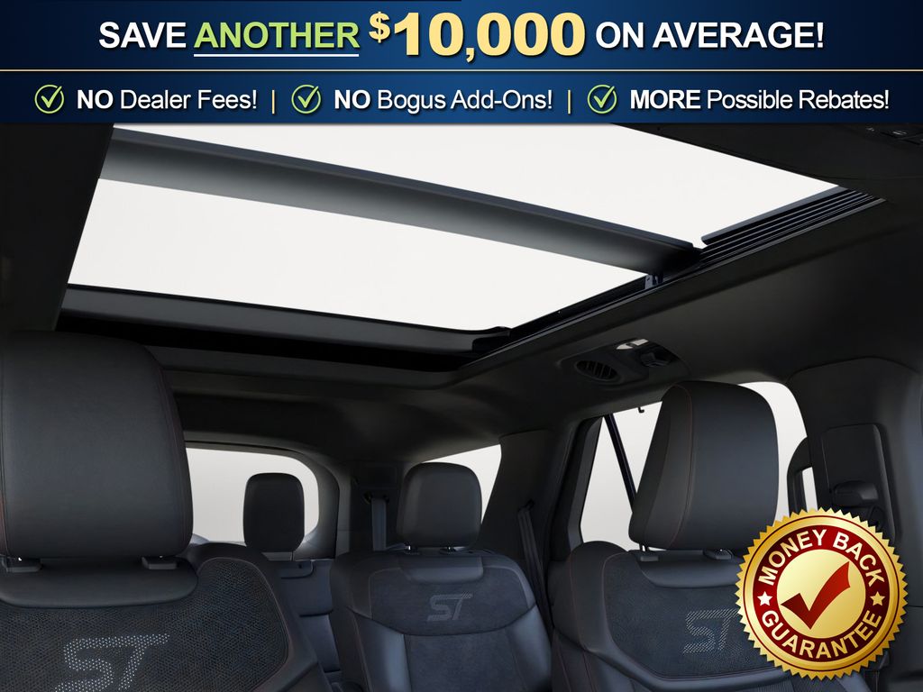 Agate Black Metallic 2025 Ford Explorer ST fctp 4WD 10-Speed Automatic 3.0L EcoBoost V6 4WD, 10 Speakers, 3.58 Non-Limited Slip Rear Axle, 3rd row seats: bench, 4-Wheel Disc Brakes, ABS brakes, Air Conditioning, Alloy wheels, Apple CarPlay/Android Auto, Auto High-beam Headlights, Auto-dimming door mirrors, Auto-dimming Rear-View mirror, Automatic temperature control, B&O Sound System by Bang & Olufsen, Brake assist, Bumpers: body-color, Compass, Delay-off headlights, Driver door bin, Driver vanity mirror, Dual front impact airbags, Dual front side impact airbags, Electronic Stability Control, Emergency communication system: 911 Assist, Exterior Parking Camera Rear, Four wheel independent suspension, Front anti-roll bar, Front Bucket Seats, Front Center Armrest, Front dual zone A/C, Front fog lights, Front License Plate Bracket, Front reading lights, Fully automatic headlights, Garage door transmitter, Heated door mirrors, Heated front seats, Heated rear seats, Heated steering wheel, Heated/Ventilated Miko Sport Captain's Chairs, Illuminated entry, Knee airbag, Leather steering wheel, Low tire pressure warning, Memory seat, Multicontour Seats w/Front Active Motion, Navigation System, Occupant sensing airbag, Outside temperature display, Overhead airbag, Overhead console, Panic alarm, Panoramic Vista Roof w/Power Shade, Passenger door bin, Passenger vanity mirror, Power door mirrors, Power driver seat, Power Liftgate, Power passenger seat, Power steering, Power windows, Radio: B&O Sound System by Bang & Olufsen, Rear air conditioning, Rear anti-roll bar, Rear reading lights, Rear window defroster, Rear window wiper, Remote keyless entry, SecuriCode Keyless Entry Keypad, Security system, Speed control, Speed-sensing steering, Speed-Sensitive Wipers, Split folding rear seat, Spoiler, Sport steering wheel, Steering wheel mounted audio controls, Sun and Sound Package, Tachometer, Telescoping steering wheel, Tilt steering wheel, Traction control, Trip computer, Turn signal indicator mirrors, Variably intermittent wipers, Ventilated front seats, Wheels: 21" Magnetite-Painted Aluminum, 4WD.