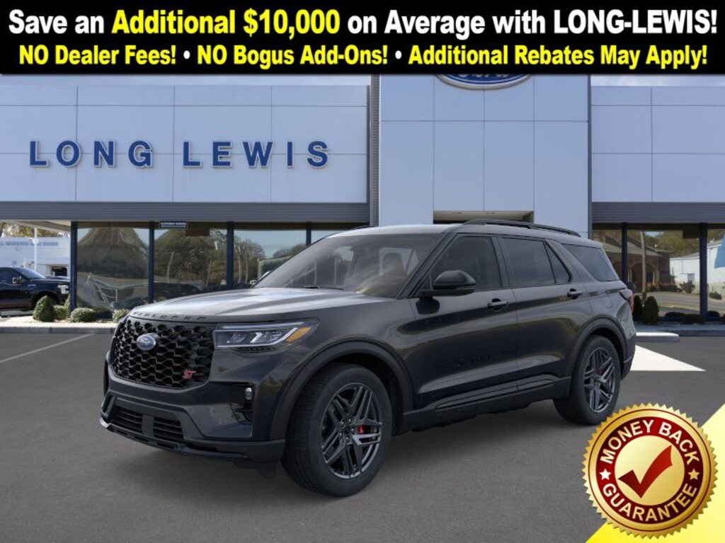 Agate Black Metallic 2025 Ford Explorer ST 4WD 10-Speed Automatic 3.0L EcoBoost V6 4WD, 10 Speakers, 3.58 Non-Limited Slip Rear Axle, 3rd row seats: bench, 4-Wheel Disc Brakes, ABS brakes, Air Conditioning, Alloy wheels, AM/FM radio: SiriusXM with 360L, Apple CarPlay/Android Auto, Auto High-beam Headlights, Auto-dimming door mirrors, Auto-dimming Rear-View mirror, Automatic temperature control, B&O Sound System by Bang & Olufsen, Brake assist, Bumpers: body-color, Compass, Delay-off headlights, Driver door bin, Driver vanity mirror, Dual front impact airbags, Dual front side impact airbags, Electronic Stability Control, Emergency communication system: 911 Assist, Exterior Parking Camera Rear, Four wheel independent suspension, Front anti-roll bar, Front Bucket Seats, Front Center Armrest, Front dual zone A/C, Front fog lights, Front License Plate Bracket, Front reading lights, Fully automatic headlights, Garage door transmitter, Heated door mirrors, Heated front seats, Heated rear seats, Heated steering wheel, Heated/Ventilated Miko Sport Captain's Chairs, Illuminated entry, Knee airbag, Leather steering wheel, Low tire pressure warning, Memory seat, Multicontour Seats w/Front Active Motion, Navigation System, Occupant sensing airbag, Outside temperature display, Overhead airbag, Overhead console, Panic alarm, Panoramic Vista Roof w/Power Shade, Passenger door bin, Passenger vanity mirror, Power door mirrors, Power driver seat, Power Liftgate, Power passenger seat, Power steering, Power windows, Radio: B&O Sound System by Bang & Olufsen, Rain sensing wipers, Rear air conditioning, Rear anti-roll bar, Rear reading lights, Rear window defroster, Rear window wiper, Remote keyless entry, SecuriCode Keyless Entry Keypad, Security system, Speed control, Speed-sensing steering, Speed-Sensitive Wipers, Split folding rear seat, Spoiler, Sport steering wheel, Steering wheel mounted audio controls, Sun and Sound Package, Tachometer, Telescoping steering wheel, Tilt steering wheel, Traction control, Trip computer, Turn signal indicator mirrors, Variably intermittent wipers, Ventilated front seats, Wheels: 21" Magnetite-Painted Aluminum, 4WD.