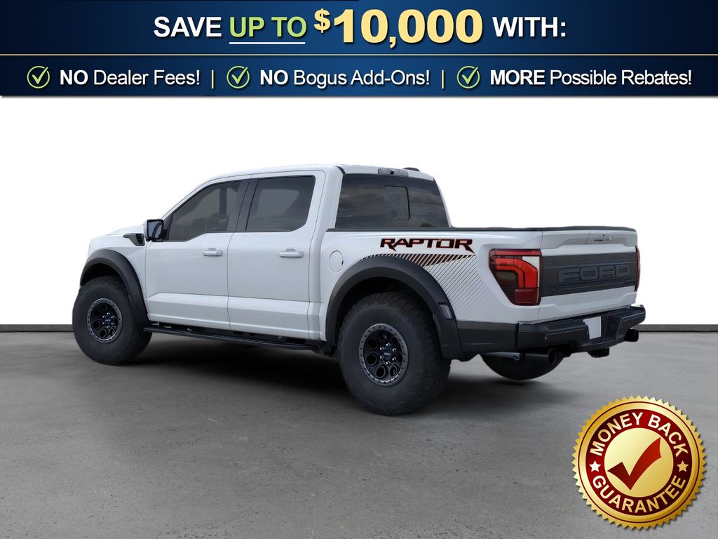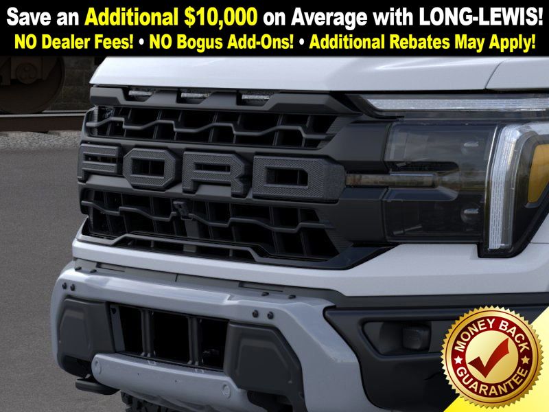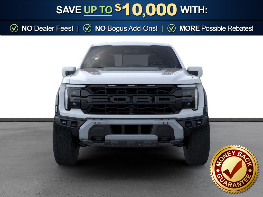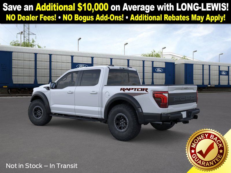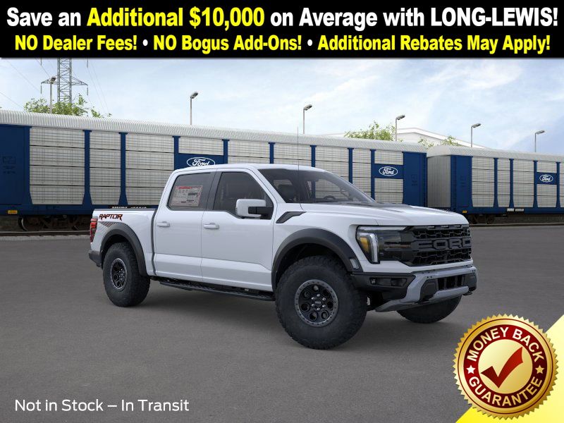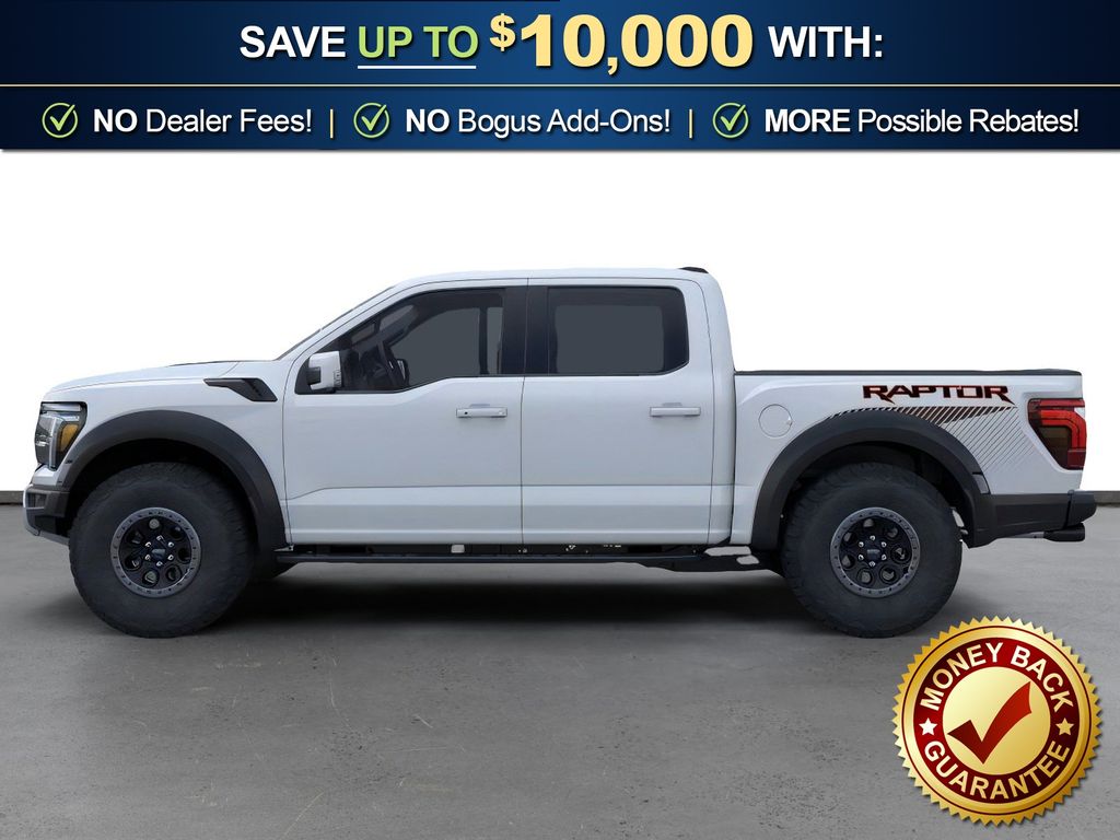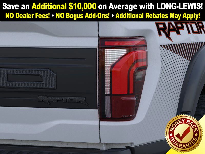 Space White Metallic 2025 Ford F-150 Raptor NFT 4WD 10-Speed Automatic 3.5L V6 EcoBoost 4WD, 14 Speakers, 17" Cast Aluminum Wheels, 4-Wheel Disc Brakes, ABS brakes, Adjustable pedals, Air Conditioning, Alloy wheels, AM/FM radio: SiriusXM with 360L, Auto High-beam Headlights, Auto tilt-away steering wheel, Auto-dimming door mirrors, Auto-dimming Rear-View mirror, Automatic temperature control, Brake assist, Bumpers: body-color, Carbon Fiber Interior Appliques, Compass, Delay-off headlights, Driver door bin, Driver vanity mirror, Dual front impact airbags, Dual front side impact airbags, Dual Valve Shocks, Electronic Locking w/4.10 Axle Ratio, Electronic Stability Control, Emergency communication system: SYNC 4 911 Assist, Equipment Group 802A Raptor 37, Front anti-roll bar, Front Bucket Seats, Front Center Armrest, Front dual zone A/C, Front fog lights, Front License Plate Bracket, Front reading lights, Front wheel independent suspension, Fully automatic headlights, Garage door transmitter, Heads-Up Display, Heated door mirrors, Heated front seats, Heated rear seats, Heated steering wheel, Illuminated entry, Internet access capable: FordPass Connect 5G, Lane Departure Warning System, Leather steering wheel, Leather Trimmed Seats, Low tire pressure warning, Memory seat, Modular Front Bumper, Navigation system: Connected Navigation, Occupant sensing airbag, Outside temperature display, Overhead airbag, Overhead console, Panic alarm, Passenger door bin, Passenger vanity mirror, Pedal memory, Power door mirrors, Power driver seat, Power passenger seat, Power steering, Power windows, Radio data system, Radio: B&O Unleashed Sound System by Bang & Olufsen, Rain sensing wipers, Rear reading lights, Rear step bumper, Rear window defroster, RECARO Alcantara Suede Front Seats, RECARO w/Code Orange Stitching Front Seats, Remote keyless entry, Security system, Speed control, Speed-sensing steering, Split folding rear seat, Steering wheel memory, Steering wheel mounted audio controls, SYNC 4 w/Enhanced Voice Recognition, Tachometer, Telescoping steering wheel, Tilt steering wheel, Traction control, Trip computer, Turn signal indicator mirrors, Twin Panel Moonroof, Variably intermittent wipers, Ventilated front seats, Wheels: Raptor 37 Unique 17" Cast Aluminum, 4WD.