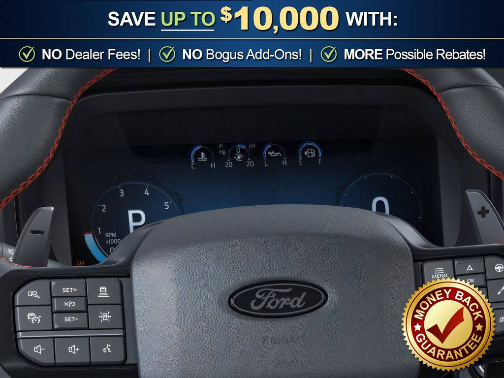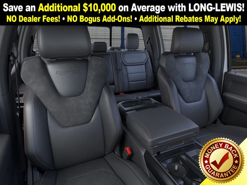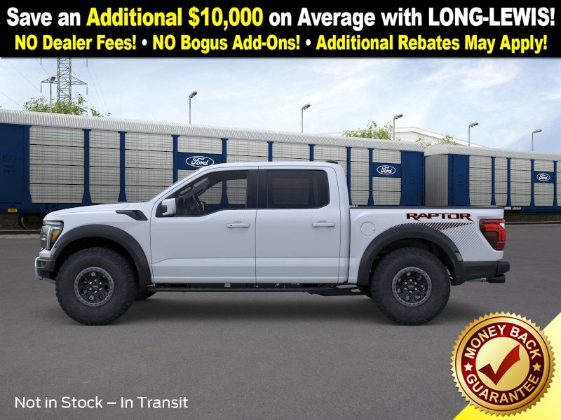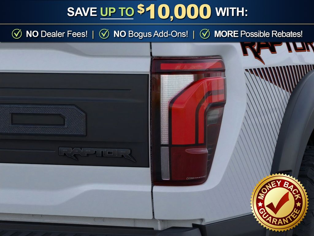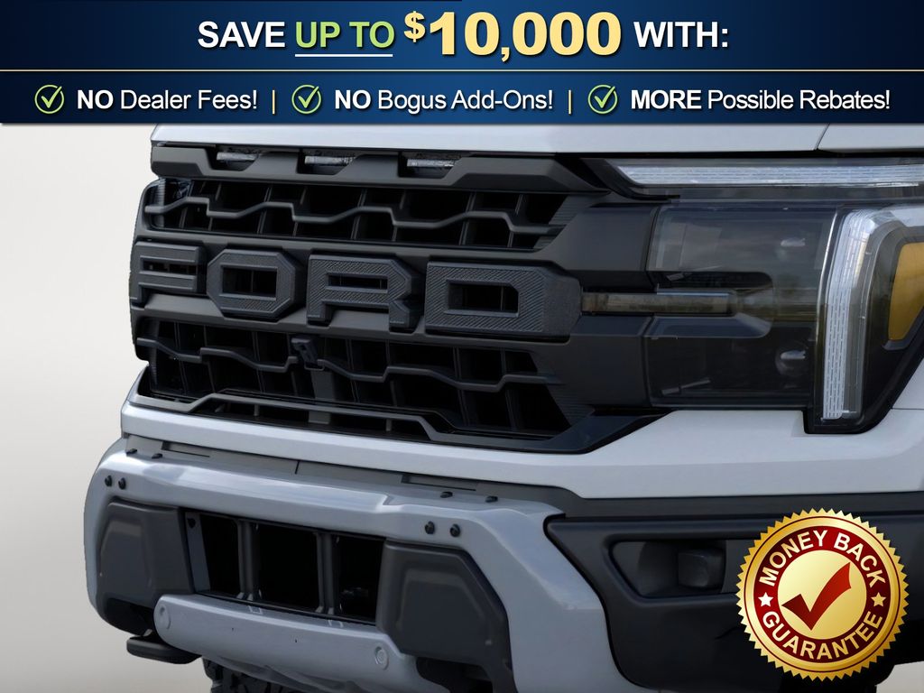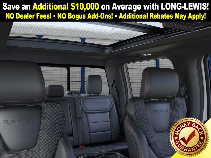 Space White Metallic 2025 Ford F-150 Raptor NFT 4WD 10-Speed Automatic 3.5L V6 EcoBoost 4WD, 14 Speakers, 17" Cast Aluminum Wheels, 4-Wheel Disc Brakes, ABS brakes, Adjustable pedals, Air Conditioning, Alloy wheels, AM/FM radio: SiriusXM with 360L, Auto High-beam Headlights, Auto tilt-away steering wheel, Auto-dimming door mirrors, Auto-dimming Rear-View mirror, Automatic temperature control, Brake assist, Bumpers: body-color, Carbon Fiber Interior Appliques, Compass, Delay-off headlights, Driver door bin, Driver vanity mirror, Dual front impact airbags, Dual front side impact airbags, Dual Valve Shocks, Electronic Locking w/4.10 Axle Ratio, Electronic Stability Control, Emergency communication system: SYNC 4 911 Assist, Equipment Group 802A Raptor 37, Front anti-roll bar, Front Bucket Seats, Front Center Armrest, Front dual zone A/C, Front fog lights, Front License Plate Bracket, Front reading lights, Front wheel independent suspension, Fully automatic headlights, Garage door transmitter, Heads-Up Display, Heated door mirrors, Heated front seats, Heated rear seats, Heated steering wheel, Illuminated entry, Internet access capable: FordPass Connect 5G, Lane Departure Warning System, Leather steering wheel, Leather Trimmed Seats, Low tire pressure warning, Memory seat, Modular Front Bumper, Navigation system: Connected Navigation, Occupant sensing airbag, Outside temperature display, Overhead airbag, Overhead console, Panic alarm, Passenger door bin, Passenger vanity mirror, Pedal memory, Power door mirrors, Power driver seat, Power passenger seat, Power steering, Power windows, Radio data system, Radio: B&O Unleashed Sound System by Bang & Olufsen, Rain sensing wipers, Rear reading lights, Rear step bumper, Rear window defroster, RECARO Alcantara Suede Front Seats, RECARO w/Code Orange Stitching Front Seats, Remote keyless entry, Security system, Speed control, Speed-sensing steering, Split folding rear seat, Steering wheel memory, Steering wheel mounted audio controls, SYNC 4 w/Enhanced Voice Recognition, Tachometer, Telescoping steering wheel, Tilt steering wheel, Traction control, Trip computer, Turn signal indicator mirrors, Twin Panel Moonroof, Variably intermittent wipers, Ventilated front seats, Wheels: Raptor 37 Unique 17" Cast Aluminum, 4WD.