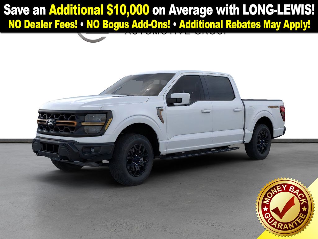 Space White Metallic 2025 Ford F-150 Tremor fctp 4WD 10-Speed Automatic 5.0L V8 4WD, 4-Wheel Disc Brakes, 8 Speakers, ABS brakes, Adjustable pedals, Air Conditioning, Alloy wheels, AM/FM radio: SiriusXM with 360L, Auto High-beam Headlights, Auto-dimming door mirrors, Auto-dimming Rear-View mirror, Automatic temperature control, Brake assist, Bumpers: body-color, Compass, Delay-off headlights, Driver door bin, Driver vanity mirror, Dual front impact airbags, Dual front side impact airbags, Electronic Locking w/3.73 Axle Ratio, Electronic Stability Control, Emergency communication system: SYNC 4 911 Assist, Front anti-roll bar, Front Bucket Seats, Front Center Armrest, Front dual zone A/C, Front fog lights, Front License Plate Bracket, Front reading lights, Front wheel independent suspension, Fully automatic headlights, GVWR: 7,100 lbs Payload Package, Heated door mirrors, Heated front seats, Illuminated entry, Low tire pressure warning, Navigation system: Connected Navigation, Occupant sensing airbag, Outside temperature display, Overhead airbag, Overhead console, Panic alarm, Passenger door bin, Passenger vanity mirror, Power door mirrors, Power driver seat, Power passenger seat, Power steering, Power windows, Radio data system, Radio: B&O Sound System by Bang & Olufsen, Rear reading lights, Rear step bumper, Rear window defroster, Remote keyless entry, Security system, Speed control, Split folding rear seat, Steering wheel mounted audio controls, SYNC 4 w/Enhanced Voice Recognition, Tachometer, Telescoping steering wheel, Tilt steering wheel, Traction control, Trip computer, Turn signal indicator mirrors, Twin Panel Moonroof, Unique Sport Cloth 40/Console/40 Power Front Seat, Unique Tremor Leather-Trimmed Bucket Seats, Variably intermittent wipers, Voltmeter, Wheels: 18" Alloy w/Dark Matte Finish, 4WD.