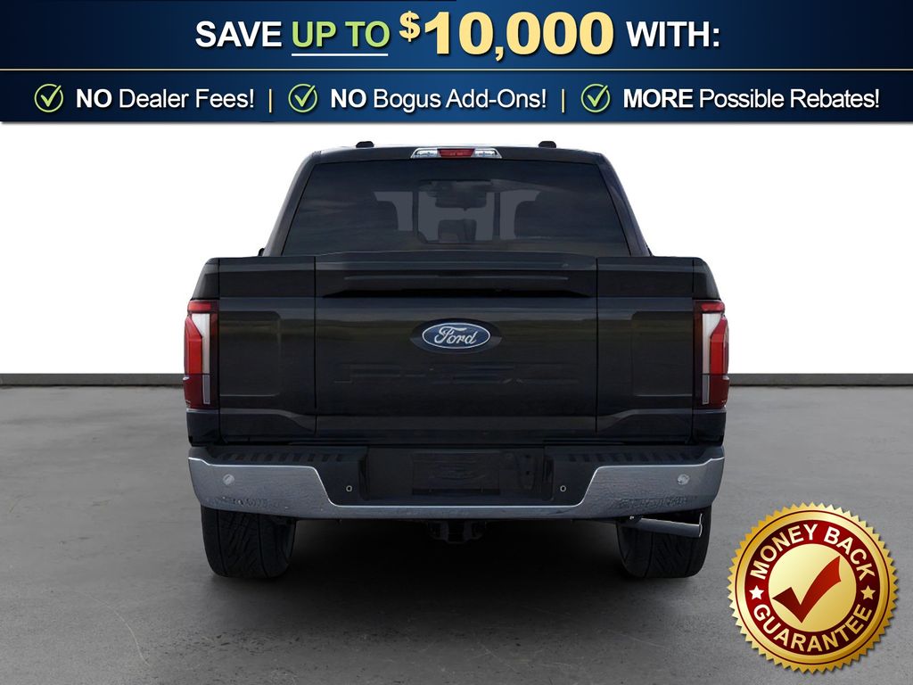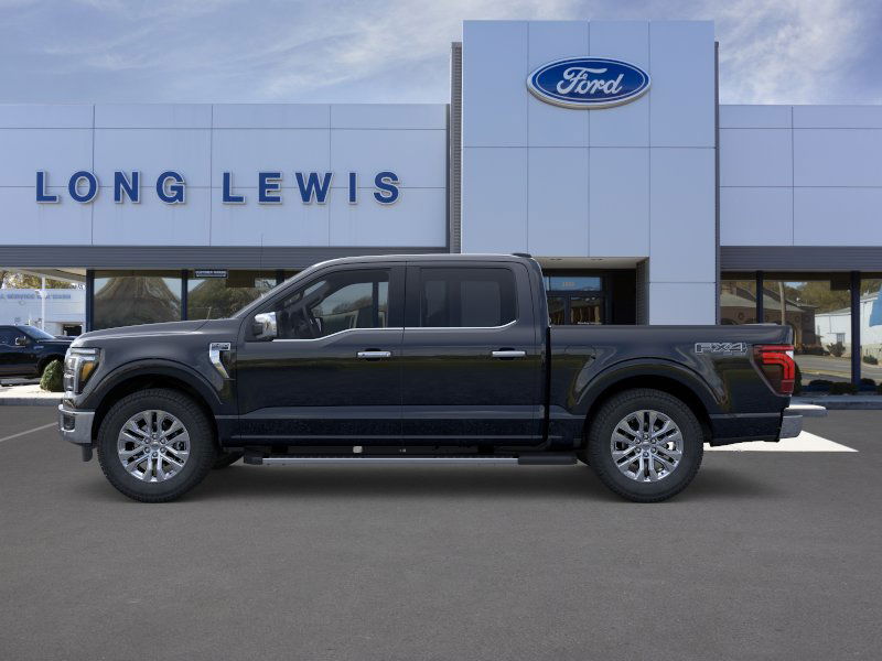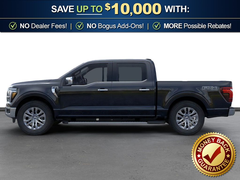 Agate Black Metallic 2025 Ford F-150 Lariat fctp 4WD 10-Speed Automatic 5.0L V8 4WD, 3.31 Axle Ratio, 4 Pickup Box Tie-Down Plates, 4-Wheel Disc Brakes, 4x4 FX4 Off-Road Bodyside Decal, 6" Extended Running Boards, 8 Speakers, ABS brakes, ActiveX Trimmed Bucket Seats, Adjustable pedals, Air Conditioning, Alloy wheels, AM/FM radio: SiriusXM with 360L, Auto High-beam Headlights, Auto-dimming door mirrors, Auto-dimming Rear-View mirror, Automatic temperature control, Bed Utility Package, Brake assist, Bumpers: chrome, Chrome wheels, Compass, Delay-off headlights, Driver door bin, Driver vanity mirror, Dual front impact airbags, Dual front side impact airbags, Electronic Locking w/3.31 Axle Ratio, Electronic Stability Control, Emergency communication system: SYNC 4 911 Assist, Front anti-roll bar, Front Bucket Seats, Front Center Armrest, Front dual zone A/C, Front fog lights, Front License Plate Bracket, Front reading lights, Front wheel independent suspension, Fully automatic headlights, FX4 Off-Road Package, Garage door transmitter, Heated door mirrors, Heated front seats, Heated steering wheel, Hill Descent Control, Illuminated entry, LED Box Lighting, Low tire pressure warning, Memory seat, Monotube Rear Shocks, Navigation system: Connected Navigation, Occupant sensing airbag, Off-Road Tuned Front Shock Absorbers, Outside temperature display, Overhead airbag, Overhead console, Panic alarm, Passenger door bin, Passenger vanity mirror, Pedal memory, Power door mirrors, Power driver seat, Power passenger seat, Power steering, Power Tailgate, Power windows, Pro Access Tailgate, Radio data system, Radio: B&O Sound System by Bang & Olufsen, Rain sensing wipers, Rear reading lights, Rear seat center armrest, Rear step bumper, Rear window defroster, Remote keyless entry, Rock Crawl Mode, Security system, Speed control, Split folding rear seat, Steering wheel mounted audio controls, SYNC 4 w/Enhanced Voice Recognition, Tachometer, Telescoping steering wheel, Tilt steering wheel, Traction control, Tray Style Floor Liner w/o Carpet Mats, Trip computer, Turn signal indicator mirrors, Variably intermittent wipers, Ventilated front seats, Voltmeter, Wheels: 18" Chrome-Like PVD, 4WD.