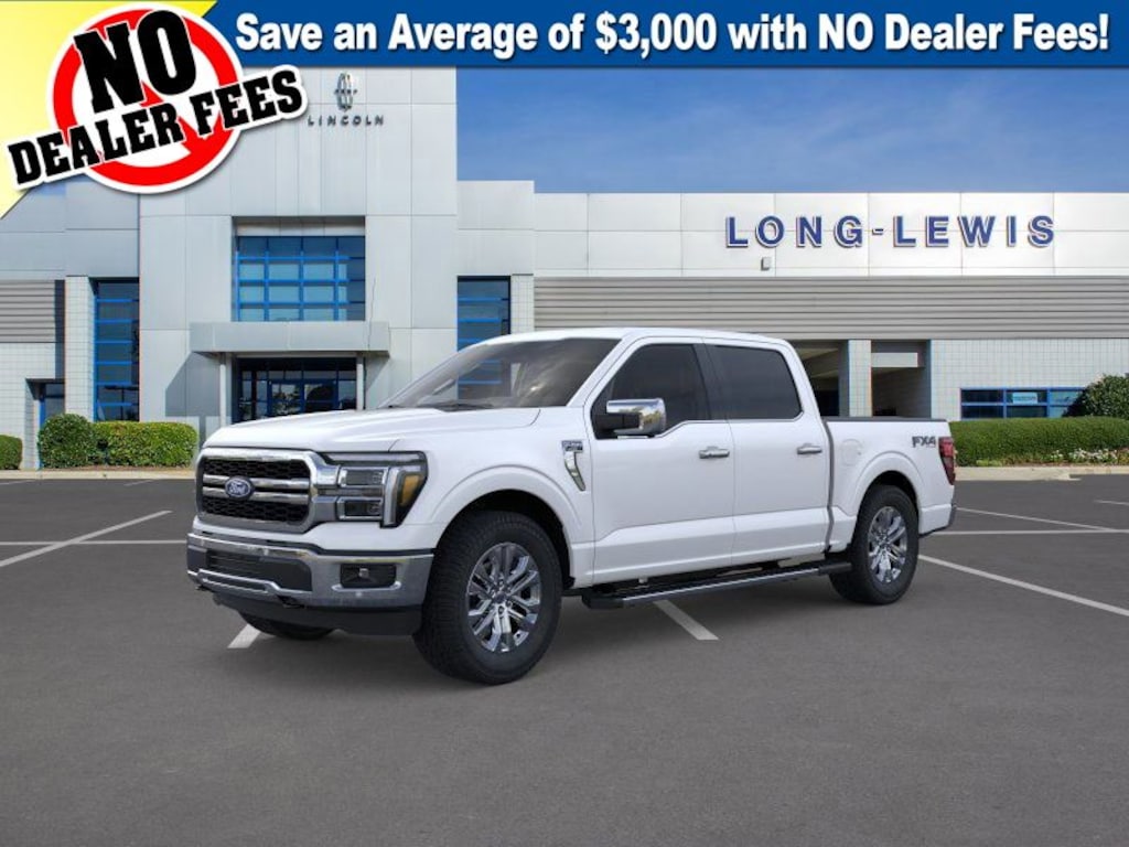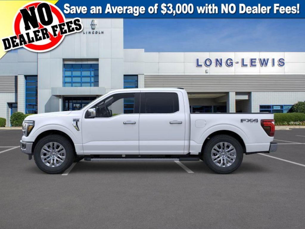 Dealer Discount of $8,299 off MSRP Star White Metallic Tri-Coat 2025 Ford F-150 Lariat fctp 4WD 10-Speed Automatic 5.0L V8 4WD, 2nd Row Heated Seats, 4 Pickup Box Tie-Down Plates, 4-Wheel Disc Brakes, 4x4 FX4 Off-Road Bodyside Decal, 6" Extended Running Boards, 8 Speakers, ABS brakes, ActiveX Trimmed Bucket Seats, ActiveX Trimmed Smoked Truffle Bucket Seats, Adjustable pedals, Air Conditioning, Alloy wheels, AM/FM radio: SiriusXM with 360L, Ambient Lighting - Ice Blue Color Only, Auto High-beam Headlights, Auto-dimming door mirrors, Auto-dimming Rear-View mirror, Automatic temperature control, Bed Utility Package, Brake assist, Bumpers: chrome, Chrome wheels, Compass, Console Worksurface, Delay-off headlights, Driver door bin, Driver vanity mirror, Dual front impact airbags, Dual front side impact airbags, Electronic Stability Control, Emergency communication system: SYNC 4 911 Assist, Equipment Group 502A High, Front anti-roll bar, Front Bucket Seats, Front Center Armrest, Front dual zone A/C, Front fog lights, Front License Plate Bracket, Front reading lights, Front wheel independent suspension, Fully automatic headlights, FX4 Off-Road Package, Garage door transmitter, Heads-Up Display, Heated door mirrors, Heated front seats, Heated steering wheel, Hill Descent Control, Illuminated Driver & Passenger Visors, Illuminated entry, LED Box Lighting, Low tire pressure warning, Memory seat, Mobile Office Package, Monotube Rear Shocks, Navigation system: Connected Navigation, Occupant sensing airbag, Off-Road Tuned Front Shock Absorbers, Outside temperature display, Overhead airbag, Overhead console, Panic alarm, Partitioned Lockable Rear Storage, Passenger door bin, Passenger vanity mirror, Pedal memory, Power door mirrors, Power driver seat, Power passenger seat, Power steering, Power Tailgate, Power windows, Power-Sliding Rear Window, Pro Access Tailgate, Radio data system, Radio: B&O Sound System by Bang & Olufsen, Radio: B&O Unleashed Sound System by Bang & Olufsen, Rain sensing wipers, Rear reading lights, Rear seat center armrest, Rear step bumper, Rear window defroster, Remote keyless entry, Rock Crawl Mode, Security system, Speed control, Split folding rear seat, Steering wheel mounted audio controls, SYNC 4 w/Enhanced Voice Recognition, Tachometer, Telescoping steering wheel, Tilt steering wheel, Tow/Haul Package, Traction control, Tray Style Floor Liner w/o Carpet Mats, Trip computer, Turn signal indicator mirrors, Variably intermittent wipers, Ventilated front seats, Voltmeter, Wheels: 18" Chrome-Like PVD, Wheels: 20" Chrome-Like PVD, Wireless Charging, 4WD.