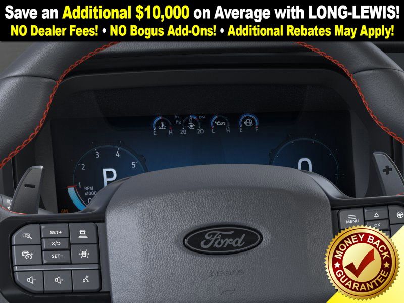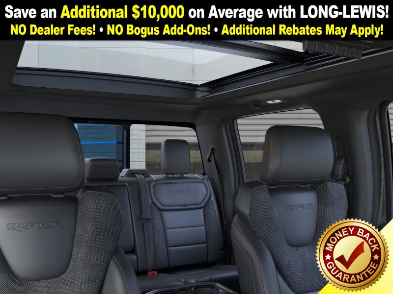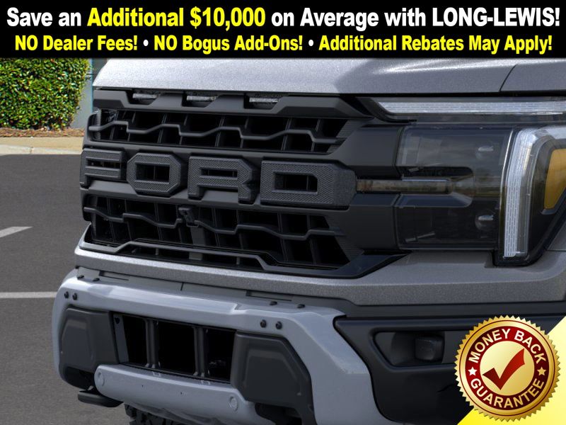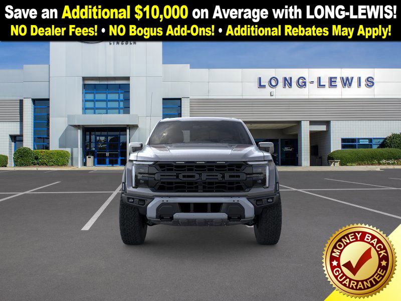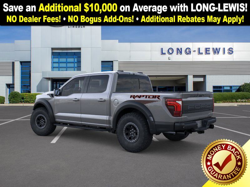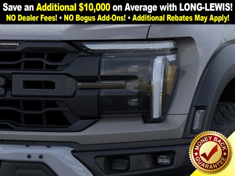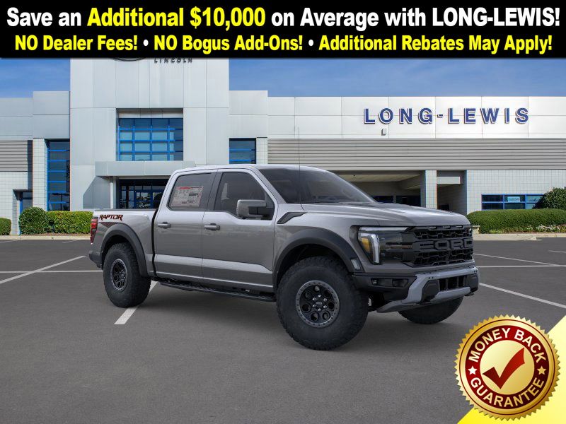 Carbonized Gray Metallic 2025 Ford F-150 Raptor NFT 4WD 10-Speed Automatic 3.5L V6 EcoBoost 4WD, 14 Speakers, 17" Cast Aluminum Wheels, 4-Wheel Disc Brakes, ABS brakes, Adjustable pedals, Air Conditioning, Alloy wheels, AM/FM radio: SiriusXM with 360L, Auto High-beam Headlights, Auto tilt-away steering wheel, Auto-dimming door mirrors, Auto-dimming Rear-View mirror, Automatic temperature control, Brake assist, Bumpers: body-color, Carbon Fiber Interior Appliques, Compass, Delay-off headlights, Driver door bin, Driver vanity mirror, Dual front impact airbags, Dual front side impact airbags, Dual Valve Shocks, Electronic Locking w/4.10 Axle Ratio, Electronic Stability Control, Emergency communication system: SYNC 4 911 Assist, Equipment Group 802A Raptor 37, Front anti-roll bar, Front Bucket Seats, Front Center Armrest, Front dual zone A/C, Front fog lights, Front License Plate Bracket, Front reading lights, Front wheel independent suspension, Fully automatic headlights, Garage door transmitter, Heads-Up Display, Heated door mirrors, Heated front seats, Heated rear seats, Heated steering wheel, Illuminated entry, Internet access capable: FordPass Connect 5G, Lane Departure Warning System, Leather steering wheel, Leather Trimmed Seats, Low tire pressure warning, Memory seat, Modular Front Bumper, Navigation system: Connected Navigation, Occupant sensing airbag, Outside temperature display, Overhead airbag, Overhead console, Panic alarm, Passenger door bin, Passenger vanity mirror, Pedal memory, Power door mirrors, Power driver seat, Power passenger seat, Power steering, Power windows, Radio data system, Radio: B&O Unleashed Sound System by Bang & Olufsen, Rain sensing wipers, Rear reading lights, Rear step bumper, Rear window defroster, RECARO Alcantara Suede Front Seats, Remote keyless entry, Security system, Speed control, Speed-sensing steering, Split folding rear seat, Steering wheel memory, Steering wheel mounted audio controls, SYNC 4 w/Enhanced Voice Recognition, Tachometer, Telescoping steering wheel, Tilt steering wheel, Traction control, Trip computer, Turn signal indicator mirrors, Twin Panel Moonroof, Variably intermittent wipers, Ventilated front seats, Wheels: Raptor 37 Unique 17" Cast Aluminum, 4WD.