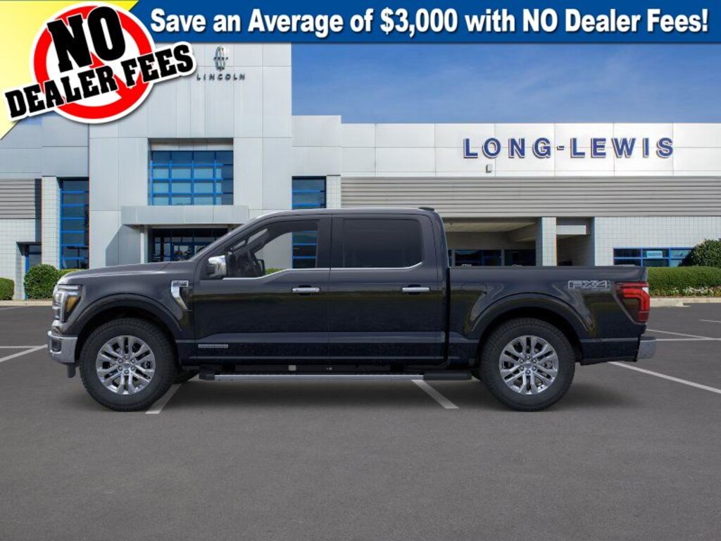 Dealer Discount of $10,265 off MSRP Agate Black Metallic 2025 Ford F-150 Lariat fctp 4WD 10-Speed Automatic 3.5L PowerBoost Full-Hybrid V6 3.5L PowerBoost Full-Hybrid V6, 4WD, 4 Pickup Box Tie-Down Plates, 4-Wheel Disc Brakes, 4x4 FX4 Off-Road Bodyside Decal, 6" Extended Running Boards, 8 Speakers, ABS brakes, ActiveX Trimmed Bucket Seats, Adjustable pedals, Air Conditioning, Alloy wheels, AM/FM radio: SiriusXM with 360L, Auto High-beam Headlights, Auto-dimming door mirrors, Auto-dimming Rear-View mirror, Automatic temperature control, Bed Utility Package, Brake assist, Bumpers: chrome, Chrome wheels, Compass, Delay-off headlights, Driver door bin, Driver vanity mirror, Dual front impact airbags, Dual front side impact airbags, Electronic Stability Control, Emergency communication system: SYNC 4 911 Assist, Equipment Group 502A High, Front anti-roll bar, Front Bucket Seats, Front Center Armrest, Front dual zone A/C, Front fog lights, Front License Plate Bracket, Front reading lights, Front wheel independent suspension, Fully automatic headlights, FX4 Off-Road Package, Garage door transmitter, Heated door mirrors, Heated front seats, Heated steering wheel, Hill Descent Control, Illuminated entry, LED Box Lighting, Low tire pressure warning, Memory seat, Monotube Rear Shocks, Navigation system: Connected Navigation, Occupant sensing airbag, Off-Road Tuned Front Shock Absorbers, Outside temperature display, Overhead airbag, Overhead console, Panic alarm, Passenger door bin, Passenger vanity mirror, Pedal memory, Power door mirrors, Power driver seat, Power passenger seat, Power steering, Power Tailgate, Power windows, Pro Access Tailgate, Pro Power Onboard - 7.2KW, Radio data system, Radio: B&O Sound System by Bang & Olufsen, Rain sensing wipers, Rear reading lights, Rear seat center armrest, Rear step bumper, Rear window defroster, Remote keyless entry, Rock Crawl Mode, Security system, Speed control, Split folding rear seat, Steering wheel mounted audio controls, SYNC 4 w/Enhanced Voice Recognition, Tachometer, Telescoping steering wheel, Tilt steering wheel, Tow/Haul Package, Traction control, Tray Style Floor Liner w/o Carpet Mats, Trip computer, Turn signal indicator mirrors, Variably intermittent wipers, Ventilated front seats, Voltmeter, Wheels: 18" Chrome-Like PVD, Wheels: 20" Chrome-Like PVD, 3.5L PowerBoost Full-Hybrid V6, 4WD.