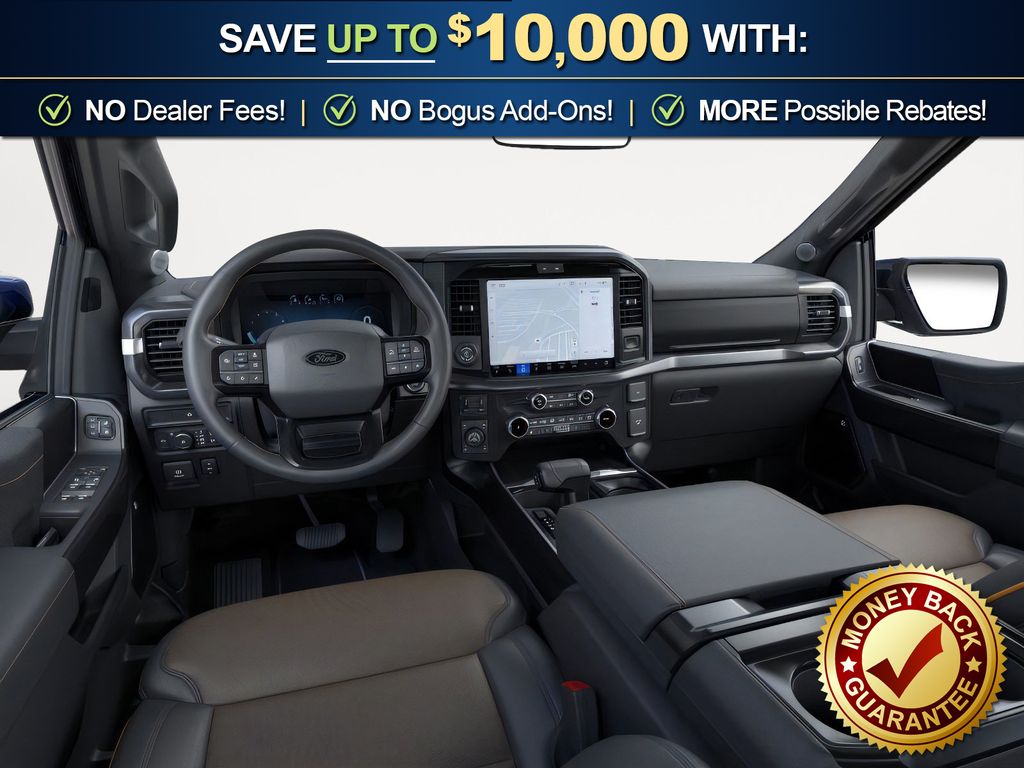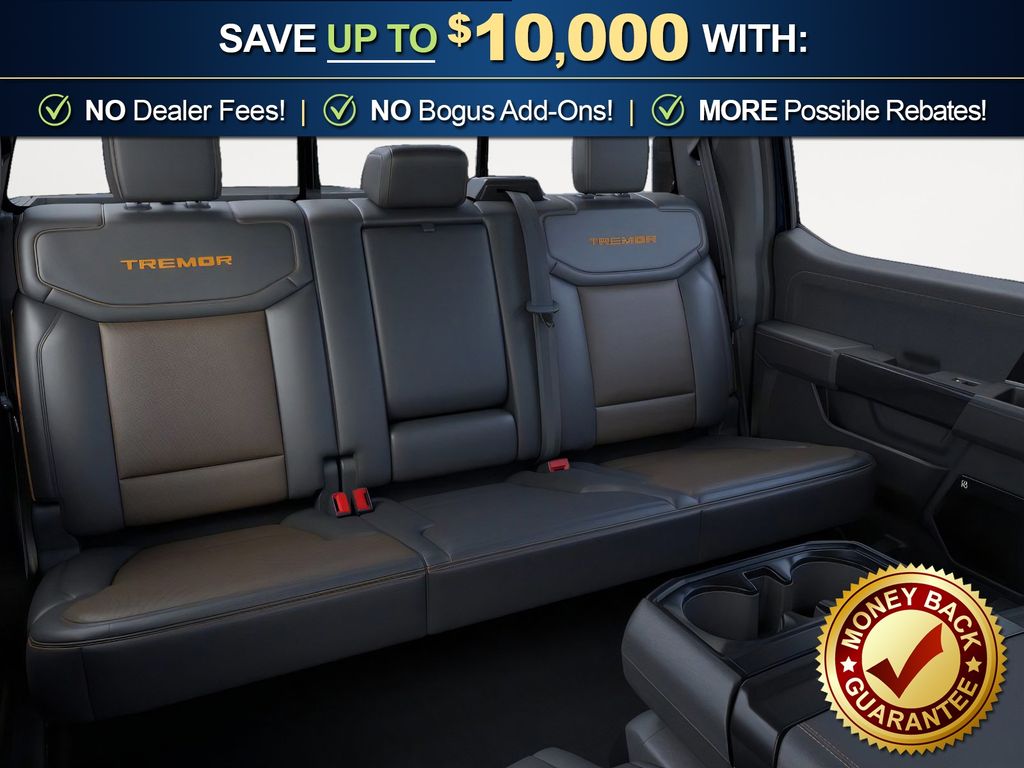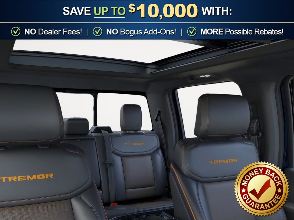 Antimatter Blue Metallic 2025 Ford F-150 Tremor fctp 4WD 10-Speed Automatic 3.5L V6 EcoBoost 4WD, 4-Wheel Disc Brakes, 8 Speakers, ABS brakes, Adjustable pedals, Air Conditioning, Alloy wheels, AM/FM radio: SiriusXM with 360L, Auto High-beam Headlights, Auto-dimming door mirrors, Auto-dimming Rear-View mirror, Automatic temperature control, Brake assist, Bumpers: body-color, Compass, Delay-off headlights, Driver door bin, Driver vanity mirror, Dual front impact airbags, Dual front side impact airbags, Electronic Locking w/3.73 Axle Ratio, Electronic Stability Control, Emergency communication system: SYNC 4 911 Assist, Front anti-roll bar, Front Bucket Seats, Front Center Armrest, Front dual zone A/C, Front fog lights, Front License Plate Bracket, Front reading lights, Front wheel independent suspension, Fully automatic headlights, GVWR: 7,100 lbs Payload Package, Heated door mirrors, Heated front seats, Illuminated entry, Low tire pressure warning, Navigation system: Connected Navigation, Occupant sensing airbag, Outside temperature display, Overhead airbag, Overhead console, Panic alarm, Passenger door bin, Passenger vanity mirror, Power door mirrors, Power driver seat, Power passenger seat, Power steering, Power windows, Radio data system, Radio: B&O Sound System by Bang & Olufsen, Rear reading lights, Rear step bumper, Rear window defroster, Remote keyless entry, Security system, Speed control, Split folding rear seat, Steering wheel mounted audio controls, SYNC 4 w/Enhanced Voice Recognition, Tachometer, Telescoping steering wheel, Tilt steering wheel, Traction control, Trip computer, Turn signal indicator mirrors, Twin Panel Moonroof, Unique Sport Cloth 40/Console/40 Power Front Seat, Unique Tremor Leather-Trimmed Bucket Seats, Variably intermittent wipers, Voltmeter, Wheels: 18" Alloy w/Dark Matte Finish, 4WD.