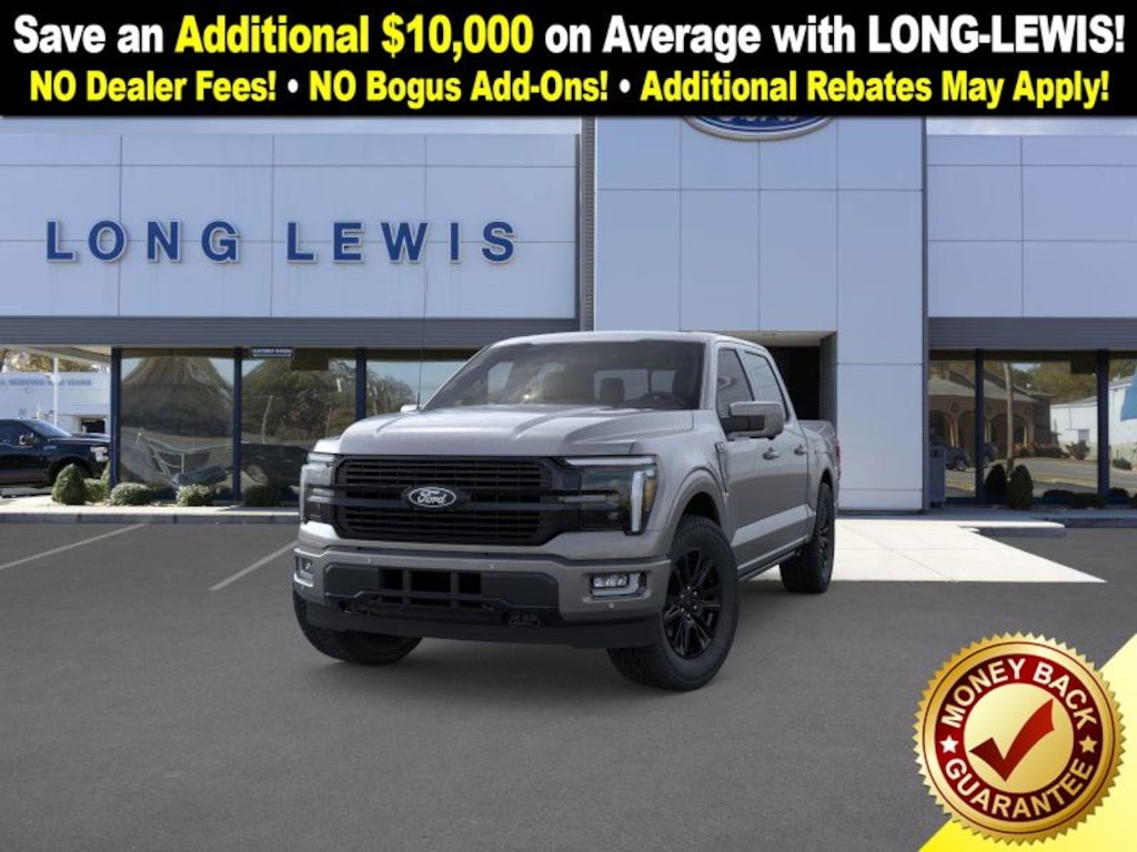 Carbonized Gray Metallic 2025 Ford F-150 Platinum fctp 4WD 10-Speed Automatic 3.5L V6 EcoBoost 4WD, 4-Wheel Disc Brakes, 4x4 FX4 Off-Road Bodyside Decal, 8 Speakers, ABS brakes, Adjustable pedals, Air Conditioning, Alloy wheels, AM/FM radio: SiriusXM with 360L, Auto High-beam Headlights, Auto tilt-away steering wheel, Auto-dimming door mirrors, Auto-dimming Rear-View mirror, Automatic temperature control, Brake assist, Bumpers: body-color, Compass, Delay-off headlights, Driver door bin, Driver vanity mirror, Dual front impact airbags, Dual front side impact airbags, Electronic Locking w/3.55 Axle Ratio, Electronic Stability Control, Emergency communication system: SYNC 4 911 Assist, Front anti-roll bar, Front Bucket Seats, Front Center Armrest, Front dual zone A/C, Front fog lights, Front License Plate Bracket, Front reading lights, Front wheel independent suspension, Fully automatic headlights, FX4 Off-Road Package, Garage door transmitter, Heated door mirrors, Heated front seats, Heated rear seats, Heated steering wheel, Hill Descent Control, Illuminated entry, Leather steering wheel, Low tire pressure warning, Memory seat, Monotube Rear Shocks, Navigation system: Connected Navigation, Occupant sensing airbag, Off-Road Tuned Front Shock Absorbers, Outside temperature display, Overhead airbag, Overhead console, Panic alarm, Passenger door bin, Passenger vanity mirror, Pedal memory, Power door mirrors, Power driver seat, Power passenger seat, Power steering, Power windows, Radio data system, Radio: B&O Sound System by Bang & Olufsen, Rain sensing wipers, Rear reading lights, Rear seat center armrest, Rear step bumper, Rear window defroster, Remote keyless entry, Rock Crawl Mode, Security system, Speed control, Split folding rear seat, Steering wheel memory, Steering wheel mounted audio controls, SYNC 4 w/Enhanced Voice Recognition, Tachometer, Telescoping steering wheel, Tilt steering wheel, Traction control, Tray Style Floor Liner, Trip computer, Turn signal indicator mirrors, Unique Multi-Contour Leather Bucket Seats, Variably intermittent wipers, Ventilated front seats, Voltmeter, Wheels: 20" Painted Gloss Ebony Black, 4WD.