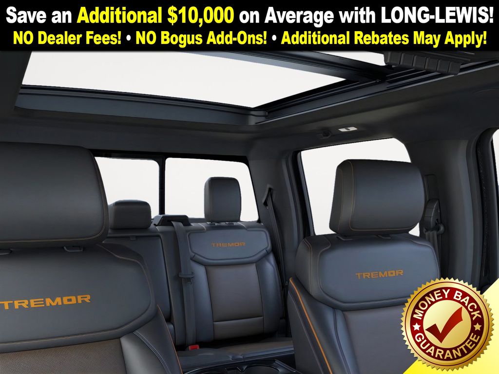 Bed Utility Package (4 Pickup Box Tie-Down Plates, LED Box Lighting, and Power Tailgate), Equipment Group 402A High (2nd Row Heated Seats, Ambient Lighting, Auto-Dimming Rear-View Mirror, Front Axle w/Torsen Differential, Heads-Up Display, Heated Steering Wheel, LED Taillamps, Media Bin Door, Modular Front Bumper & Carbon Black Rear Bumper, Power Glass Heated Sideview Mirrors, Power-Adjustable Pedals w/Memory, Premium Wrapped Steering Wheel, Radio: B&O Unleashed Sound System by Bang & Olufsen, Rain-Sensing Wipers, Two-Speed Automatic AWD w/Mechanical Locking 4WD, Unique Tremor Leather-Trimmed Bucket Seats, and Universal Garage Door Opener), GVWR: 7,100 lbs Payload Package, Mobile Office Package (Console Worksurface, Partitioned Lockable Rear Storage, and Wireless Charging), Tow/Haul Package (Integrated Trailer Brake Controller), 4WD, 4-Wheel Disc Brakes, 8 Speakers, ABS brakes, Adjustable pedals, Air Conditioning, Alloy wheels, AM/FM radio: SiriusXM with 360L, Auto High-beam Headlights, Auto-dimming door mirrors, Auto-dimming Rear-View mirror, Automatic temperature control, Brake assist, Bumpers: body-color, Compass, Delay-off headlights, Driver door bin, Driver vanity mirror, Dual front impact airbags, Dual front side impact airbags, Electronic Locking w/3.73 Axle Ratio, Electronic Stability Control, Emergency communication system: SYNC 4 911 Assist, Front anti-roll bar, Front Bucket Seats, Front Center Armrest, Front dual zone A/C, Front fog lights, Front reading lights, Front wheel independent suspension, Fully automatic headlights, Heated door mirrors, Heated front seats, Illuminated entry, Internet access capable: FordPass Connect 5G, Low tire pressure warning, Navigation system: Connected Navigation, Occupant sensing airbag, Outside temperature display, Overhead airbag, Overhead console, Panic alarm, Passenger door bin, Passenger vanity mirror, Power door mirrors, Power driver seat, Power passenger seat, Power steering, Power windows, Radio data system, Radio: B&O Sound System by Bang & Olufsen, Rear reading lights, Rear step bumper, Rear window defroster, Remote keyless entry, Security system, Speed control, Split folding rear seat, Steering wheel mounted audio controls, SYNC 4 w/Enhanced Voice Recognition, Tachometer, Tailgate Step w/Tailgate Work Surface, Telescoping steering wheel, Tilt steering wheel, Traction control, Trip computer, Turn signal indicator mirrors, Twin Panel Moonroof, Unique Sport Cloth 40/Console/40 Power Front Seat, Variably intermittent wipers, Voltmeter, and Wheels: 18" Alloy w/Dark Matte Finish. Price includes: $2000 - Retail Customer Cash. Exp. 03/31/2026