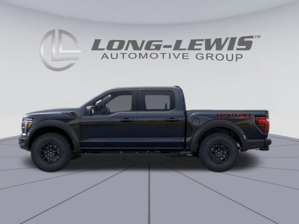 Agate Black Metallic 2025 Ford F-150 Raptor 4WD 10-Speed Automatic 3.5L V6 EcoBoost 4WD, 14 Speakers, 17" Cast Aluminum Wheels, 4-Wheel Disc Brakes, ABS brakes, Adjustable pedals, Air Conditioning, Alloy wheels, AM/FM radio: SiriusXM with 360L, Auto High-beam Headlights, Auto tilt-away steering wheel, Auto-dimming door mirrors, Auto-dimming Rear-View mirror, Automatic temperature control, Brake assist, Bumpers: body-color, Compass, Delay-off headlights, Driver door bin, Driver vanity mirror, Dual front impact airbags, Dual front side impact airbags, Electronic Locking w/4.10 Axle Ratio, Electronic Stability Control, Emergency communication system: SYNC 4 911 Assist, Front anti-roll bar, Front Bucket Seats, Front Center Armrest, Front dual zone A/C, Front fog lights, Front License Plate Bracket, Front reading lights, Front wheel independent suspension, Fully automatic headlights, Garage door transmitter, Heads-Up Display, Heated door mirrors, Heated front seats, Heated rear seats, Heated steering wheel, Illuminated entry, Lane Departure Warning System, Leather steering wheel, Leather Trimmed Seats, Low tire pressure warning, Memory seat, Navigation system: Connected Navigation, Occupant sensing airbag, Outside temperature display, Overhead airbag, Overhead console, Panic alarm, Passenger door bin, Passenger vanity mirror, Pedal memory, Power door mirrors, Power driver seat, Power passenger seat, Power steering, Power windows, Radio data system, Radio: B&O Unleashed Sound System by Bang & Olufsen, Rain sensing wipers, Rear reading lights, Rear step bumper, Rear window defroster, RECARO w/Code Orange Stitching Front Seats, Remote keyless entry, Security system, Speed control, Speed-sensing steering, Split folding rear seat, Steering wheel memory, Steering wheel mounted audio controls, SYNC 4 w/Enhanced Voice Recognition, Tachometer, Telescoping steering wheel, Tilt steering wheel, Traction control, Trip computer, Turn signal indicator mirrors, Twin Panel Moonroof, Variably intermittent wipers, Ventilated front seats, 4WD.