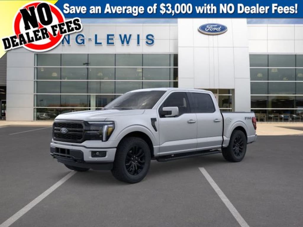 Iconic Silver Metallic 2025 Ford F-150 Lariat 4WD 10-Speed Automatic 3.5L PowerBoost Full-Hybrid V6 2nd Row Heated Seats, 3.31 Axle Ratio, 4-Wheel Disc Brakes, 4x4 FX4 Off-Road Bodyside Decal, 8 Speakers, ABS brakes, ActiveX Trimmed Bucket Seats, Adjustable pedals, Air Conditioning, Alloy wheels, AM/FM radio: SiriusXM with 360L, Ambient Lighting - Ice Blue Color Only, Auto High-beam Headlights, Auto-dimming door mirrors, Auto-dimming Rear-View mirror, Automatic temperature control, Brake assist, Bumpers: chrome, Chrome wheels, Compass, Console Worksurface, Delay-off headlights, Driver door bin, Driver vanity mirror, Dual front impact airbags, Dual front side impact airbags, Electronic Locking w/3.55 Axle Ratio, Electronic Stability Control, Emergency communication system: SYNC 4 911 Assist, Equipment Group 502A High, Front anti-roll bar, Front Bucket Seats, Front Center Armrest, Front dual zone A/C, Front fog lights, Front reading lights, Front wheel independent suspension, Fully automatic headlights, FX4 Off-Road Package, Garage door transmitter, Heads-Up Display, Heated door mirrors, Heated front seats, Heated steering wheel, Hill Descent Control, Illuminated Driver & Passenger Visors, Illuminated entry, Low tire pressure warning, Memory seat, Mobile Office Package, Monotube Rear Shocks, Navigation system: Connected Navigation, Occupant sensing airbag, Off-Road Tuned Front Shock Absorbers, Outside temperature display, Overhead airbag, Overhead console, Panic alarm, Partitioned Lockable Rear Storage, Passenger door bin, Passenger vanity mirror, Pedal memory, Power door mirrors, Power driver seat, Power passenger seat, Power steering, Power windows, Power-Sliding Rear Window, Radio data system, Radio: B&O Sound System by Bang & Olufsen, Radio: B&O Unleashed Sound System by Bang & Olufsen, Rain sensing wipers, Rear reading lights, Rear seat center armrest, Rear step bumper, Rear window defroster, Remote keyless entry, Rock Crawl Mode, Security system, Speed control, Split folding rear seat, Steering wheel mounted audio controls, SYNC 4 w/Enhanced Voice Recognition, Tachometer, Telescoping steering wheel, Tilt steering wheel, Tow/Haul Package, Traction control, Tray Style Floor Liner w/o Carpet Mats, Trip computer, Turn signal indicator mirrors, Variably intermittent wipers, Ventilated front seats, Voltmeter, Wheels: 18" Chrome-Like PVD, Wheels: 20" Chrome-Like PVD, Wireless Charging.