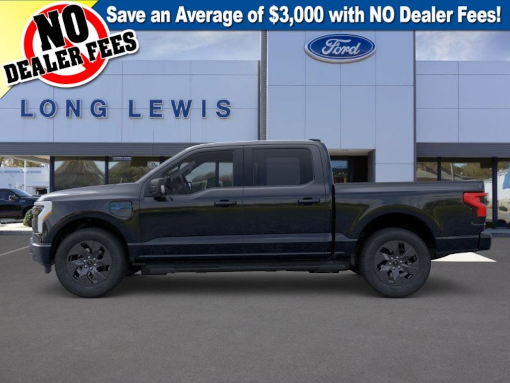 Agate Black Metallic 2025 Ford F-150 Lightning Flash AWD Single-Speed Automatic Electric Motor 4-Wheel Disc Brakes, 8 Speakers, ABS brakes, ActiveX Trimmed Heated Front Seats, Adjustable pedals, Air Conditioning, Alloy wheels, Auto High-beam Headlights, Auto-dimming Rear-View mirror, Automatic temperature control, Brake assist, Bumpers: body-color, Compass, Delay-off headlights, Driver door bin, Driver vanity mirror, Dual front impact airbags, Dual front side impact airbags, E-Locker, Electronic Stability Control, Emergency communication system: SYNC 4 911 Assist, Four wheel independent suspension, Front anti-roll bar, Front Bucket Seats, Front Center Armrest, Front dual zone A/C, Front License Plate Bracket, Front reading lights, Fully automatic headlights, Heated door mirrors, Heated front seats, Heated steering wheel, Hill Decent Control, Illuminated entry, Knee airbag, Low tire pressure warning, Max Trailer Tow Package, Mobile Power Cord (120/240V), Navigation system: Connected Navigation, Occupant sensing airbag, Outside temperature display, Overhead airbag, Overhead console, Panic alarm, Passenger door bin, Passenger vanity mirror, Power door mirrors, Power driver seat, Power passenger seat, Power steering, Power windows, Pro Power Onboard - 9.6 kW Exportable Power, Radio data system, Radio: B&O Sound System by Bang & Olufsen, Rear anti-roll bar, Rear reading lights, Rear step bumper, Rear window defroster, Remote keyless entry, Security system, Speed control, Speed-sensing steering, Split folding rear seat, Steering wheel mounted audio controls, SYNC 4A w/Enhanced Voice Recognition, Telescoping steering wheel, Tilt steering wheel, Traction control, Trailer Brake Controller, Trip computer, Turn signal indicator mirrors, Variably intermittent wipers, Wheels: 20" Alloy Dark Carbonized Gray.