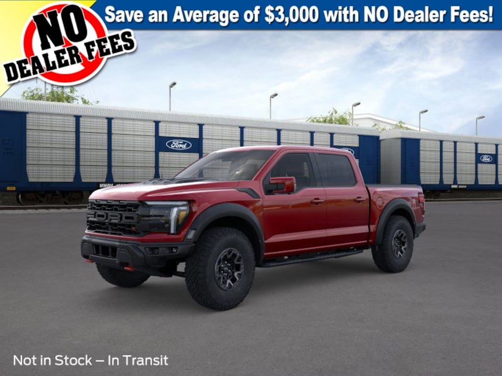 Rapid Red Metallic Tinted Clearcoat 2025 Ford F-150 Raptor 4WD 10-Speed Automatic 5.2L V8 4WD, 14 Speakers, 17" Cast Aluminum Wheels, 4-Wheel Disc Brakes, ABS brakes, Adjustable pedals, Air Conditioning, Alloy wheels, AM/FM radio: SiriusXM with 360L, Auto High-beam Headlights, Auto tilt-away steering wheel, Auto-dimming door mirrors, Auto-dimming Rear-View mirror, Automatic temperature control, Brake assist, Bumpers: body-color, Compass, Delay-off headlights, Driver door bin, Driver vanity mirror, Dual front impact airbags, Dual front side impact airbags, Electronic Locking w/4.10 Axle Ratio, Electronic Stability Control, Emergency communication system: SYNC 4 911 Assist, Front anti-roll bar, Front Bucket Seats, Front Center Armrest, Front dual zone A/C, Front fog lights, Front License Plate Bracket, Front reading lights, Front wheel independent suspension, Fully automatic headlights, Garage door transmitter, Heads-Up Display, Heated door mirrors, Heated front seats, Heated rear seats, Heated steering wheel, Illuminated entry, Lane Departure Warning System, Leather steering wheel, Leather Trimmed Seats, Low tire pressure warning, Memory seat, Navigation system: Connected Navigation, Occupant sensing airbag, Outside temperature display, Overhead airbag, Overhead console, Panic alarm, Passenger door bin, Passenger vanity mirror, Pedal memory, Power door mirrors, Power driver seat, Power passenger seat, Power steering, Power windows, Radio data system, Radio: B&O Unleashed Sound System by Bang & Olufsen, Rain sensing wipers, Rear reading lights, Rear step bumper, Rear window defroster, RECARO w/Code Orange Stitching Front Seats, Remote keyless entry, Retractable Tonneau Pickup Box Cover, Security system, Speed control, Speed-sensing steering, Split folding rear seat, Steering wheel memory, Steering wheel mounted audio controls, SYNC 4 w/Enhanced Voice Recognition, Tachometer, Telescoping steering wheel, Tilt steering wheel, Tough Bed Spray-In Bedliner, Traction control, Trip computer, Turn signal indicator mirrors, Twin Panel Moonroof, Variably intermittent wipers, Ventilated front seats, 4WD.