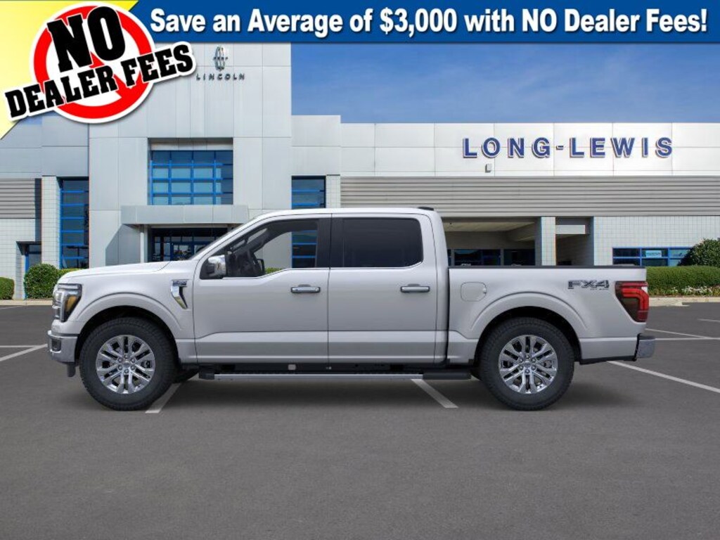 Dealer Discount of $8,271 off MSRP Iconic Silver Metallic 2025 Ford F-150 Lariat fctp 4WD 10-Speed Automatic 3.5L V6 EcoBoost 4WD, 2nd Row Heated Seats, 4 Pickup Box Tie-Down Plates, 4-Wheel Disc Brakes, 4x4 FX4 Off-Road Bodyside Decal, 6" Extended Running Boards, 8 Speakers, ABS brakes, ActiveX Trimmed Bucket Seats, Adjustable pedals, Air Conditioning, Alloy wheels, AM/FM radio: SiriusXM with 360L, Ambient Lighting - Ice Blue Color Only, Auto High-beam Headlights, Auto-dimming door mirrors, Auto-dimming Rear-View mirror, Automatic temperature control, Bed Utility Package, Brake assist, Bumpers: chrome, Chrome wheels, Compass, Console Worksurface, Delay-off headlights, Driver door bin, Driver vanity mirror, Dual front impact airbags, Dual front side impact airbags, Electronic Stability Control, Emergency communication system: SYNC 4 911 Assist, Equipment Group 502A High, Front anti-roll bar, Front Bucket Seats, Front Center Armrest, Front dual zone A/C, Front fog lights, Front License Plate Bracket, Front reading lights, Front wheel independent suspension, Fully automatic headlights, FX4 Off-Road Package, Garage door transmitter, Heads-Up Display, Heated door mirrors, Heated front seats, Heated steering wheel, Hill Descent Control, Illuminated Driver & Passenger Visors, Illuminated entry, LED Box Lighting, Low tire pressure warning, Memory seat, Mobile Office Package, Monotube Rear Shocks, Navigation system: Connected Navigation, Occupant sensing airbag, Off-Road Tuned Front Shock Absorbers, Outside temperature display, Overhead airbag, Overhead console, Panic alarm, Partitioned Lockable Rear Storage, Passenger door bin, Passenger vanity mirror, Pedal memory, Power door mirrors, Power driver seat, Power passenger seat, Power steering, Power Tailgate, Power windows, Power-Sliding Rear Window, Pro Access Tailgate, Radio data system, Radio: B&O Sound System by Bang & Olufsen, Radio: B&O Unleashed Sound System by Bang & Olufsen, Rain sensing wipers, Rear reading lights, Rear seat center armrest, Rear step bumper, Rear window defroster, Remote keyless entry, Rock Crawl Mode, Security system, Speed control, Split folding rear seat, Steering wheel mounted audio controls, SYNC 4 w/Enhanced Voice Recognition, Tachometer, Telescoping steering wheel, Tilt steering wheel, Tow/Haul Package, Traction control, Tray Style Floor Liner w/o Carpet Mats, Trip computer, Turn signal indicator mirrors, Variably intermittent wipers, Ventilated front seats, Voltmeter, Wheels: 18" Chrome-Like PVD, Wheels: 20" Chrome-Like PVD, Wireless Charging, 4WD.