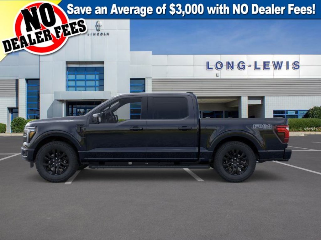 Dealer Discount of $6,113 off MSRP Agate Black Metallic 2025 Ford F-150 Lariat fctp 4WD 10-Speed Automatic 3.5L V6 EcoBoost 4WD, 4 Pickup Box Tie-Down Plates, 4-Wheel Disc Brakes, 4x4 FX4 Off-Road Bodyside Decal, 6" Angular Bright Anodized Step Bar, 6" Extended Running Boards, 8 Speakers, ABS brakes, ActiveX Trimmed Bucket Seats, Adjustable pedals, Air Conditioning, Alloy wheels, AM/FM radio: SiriusXM with 360L, Auto High-beam Headlights, Auto-dimming door mirrors, Auto-dimming Rear-View mirror, Automatic temperature control, Bed Utility Package, Brake assist, Bumpers: chrome, Chrome wheels, Compass, Console Worksurface, Delay-off headlights, Driver door bin, Driver vanity mirror, Dual front impact airbags, Dual front side impact airbags, Electronic Stability Control, Emergency communication system: SYNC 4 911 Assist, Equipment Group 501A Mid, Front anti-roll bar, Front Bucket Seats, Front Center Armrest, Front dual zone A/C, Front fog lights, Front License Plate Bracket, Front reading lights, Front wheel independent suspension, Fully automatic headlights, FX4 Off-Road Package, Garage door transmitter, Heated door mirrors, Heated front seats, Heated steering wheel, Hill Descent Control, Illuminated Driver & Passenger Visors, Illuminated entry, LED Box Lighting, Low tire pressure warning, Memory seat, Mobile Office Package, Monotube Rear Shocks, Navigation system: Connected Navigation, Occupant sensing airbag, Off-Road Tuned Front Shock Absorbers, Outside temperature display, Overhead airbag, Overhead console, Panic alarm, Partitioned Lockable Rear Storage, Passenger door bin, Passenger vanity mirror, Pedal memory, Power door mirrors, Power driver seat, Power passenger seat, Power steering, Power Tailgate, Power windows, Power-Sliding Rear Window, Pro Access Tailgate, Radio data system, Radio: B&O Sound System by Bang & Olufsen, Rain sensing wipers, Rear reading lights, Rear seat center armrest, Rear step bumper, Rear window defroster, Remote keyless entry, Rock Crawl Mode, Security system, Speed control, Split folding rear seat, Steering wheel mounted audio controls, SYNC 4 w/Enhanced Voice Recognition, Tachometer, Telescoping steering wheel, Tilt steering wheel, Tow/Haul Package, Traction control, Tray Style Floor Liner w/o Carpet Mats, Trip computer, Turn signal indicator mirrors, Variably intermittent wipers, Ventilated front seats, Voltmeter, Wheels: 18" Chrome-Like PVD, Wheels: 20" Chrome-Like PVD, Wireless Charging, 4WD.