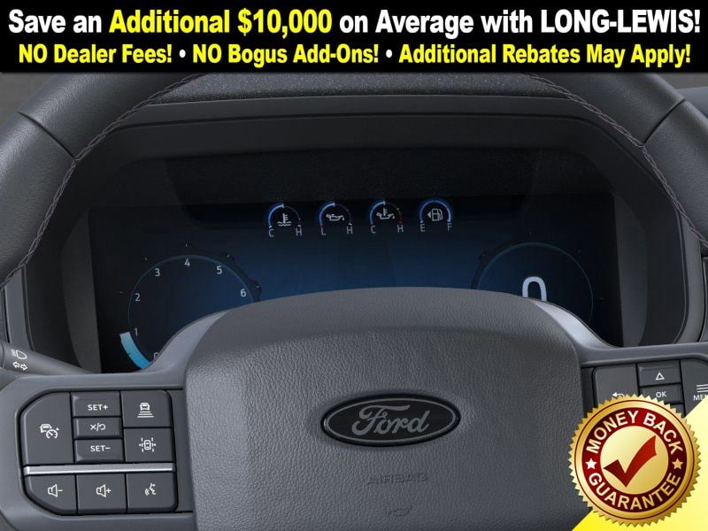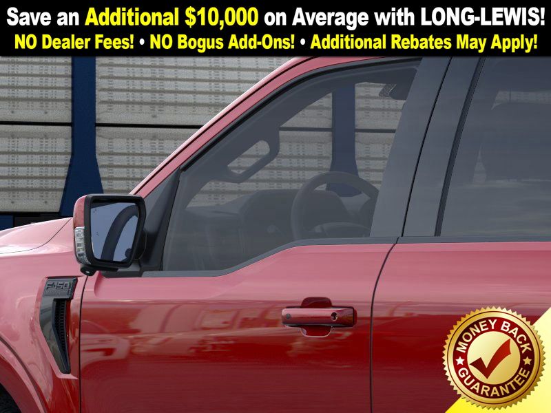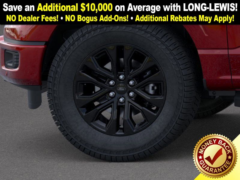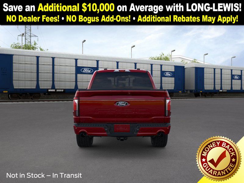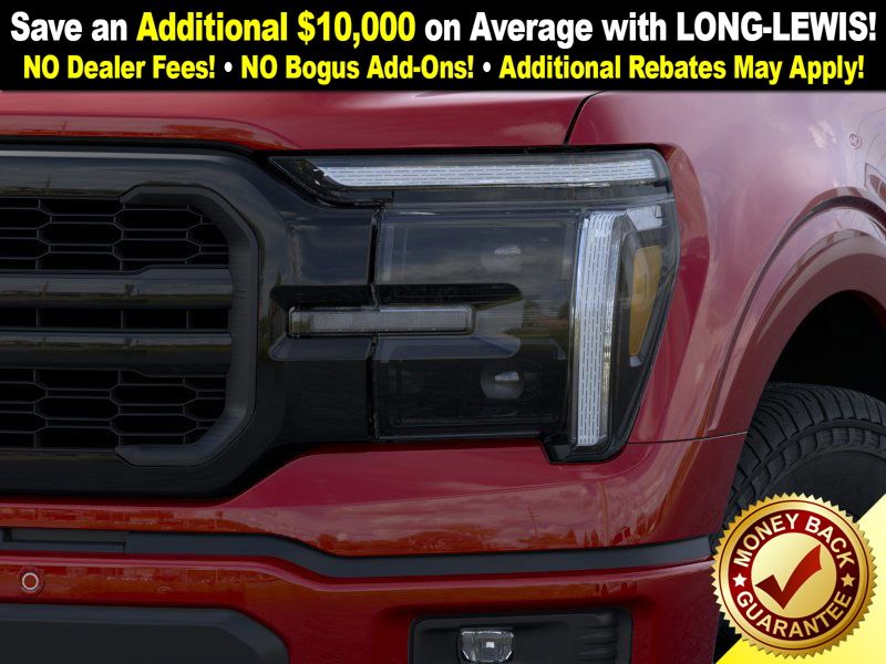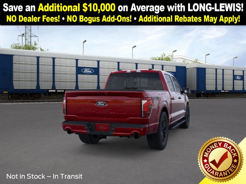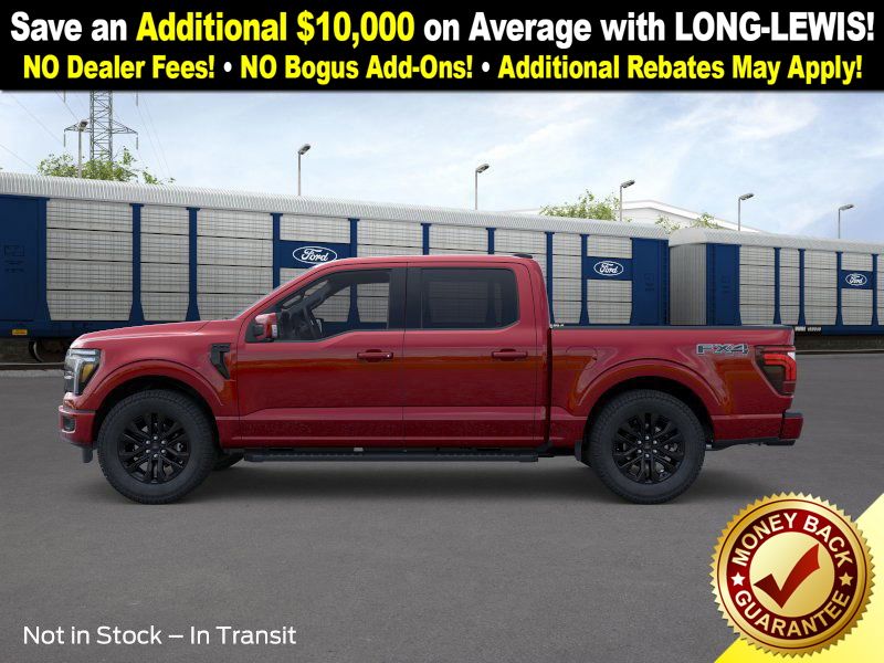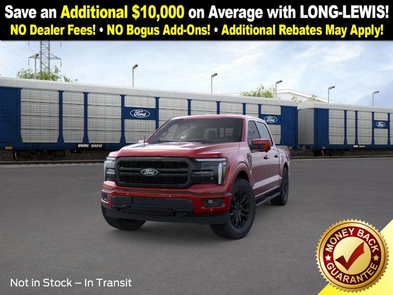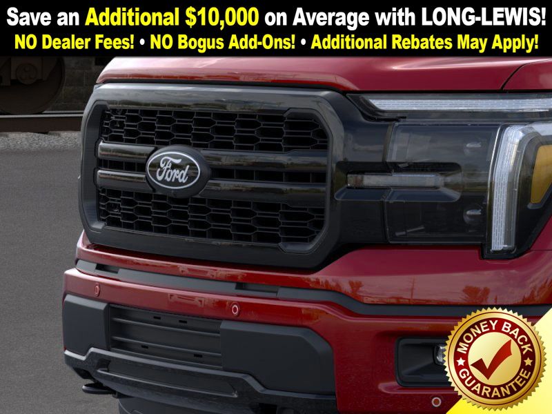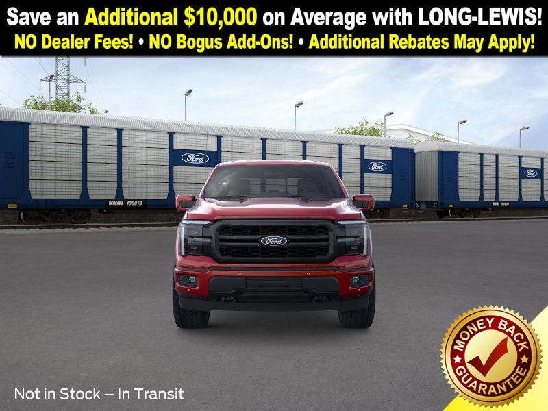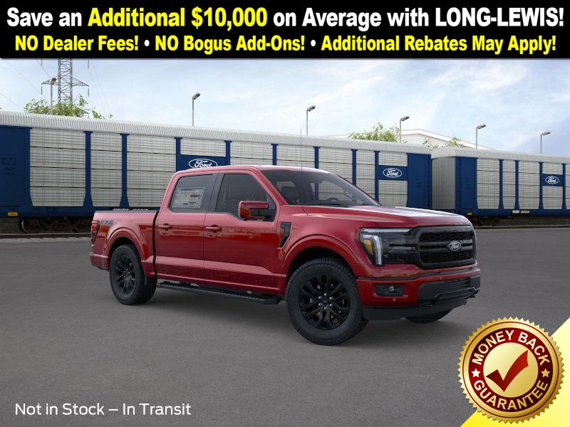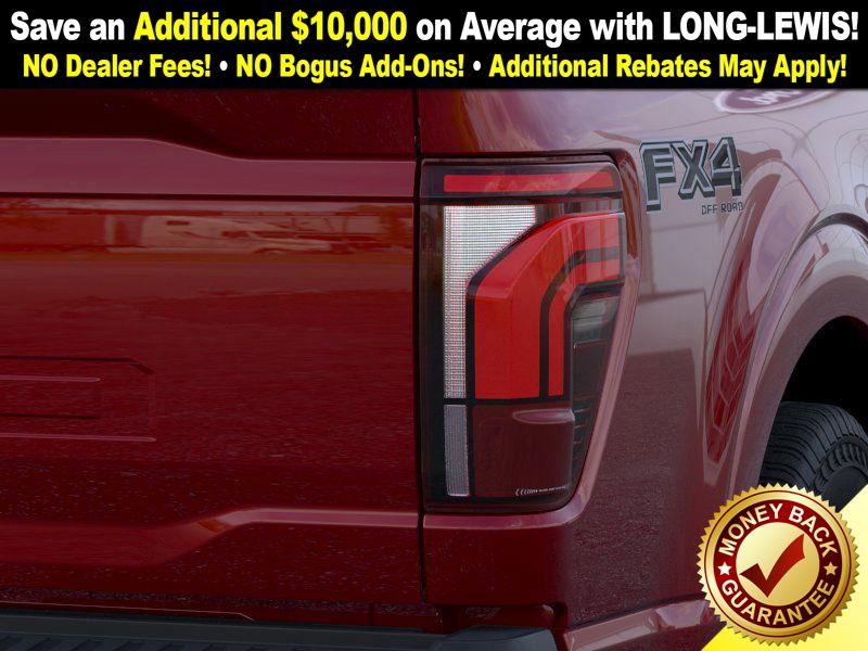 Rapid Red Metallic Tinted Clearcoat 2025 Ford F-150 Lariat NFT 4WD 10-Speed Automatic 5.0L V8 4WD, 4-Wheel Disc Brakes, 4x4 FX4 Off-Road Bodyside Decal, 8 Speakers, ABS brakes, ActiveX Trimmed Bucket Seats, Adjustable pedals, Air Conditioning, Alloy wheels, AM/FM radio: SiriusXM with 360L, Auto High-beam Headlights, Auto-dimming door mirrors, Auto-dimming Rear-View mirror, Automatic temperature control, Brake assist, Bumpers: chrome, Chrome wheels, Compass, Delay-off headlights, Driver door bin, Driver vanity mirror, Dual front impact airbags, Dual front side impact airbags, Electronic Stability Control, Emergency communication system: SYNC 4 911 Assist, Front anti-roll bar, Front Bucket Seats, Front Center Armrest, Front dual zone A/C, Front fog lights, Front License Plate Bracket, Front reading lights, Front wheel independent suspension, Fully automatic headlights, FX4 Off-Road Package, Garage door transmitter, Heated door mirrors, Heated front seats, Heated steering wheel, Hill Descent Control, Illuminated entry, Internet access capable: FordPass Connect 5G, Low tire pressure warning, Memory seat, Monotube Rear Shocks, Navigation system: Connected Navigation, Occupant sensing airbag, Off-Road Tuned Front Shock Absorbers, Outside temperature display, Overhead airbag, Overhead console, Panic alarm, Passenger door bin, Passenger vanity mirror, Pedal memory, Power door mirrors, Power driver seat, Power passenger seat, Power steering, Power windows, Radio data system, Radio: B&O Sound System by Bang & Olufsen, Rain sensing wipers, Rear reading lights, Rear seat center armrest, Rear step bumper, Rear window defroster, Remote keyless entry, Rock Crawl Mode, Security system, Speed control, Split folding rear seat, Steering wheel mounted audio controls, SYNC 4 w/Enhanced Voice Recognition, Tachometer, Telescoping steering wheel, Tilt steering wheel, Traction control, Tray Style Floor Liner w/o Carpet Mats, Trip computer, Turn signal indicator mirrors, Variably intermittent wipers, Ventilated front seats, Voltmeter, Wheels: 18" Chrome-Like PVD, 4WD.