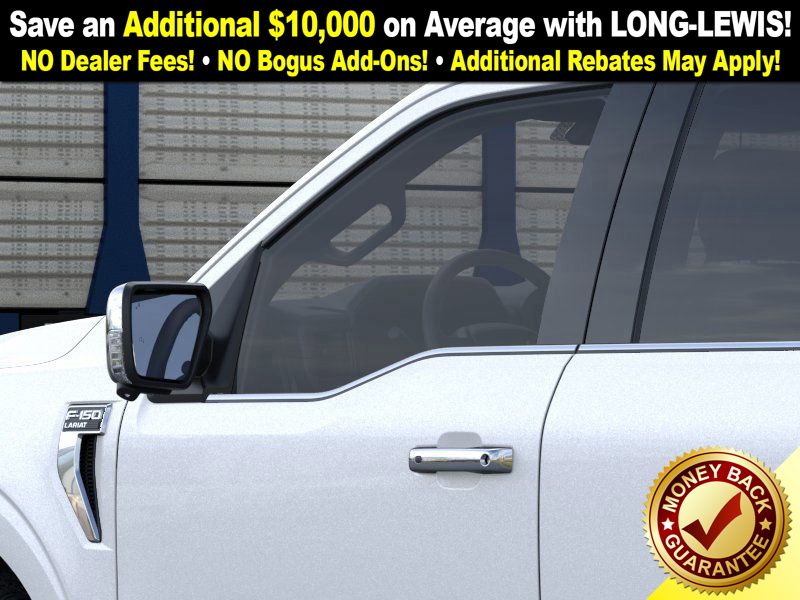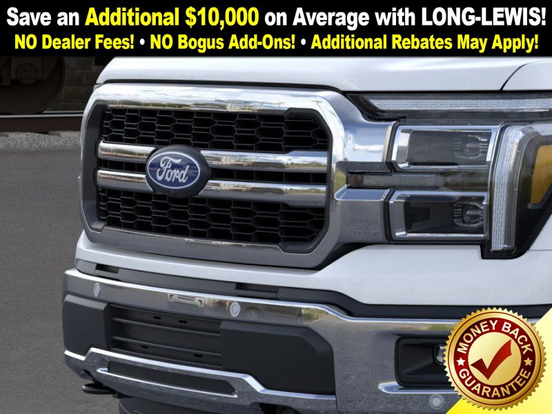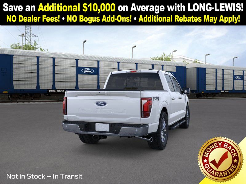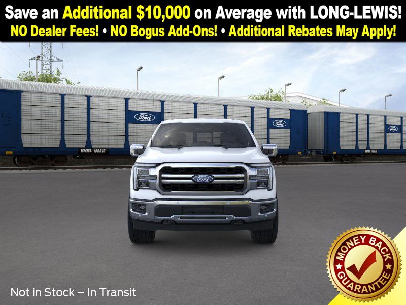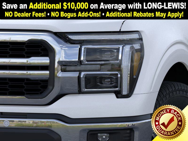 Star White Metallic Tri-Coat 2025 Ford F-150 Lariat NFT 4WD 10-Speed Automatic 5.0L V8 4WD, 4-Wheel Disc Brakes, 4x4 FX4 Off-Road Bodyside Decal, 8 Speakers, ABS brakes, ActiveX Trimmed Bucket Seats, ActiveX Trimmed Smoked Truffle Bucket Seats, Adjustable pedals, Air Conditioning, Alloy wheels, AM/FM radio: SiriusXM with 360L, Auto High-beam Headlights, Auto-dimming door mirrors, Auto-dimming Rear-View mirror, Automatic temperature control, Brake assist, Bumpers: chrome, Chrome wheels, Compass, Delay-off headlights, Driver door bin, Driver vanity mirror, Dual front impact airbags, Dual front side impact airbags, Electronic Stability Control, Emergency communication system: SYNC 4 911 Assist, Front anti-roll bar, Front Bucket Seats, Front Center Armrest, Front dual zone A/C, Front fog lights, Front License Plate Bracket, Front reading lights, Front wheel independent suspension, Fully automatic headlights, FX4 Off-Road Package, Garage door transmitter, Heated door mirrors, Heated front seats, Heated steering wheel, Hill Descent Control, Illuminated entry, Internet access capable: FordPass Connect 5G, Low tire pressure warning, Memory seat, Monotube Rear Shocks, Navigation system: Connected Navigation, Occupant sensing airbag, Off-Road Tuned Front Shock Absorbers, Outside temperature display, Overhead airbag, Overhead console, Panic alarm, Passenger door bin, Passenger vanity mirror, Pedal memory, Power door mirrors, Power driver seat, Power passenger seat, Power steering, Power windows, Radio data system, Radio: B&O Sound System by Bang & Olufsen, Rain sensing wipers, Rear reading lights, Rear seat center armrest, Rear step bumper, Rear window defroster, Remote keyless entry, Rock Crawl Mode, Security system, Speed control, Split folding rear seat, Steering wheel mounted audio controls, SYNC 4 w/Enhanced Voice Recognition, Tachometer, Telescoping steering wheel, Tilt steering wheel, Traction control, Tray Style Floor Liner w/o Carpet Mats, Trip computer, Turn signal indicator mirrors, Variably intermittent wipers, Ventilated front seats, Voltmeter, Wheels: 18" Chrome-Like PVD, 4WD.