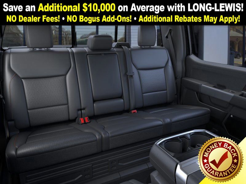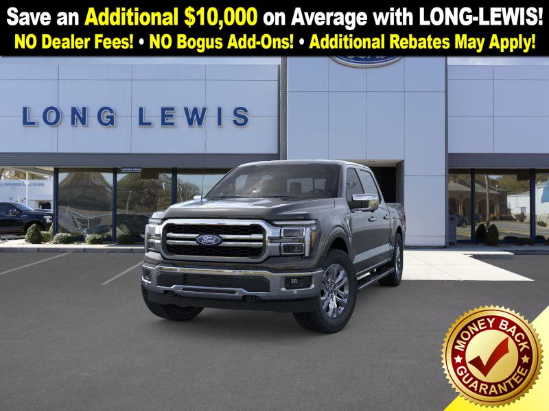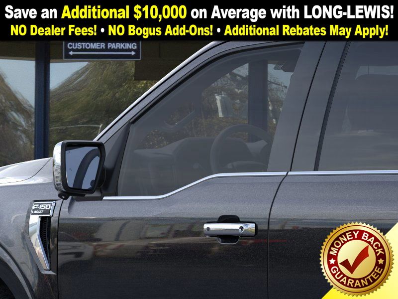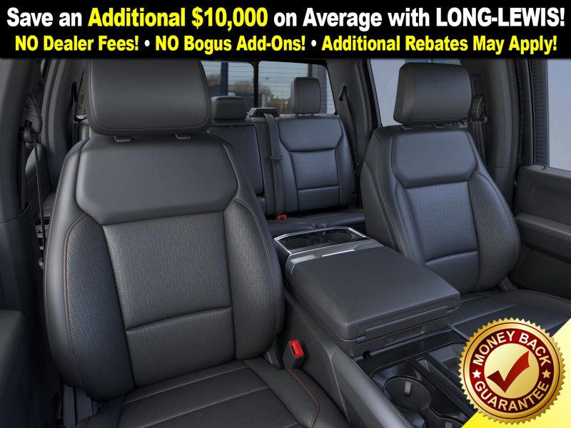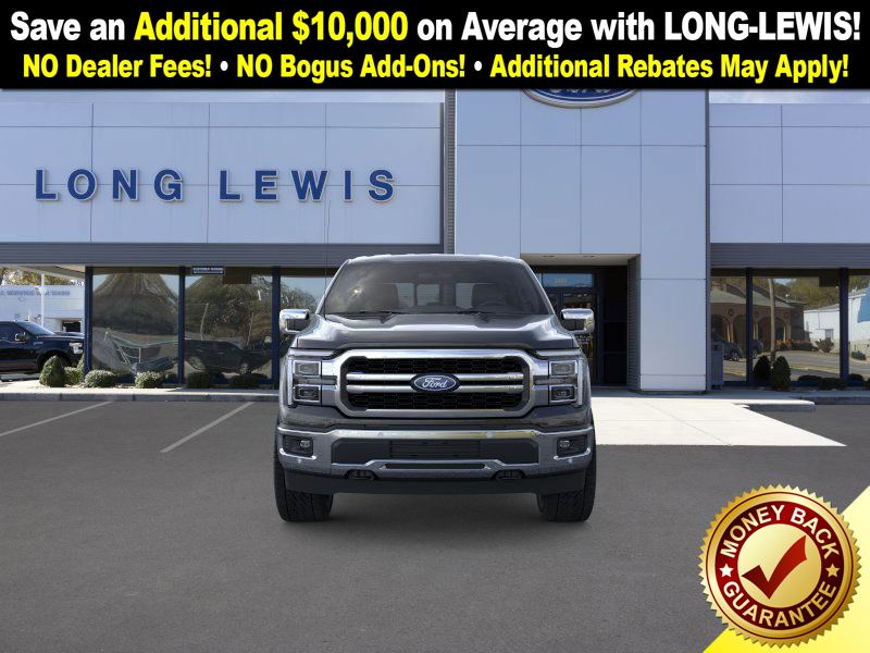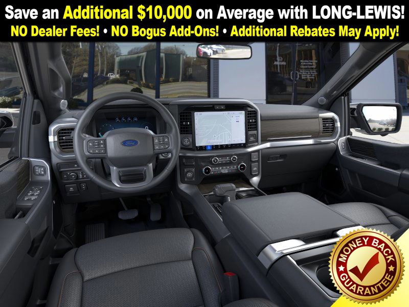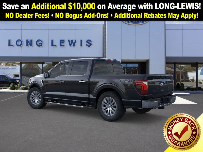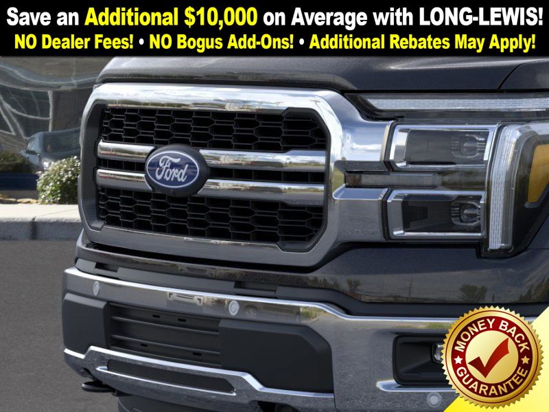 Agate Black Metallic 2025 Ford F-150 Lariat NFT 4WD 10-Speed Automatic 5.0L V8 4WD, 4-Wheel Disc Brakes, 4x4 FX4 Off-Road Bodyside Decal, 8 Speakers, ABS brakes, ActiveX Trimmed Bucket Seats, Adjustable pedals, Air Conditioning, Alloy wheels, AM/FM radio: SiriusXM with 360L, Auto High-beam Headlights, Auto-dimming door mirrors, Auto-dimming Rear-View mirror, Automatic temperature control, Brake assist, Bumpers: chrome, Chrome wheels, Compass, Delay-off headlights, Driver door bin, Driver vanity mirror, Dual front impact airbags, Dual front side impact airbags, Electronic Stability Control, Emergency communication system: SYNC 4 911 Assist, Front anti-roll bar, Front Bucket Seats, Front Center Armrest, Front dual zone A/C, Front fog lights, Front License Plate Bracket, Front reading lights, Front wheel independent suspension, Fully automatic headlights, FX4 Off-Road Package, Garage door transmitter, Heated door mirrors, Heated front seats, Heated steering wheel, Hill Descent Control, Illuminated entry, Internet access capable: FordPass Connect 5G, Low tire pressure warning, Memory seat, Monotube Rear Shocks, Navigation system: Connected Navigation, Occupant sensing airbag, Off-Road Tuned Front Shock Absorbers, Outside temperature display, Overhead airbag, Overhead console, Panic alarm, Passenger door bin, Passenger vanity mirror, Pedal memory, Power door mirrors, Power driver seat, Power passenger seat, Power steering, Power windows, Radio data system, Radio: B&O Sound System by Bang & Olufsen, Rain sensing wipers, Rear reading lights, Rear seat center armrest, Rear step bumper, Rear window defroster, Remote keyless entry, Rock Crawl Mode, Security system, Speed control, Split folding rear seat, Steering wheel mounted audio controls, SYNC 4 w/Enhanced Voice Recognition, Tachometer, Telescoping steering wheel, Tilt steering wheel, Traction control, Tray Style Floor Liner w/o Carpet Mats, Trip computer, Turn signal indicator mirrors, Variably intermittent wipers, Ventilated front seats, Voltmeter, Wheels: 18" Chrome-Like PVD, 4WD.