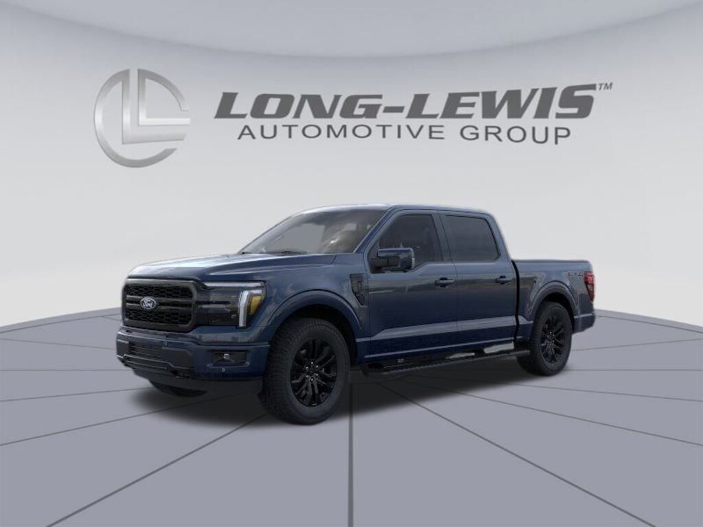 Antimatter Blue Metallic 2025 Ford F-150 Lariat 4WD 10-Speed Automatic 5.0L V8 4WD, 3.31 Axle Ratio, 4 Pickup Box Tie-Down Plates, 4-Wheel Disc Brakes, 4x4 FX4 Off-Road Bodyside Decal, 6" Extended Running Boards, 8 Speakers, ABS brakes, ActiveX Trimmed Bucket Seats, Adjustable pedals, Air Conditioning, Alloy wheels, AM/FM radio: SiriusXM with 360L, Auto High-beam Headlights, Auto-dimming door mirrors, Auto-dimming Rear-View mirror, Automatic temperature control, Bed Utility Package, Brake assist, Bumpers: chrome, Chrome wheels, Compass, Delay-off headlights, Driver door bin, Driver vanity mirror, Dual front impact airbags, Dual front side impact airbags, Electronic Locking w/3.31 Axle Ratio, Electronic Stability Control, Emergency communication system: SYNC 4 911 Assist, Front anti-roll bar, Front Bucket Seats, Front Center Armrest, Front dual zone A/C, Front fog lights, Front License Plate Bracket, Front reading lights, Front wheel independent suspension, Fully automatic headlights, FX4 Off-Road Package, Garage door transmitter, Heated door mirrors, Heated front seats, Heated steering wheel, Hill Descent Control, Illuminated entry, LED Box Lighting, Low tire pressure warning, Memory seat, Monotube Rear Shocks, Navigation system: Connected Navigation, Occupant sensing airbag, Off-Road Tuned Front Shock Absorbers, Outside temperature display, Overhead airbag, Overhead console, Panic alarm, Passenger door bin, Passenger vanity mirror, Pedal memory, Power door mirrors, Power driver seat, Power passenger seat, Power steering, Power Tailgate, Power windows, Pro Access Tailgate, Radio data system, Radio: B&O Sound System by Bang & Olufsen, Rain sensing wipers, Rear reading lights, Rear seat center armrest, Rear step bumper, Rear window defroster, Remote keyless entry, Rock Crawl Mode, Security system, Speed control, Split folding rear seat, Steering wheel mounted audio controls, SYNC 4 w/Enhanced Voice Recognition, Tachometer, Telescoping steering wheel, Tilt steering wheel, Traction control, Tray Style Floor Liner w/o Carpet Mats, Trip computer, Turn signal indicator mirrors, Variably intermittent wipers, Ventilated front seats, Voltmeter, Wheels: 18" Chrome-Like PVD, 4WD.