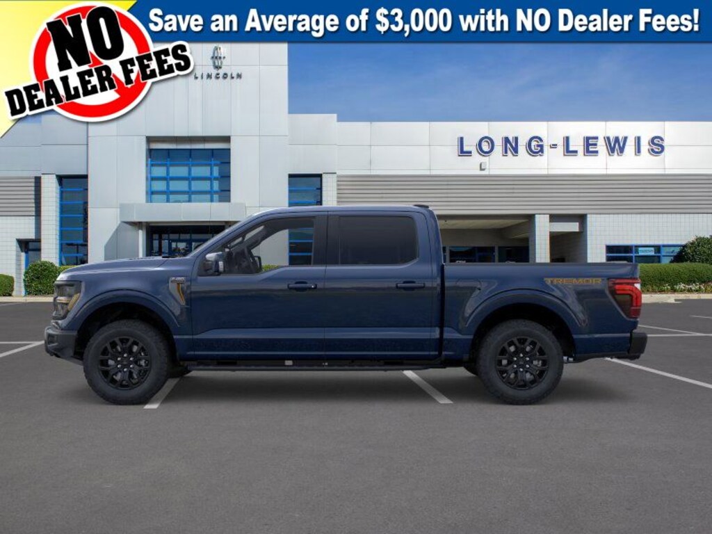 Dealer Discount of $6,754 off MSRP Antimatter Blue Metallic 2025 Ford F-150 Tremor fctp 4WD 10-Speed Automatic 5.0L V8 4WD, 2nd Row Heated Seats, 4 Pickup Box Tie-Down Plates, 4-Wheel Disc Brakes, 8 Speakers, ABS brakes, Adjustable pedals, Air Conditioning, Alloy wheels, AM/FM radio: SiriusXM with 360L, Ambient Lighting, Auto High-beam Headlights, Auto-dimming door mirrors, Auto-Dimming Rear-View Mirror, Auto-dimming Rear-View mirror, Automatic temperature control, Bed Utility Package, Brake assist, Bumpers: body-color, Compass, Console Worksurface, Delay-off headlights, Driver door bin, Driver vanity mirror, Dual front impact airbags, Dual front side impact airbags, Electronic Locking w/3.73 Axle Ratio, Electronic Stability Control, Emergency communication system: SYNC 4 911 Assist, Equipment Group 402A High, Front anti-roll bar, Front Axle w/Torsen Differential, Front Bucket Seats, Front Center Armrest, Front dual zone A/C, Front fog lights, Front License Plate Bracket, Front reading lights, Front wheel independent suspension, Fully automatic headlights, GVWR: 7,100 lbs Payload Package, Heads-Up Display, Heated door mirrors, Heated front seats, Heated Steering Wheel, Illuminated entry, Integrated Trailer Brake Controller, LED Box Lighting, LED Taillamps, Low tire pressure warning, Media Bin Door, Mobile Office Package, Modular Front Bumper & Carbon Black Rear Bumper, Navigation system: Connected Navigation, Occupant sensing airbag, Outside temperature display, Overhead airbag, Overhead console, Panic alarm, Partitioned Lockable Rear Storage, Passenger door bin, Passenger vanity mirror, Power door mirrors, Power driver seat, Power Glass Heated Sideview Mirrors, Power passenger seat, Power steering, Power Tailgate, Power windows, Power-Adjustable Pedals w/Memory, Premium Wrapped Steering Wheel, Radio data system, Radio: B&O Sound System by Bang & Olufsen, Radio: B&O Unleashed Sound System by Bang & Olufsen, Rain-Sensing Wipers, Rear reading lights, Rear step bumper, Rear window defroster, Remote keyless entry, Security system, Speed control, Split folding rear seat, Steering wheel mounted audio controls, SYNC 4 w/Enhanced Voice Recognition, Tachometer, Tailgate Step w/Tailgate Work Surface, Telescoping steering wheel, Tilt steering wheel, Tow/Haul Package, Traction control, Trip computer, Turn signal indicator mirrors, Twin Panel Moonroof, Two-Speed Automatic AWD w/Mechanical Locking 4WD, Unique Sport Cloth 40/Console/40 Power Front Seat, Unique Tremor Leather-Trimmed Bucket Seats, Universal Garage Door Opener, Variably intermittent wipers, Voltmeter, Wheels: 18" Alloy w/Dark Matte Finish, Wireless Charging, 4WD.