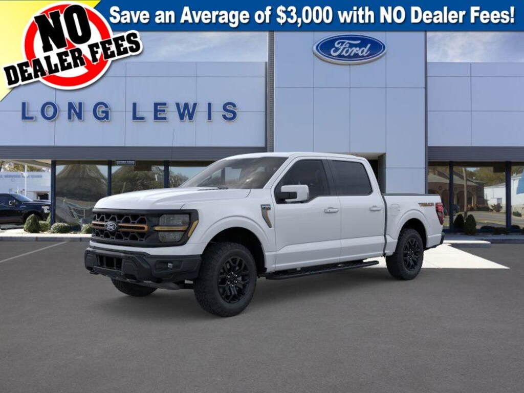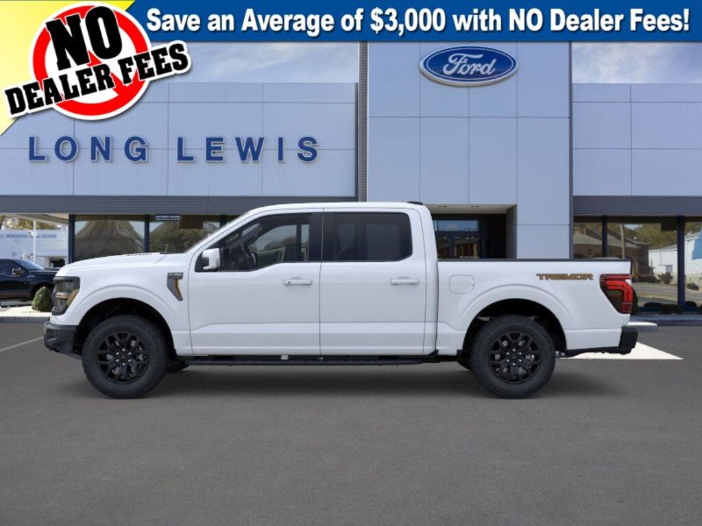 Oxford White 2025 Ford F-150 Tremor 4WD 10-Speed Automatic 5.0L V8 4WD, 4-Wheel Disc Brakes, 8 Speakers, ABS brakes, Adjustable pedals, Air Conditioning, Alloy wheels, AM/FM radio: SiriusXM with 360L, Auto High-beam Headlights, Auto-dimming door mirrors, Auto-dimming Rear-View mirror, Automatic temperature control, Brake assist, Bumpers: body-color, Compass, Delay-off headlights, Driver door bin, Driver vanity mirror, Dual front impact airbags, Dual front side impact airbags, Electronic Locking w/3.73 Axle Ratio, Electronic Stability Control, Emergency communication system: SYNC 4 911 Assist, Front anti-roll bar, Front Bucket Seats, Front Center Armrest, Front dual zone A/C, Front fog lights, Front License Plate Bracket, Front reading lights, Front wheel independent suspension, Fully automatic headlights, GVWR: 7,100 lbs Payload Package, Heated door mirrors, Heated front seats, Illuminated entry, Low tire pressure warning, Navigation system: Connected Navigation, Occupant sensing airbag, Outside temperature display, Overhead airbag, Overhead console, Panic alarm, Passenger door bin, Passenger vanity mirror, Power door mirrors, Power driver seat, Power passenger seat, Power steering, Power windows, Radio data system, Radio: B&O Sound System by Bang & Olufsen, Rear reading lights, Rear step bumper, Rear window defroster, Remote keyless entry, Security system, Speed control, Split folding rear seat, Steering wheel mounted audio controls, SYNC 4 w/Enhanced Voice Recognition, Tachometer, Telescoping steering wheel, Tilt steering wheel, Traction control, Trip computer, Turn signal indicator mirrors, Twin Panel Moonroof, Unique Sport Cloth 40/Console/40 Power Front Seat, Unique Tremor Leather-Trimmed Bucket Seats, Variably intermittent wipers, Voltmeter, Wheels: 18" Alloy w/Dark Matte Finish, 4WD.