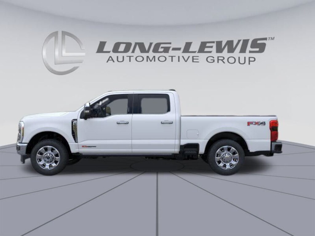 Star White Metallic Tri-Coat 2025 Ford F-250SD King Ranch 4WD 10-Speed Automatic 6.7L High Output Power Stroke V8 Diesel 4WD, 14 Speakers, 4-Wheel Disc Brakes, 410 Amp Dual Alternators, 5th Wheel/Gooseneck Hitch Prep Package, ABS brakes, Adjustable pedals, Air Conditioning, Alloy wheels, AM/FM radio: SiriusXM with 360L, Auto High-beam Headlights, Auto tilt-away steering wheel, Auto-dimming Rear-View mirror, Automatic temperature control, Brake assist, Chrome Door Handles, Chrome Exhaust Tip, Chrome Front & Rear Bumpers, Chrome Package, Compass, Delay-off headlights, Driver door bin, Driver vanity mirror, Dual front impact airbags, Dual front side impact airbags, Electronic Stability Control, Emergency communication system: SYNC 4 911 Assist, Engine Block Heater, F-250 >10K GVWR Package, Flow-Through Console, Front anti-roll bar, Front Bucket Seats, Front Center Armrest, Front dual zone A/C, Front fog lights, Front License Plate Bracket, Front reading lights, Fully automatic headlights, FX4 Off-Road Package, Garage door transmitter, Heads-Up Display, Heated door mirrors, Heated front seats, Heated rear seats, Heated steering wheel, High Capacity 11.6" Axle Upgrade Package, Hill Descent Control, Illuminated entry, Leather steering wheel, LED Roof Clearance Lights, Low tire pressure warning, Memory seat, Navigation System, Off-Road Specifically Tuned Shock Absorbers, Order Code 700A, Outside temperature display, Overhead airbag, Overhead console, Panic alarm, Passenger door bin, Passenger vanity mirror, Pedal memory, Power door mirrors, Power driver seat, Power passenger seat, Power steering, Power windows, Radio: B&O Unleashed Sound System by Bang & Olufsen, Rain sensing wipers, Rapid-Heat Supplemental Cab Heater, Rear reading lights, Rear seat center armrest, Rear step bumper, Rear window defroster, Remote keyless entry, Security system, SiriusXM Radio w/360L, Speed control, Split folding rear seat, Steering wheel memory, Steering wheel mounted A/C controls, Steering wheel mounted audio controls, SYNC 4 w/Enhanced Voice Recognition, Tachometer, Telescoping steering wheel, Tilt steering wheel, Traction control, Trip computer, Turn signal indicator mirrors, Twin Panel Power Moonroof, Unique Chrome Mirror Caps, Unique FX4 Off-Road Box Decal, Unique King Ranch Leather 40/Console/40 Seats, Upfitter Switches (6), Variably intermittent wipers, Ventilated front seats, Wheels: 20" Bright Machined Cast Aluminum, Wheels: 20" Chrome PVD Aluminum, 4WD.