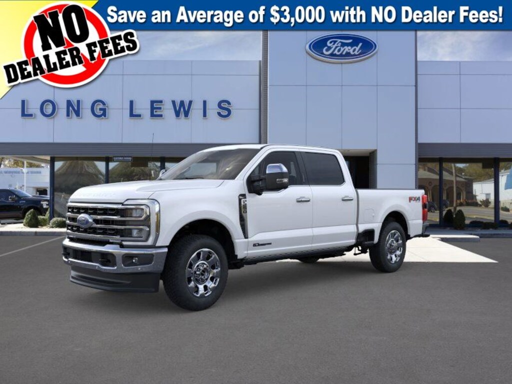 Star White Metallic Tri-Coat 2025 Ford F-250SD King Ranch 4WD 10-Speed Automatic Power Stroke 6.7L V8 DI 32V OHV Turbodiesel 4WD, 3.73 Axle Ratio, 4-Wheel Disc Brakes, 410 Amp Dual Alternators, ABS brakes, Adjustable pedals, Air Conditioning, Alloy wheels, AM/FM radio: SiriusXM with 360L, Auto High-beam Headlights, Auto-dimming Rear-View mirror, Automatic temperature control, Brake assist, Chrome Door Handles, Chrome Exhaust Tip, Chrome Package, Compass, Delay-off headlights, Driver door bin, Driver vanity mirror, Dual front impact airbags, Dual front side impact airbags, Electronic Stability Control, Electronic-Locking w/3.31 Axle Ratio, Emergency communication system: SYNC 4 911 Assist, Engine Block Heater, F-250 >10K GVWR Package, Flow-Through Console, Front anti-roll bar, Front Bucket Seats, Front Center Armrest, Front dual zone A/C, Front fog lights, Front reading lights, Fully automatic headlights, FX4 Off-Road Package, Garage door transmitter, Heated door mirrors, Heated front seats, Heated rear seats, Heated steering wheel, High Capacity 11.6" Axle Upgrade Package, Hill Descent Control, Illuminated entry, Low tire pressure warning, Memory seat, Navigation System, Off-Road Specifically Tuned Shock Absorbers, Outside temperature display, Overhead airbag, Overhead console, Panic alarm, Passenger door bin, Passenger vanity mirror, Pedal memory, Power door mirrors, Power driver seat, Power passenger seat, Power steering, Power windows, Power-Deployable Running Boards, Rain sensing wipers, Rapid-Heat Supplemental Cab Heater, Rear reading lights, Rear seat center armrest, Rear step bumper, Rear window defroster, Remote keyless entry, Security system, SiriusXM Radio w/360L, Speed control, Split folding rear seat, Steering wheel mounted audio controls, SYNC 4 w/Enhanced Voice Recognition, Tachometer, Telescoping steering wheel, Tilt steering wheel, Traction control, Trip computer, Turn signal indicator mirrors, Twin Panel Power Moonroof, Unique Chrome Mirror Caps, Unique FX4 Off-Road Box Decal, Upfitter Switches (6), Variably intermittent wipers, Ventilated front seats, Wheels: 20" Chrome PVD Aluminum, 4WD.