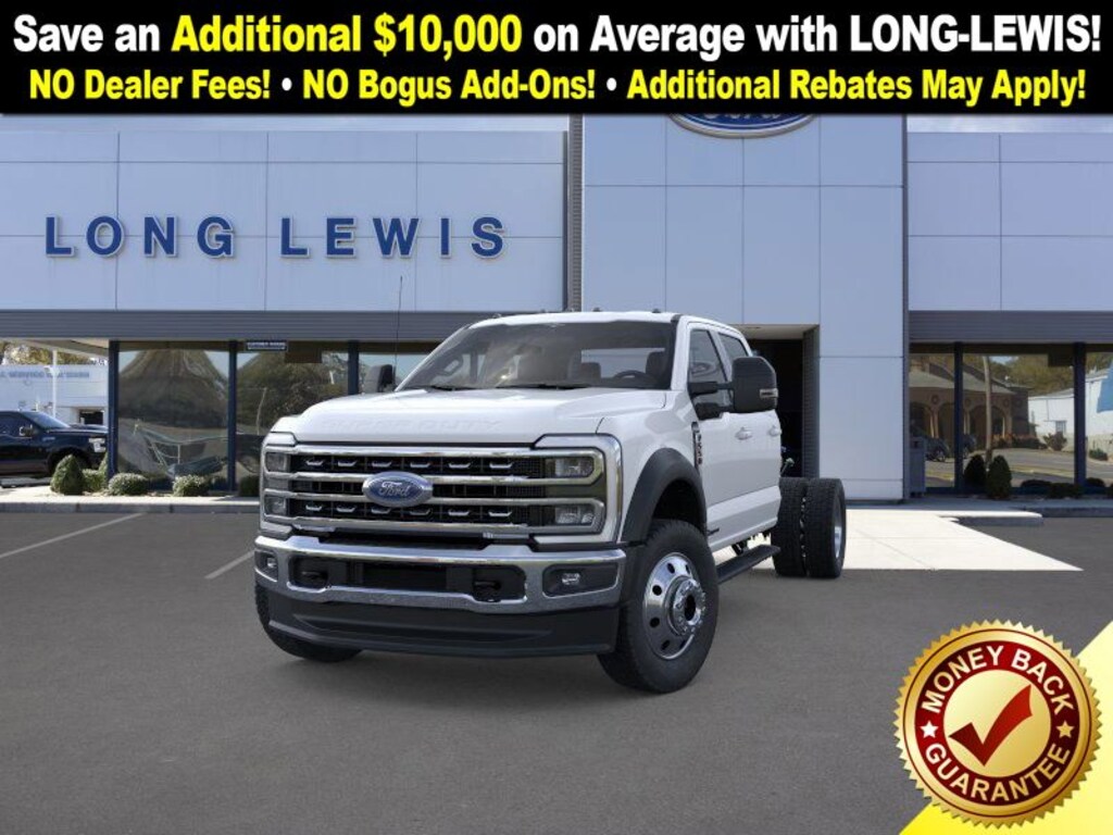 Oxford White 2025 Ford F-550SD Lariat DRW 4WD 10-Speed Automatic Power Stroke 6.7L V8 DI 32V OHV Turbodiesel 4WD, 4-Wheel Disc Brakes, 4.88 Axle Ratio, 410 Amp Dual Alternators, 6-Ton Hydraulic Jack, ABS brakes, Air Conditioning, Brake assist, Center High-Mounted Stop Lamp (CHMSL), Compass, Delay-off headlights, Dual front impact airbags, Dual front side impact airbags, Dual rear wheels, Emergency communication system: SYNC 4 911 Assist, Engine Block Heater, Extra Heavy-Service Suspension Package, Front anti-roll bar, Front License Plate Bracket, Front reading lights, Fully automatic headlights, GVWR: 18,000 lbs Payload Package, GVWR: 19,550 lb Payload Plus Upgrade Package 2, Heated door mirrors, High Capacity Trailer Tow Package, Illuminated entry, Limited Slip w/4.30 Axle Ratio, Outside temperature display, Overhead airbag, Overhead console, Panic alarm, Passenger vanity mirror, Platform Running Boards, Power door mirrors, Power steering, Power windows, Rapid-Heat Supplemental Cab Heater, Rear anti-roll bar, Rear reading lights, Remote keyless entry, Security system, Speed control, Split folding rear seat, Steering wheel mounted audio controls, Tachometer, Telescoping steering wheel, Tilt steering wheel, Traction control, Trip computer, Turn signal indicator mirrors, Variably intermittent wipers, 4WD.