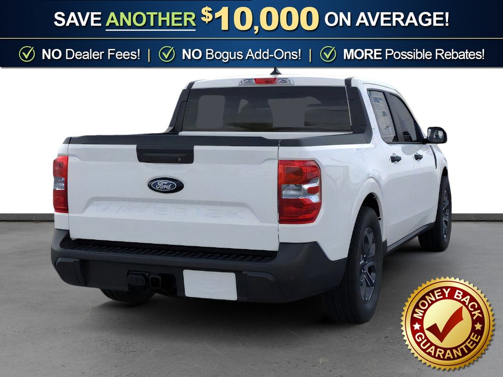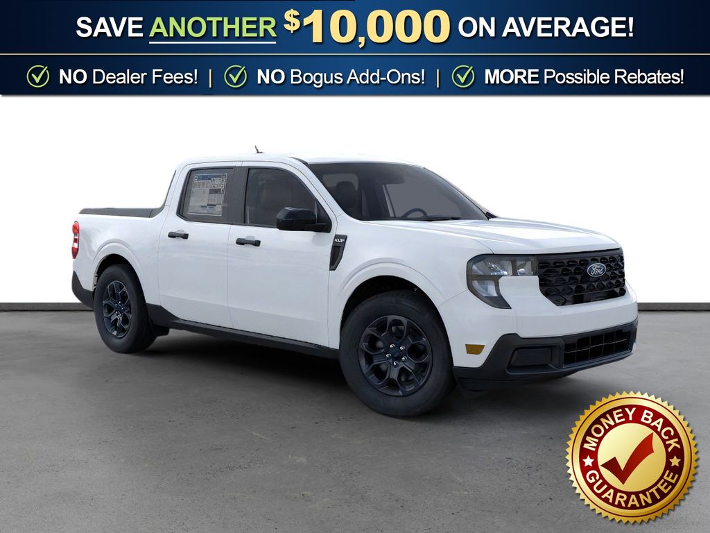 Oxford White 2025 Ford Maverick XLT fctp AWD 8-Speed Automatic EcoBoost 2.0L I4 GTDi DOHC Turbocharged VCT 2.91 Axle Ratio, 4-Wheel Disc Brakes, 400W Inverter w/USB Console Rear, 4K Tow Package, 6 Speakers, ABS brakes, Air Conditioning, Alloy wheels, AM/FM radio: SiriusXM with 360L, Apple CarPlay/Android Auto, Auto High Beams, Auto High-beam Headlights, Automatic temperature control, BLIS w/Cross-Traffic Alert, Brake assist, Bumpers: body-color, Compass, Cross Traffic Brake Assist, Delay-off headlights, Driver door bin, Driver vanity mirror, Dual front impact airbags, Dual front side impact airbags, Electronic Stability Control, Emergency communication system: SYNC 4 911 Assist, Evasive Steering Assist, Exterior Parking Camera Rear, Ford Co-Pilot360 1.0, Four wheel independent suspension, Front anti-roll bar, Front Bucket Seats, Front Center Armrest, Front reading lights, Fully automatic headlights, Heated Mirror w/Painted Black Skull Caps, Heated Seats, Illuminated entry, Intersection Assist, Knee airbag, Lane-Keeping System, LED Box Lighting, Low tire pressure warning, Occupant sensing airbag, Outside temperature display, Overhead airbag, Overhead console, Panic alarm, Passenger door bin, Passenger vanity mirror, Power door mirrors, Power Glass Manual-Folding Mirrors, Power steering, Power windows, Pre-Collision Assist w/Automatic Emergency Braking, Radio data system, Radio: AM/FM Stereo w/6 Speakers, Rear anti-roll bar, Rear Parking Sensors, Rear seat center armrest, Rear step bumper, Rear-View Camera, Remote keyless entry, Remote Start System, Security system, SiriusXM w/360L, Soft Vinyl Wrapped Heated Steering Wheel, Speed control, Speed-sensing steering, Steering wheel mounted audio controls, SYNC 4 w/Enhanced Voice Recognition, Telescoping steering wheel, Tilt steering wheel, Traction control, Trailer Brake Controller, Trailer Hitch (Class III) 2" Receiver, Transmission Oil Cooler, Trip computer, Unique Cloth Front Bucket Seats, Upgraded Cooling Fan, Wheels: 17" Carbonized Gray Painted Aluminum, XLT Luxury Package.
