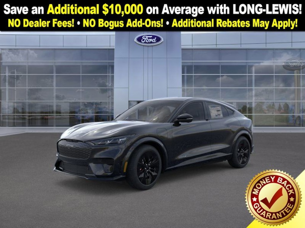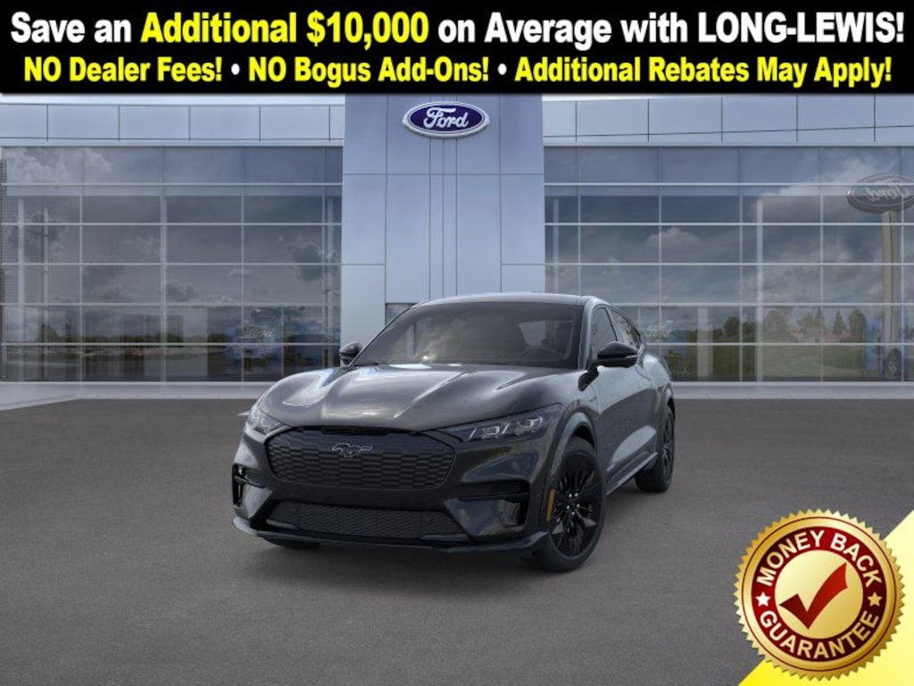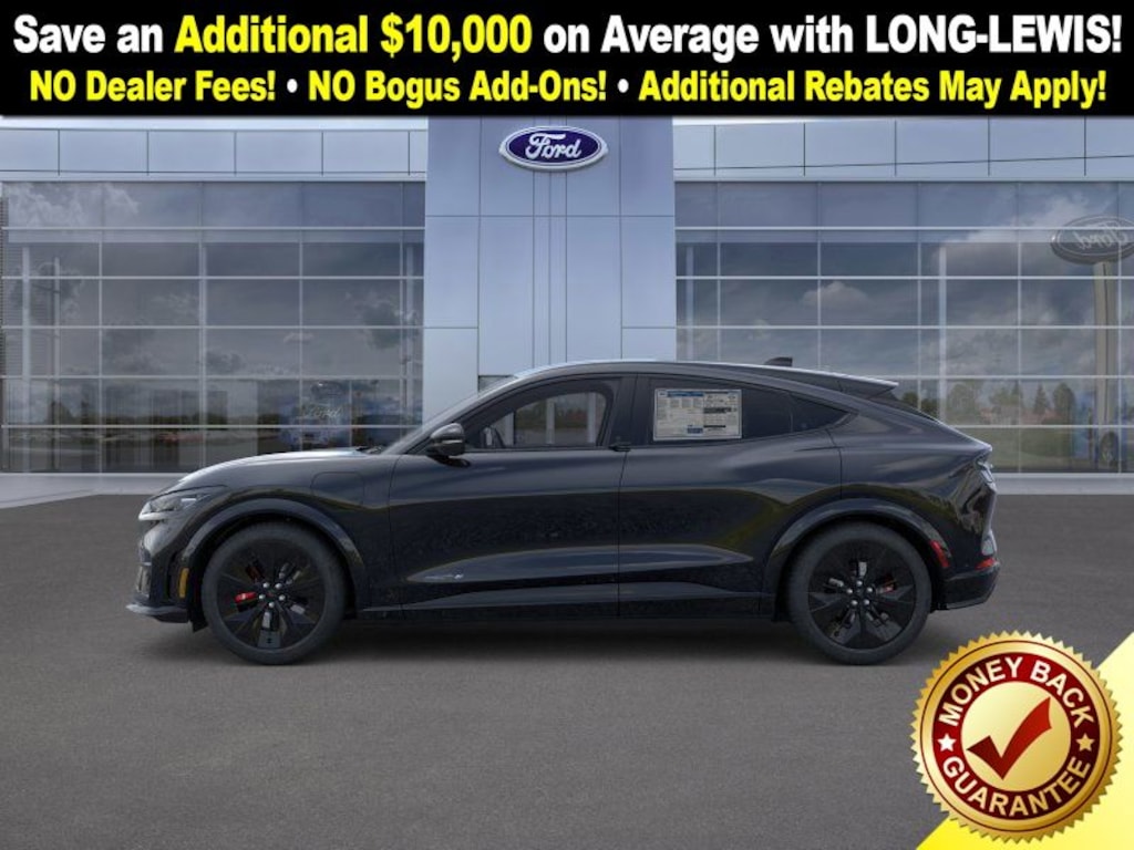 Shadow Black 2025 Ford Mustang Mach-E GT NFT AWD Single-Speed Automatic Electric Motor 10 Speakers, 1st & 2nd Row Floor Liners w/o Carpet Mats, 4-Wheel Disc Brakes, ABS brakes, Adaptive suspension, Air Conditioning, Alloy wheels, AM/FM radio: SiriusXM with 360L, Apple CarPlay/Android Auto, Auto High-beam Headlights, Auto-dimming Rear-View mirror, Automatic temperature control, Brake assist, Bumpers: body-color, Cargo Area Cover, Cargo Floor Liner, Compass, Delay-off headlights, Driver door bin, Driver vanity mirror, Dual front impact airbags, Dual front side impact airbags, Electronic Stability Control, Emergency communication system: 911 Assist, Equipment Group 400A Standard Package, Exterior Parking Camera Rear, Four wheel independent suspension, Front anti-roll bar, Front Bucket Seats, Front Center Armrest, Front dual zone A/C, Front reading lights, Fully automatic headlights, Garage door transmitter, Heated door mirrors, Heated front seats, Heated Perforated ActiveX Performance Seats, Heated steering wheel, Hood & Decklid Stripe/Door Graphics Delete, Illuminated entry, Interior Protection Package, Knee airbag, Low tire pressure warning, Memory seat, Mobile Power Cord (120V/240V), Mustang Mach-E GT Performance Upgrade, Navigation system: Connected Navigation, Occupant sensing airbag, Outside temperature display, Overhead airbag, Overhead console, Panic alarm, Panoramic Fixed-Glass Roof, Passenger door bin, Passenger vanity mirror, Power door mirrors, Power driver seat, Power Liftgate, Power passenger seat, Power steering, Power windows, Radio data system, Radio: B&O Sound System by Bang & Olufsen, Rain sensing wipers, Rear anti-roll bar, Rear seat center armrest, Rear side impact airbag, Rear window defroster, Rear window wiper, Remote keyless entry, Security system, SiriusXM w/360L, Speed control, Speed-sensing steering, Speed-Sensitive Wipers, Split folding rear seat, Spoiler, Steering wheel mounted audio controls, SYNC 4A w/Enhanced Voice Recognition, Telescoping steering wheel, Tilt steering wheel, Tire Inflator & Sealant Kit, Traction control, Trip computer, Turn signal indicator mirrors, Variably intermittent wipers, Wheels: 20" Monochromatic High Gloss Black-Painted.