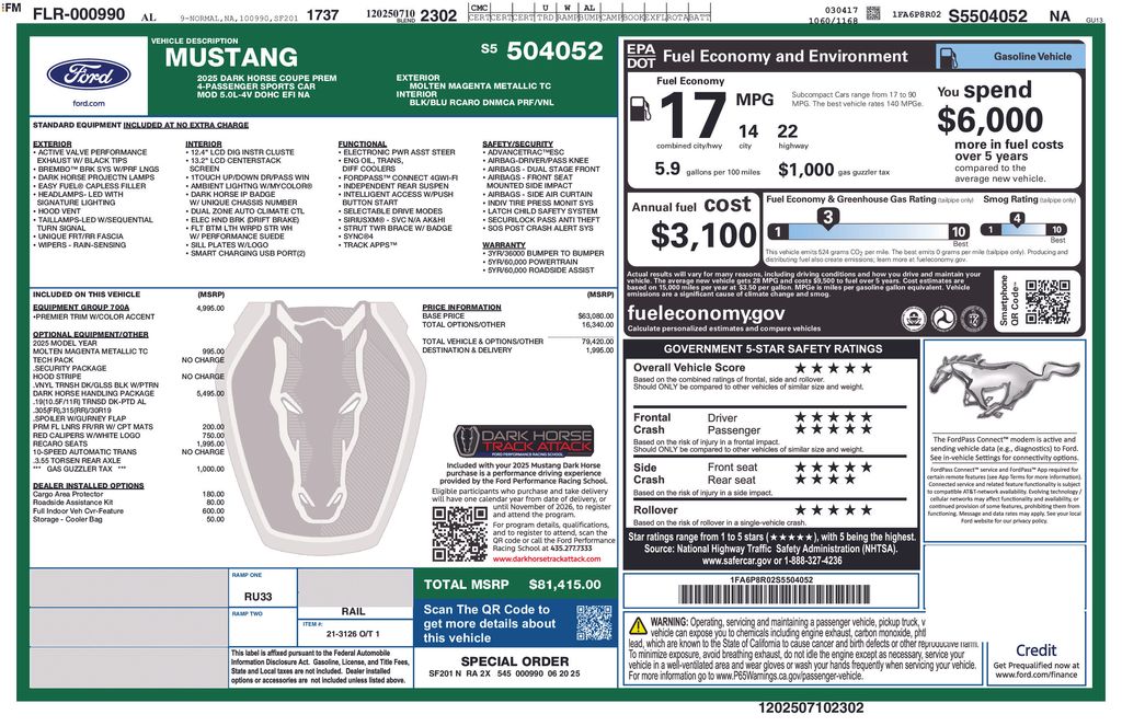 2025 Ford Mustang Dark Horse Coupe V8 DOHC 32V