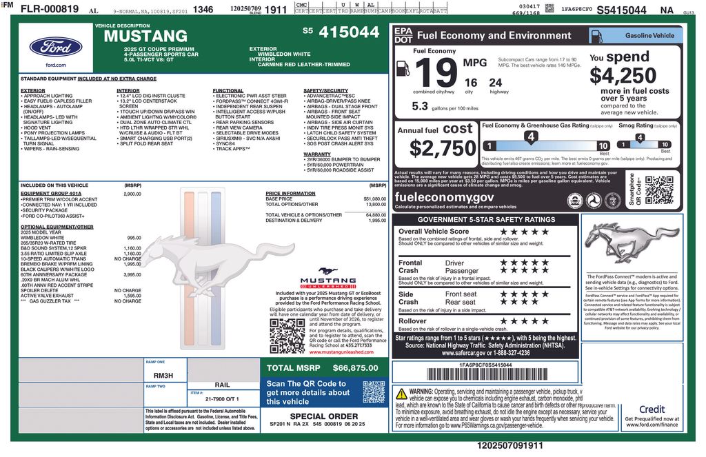 2025 Ford Mustang GT Premium Coupe V8 Ti-VCT