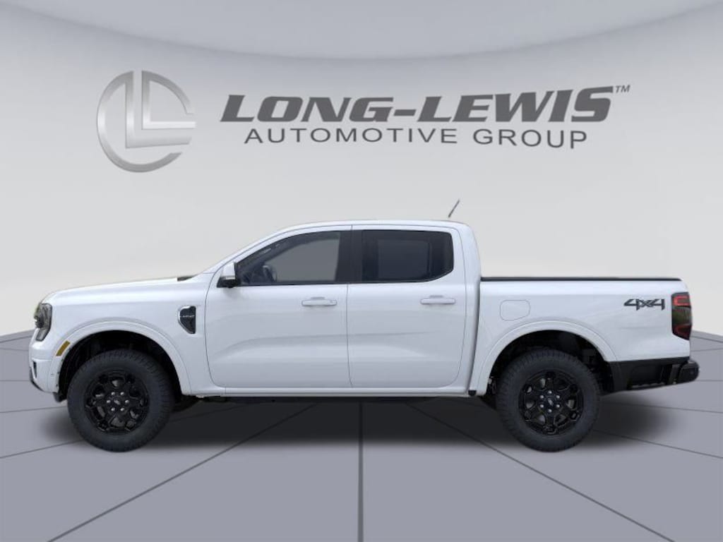 Oxford White 2025 Ford Ranger Lariat fctp 4WD 10-Speed Automatic 2.7L EcoBoost V6 4WD, 10 Speakers, 4-Wheel Disc Brakes, ABS brakes, Advanced Towing Package, Air Conditioning, Alloy wheels, AM/FM radio: SiriusXM, Auto High-beam Headlights, Auto-dimming Rear-View mirror, Automatic temperature control, Black Appearance Package, Black Center Bar & Surround Grille, Black Rear Bumper, Body-Color Painted Front Fascia, Brake assist, Class IV Trailer Hitch Receiver, Compass, Delay-off headlights, Driver door bin, Driver vanity mirror, Dual front impact airbags, Dual front side impact airbags, Electronic Stability Control, Emergency communication system: SYNC 4 911 Assist, Equipment Group 500A Standard, Front & Rear Black Ford Ovals, Front anti-roll bar, Front Bucket Seats, Front Center Armrest, Front dual zone A/C, Front fog lights, Front License Plate Bracket, Front reading lights, Front wheel independent suspension, Fully automatic headlights, Garage door transmitter, Gray Painted Center Bar & Grille Surround, Gray Painted Front Fascia & Rear Bumper, Heated door mirrors, Heated front seats, Heated steering wheel, Illuminated entry, Leather Shift Knob, Leather steering wheel, Leather-Trimmed Front Heated Bucket Seats, Low tire pressure warning, Memory seat, Navigation system: Connected Navigation, Occupant sensing airbag, Outside temperature display, Overhead airbag, Overhead console, Painted Body-Color Wheel Lip Molding, Panic alarm, Passenger door bin, Passenger vanity mirror, Power door mirrors, Power driver seat, Power passenger seat, Power steering, Power windows, Pro Trailer Backup Assist, Radio: B&O Sound System by Bang & Olufsen, Rain sensing wipers, Rear Parking Sensors w/Trailer Guidance, Rear reading lights, Rear seat center armrest, Rear step bumper, Rear window defroster, Remote keyless entry, Security system, SiriusXM Satellite Radio, Speed control, Speed-sensing steering, Sport Appearance Package, Sport Box Decal, Steering wheel mounted audio controls, SYNC 4A w/Connected Navigation, Telescoping steering wheel, Tilt steering wheel, Traction control, Trailer Brake Controller, Trailer Tow Package, Trip computer, Turn signal indicator mirrors, Unique Carpet Mats, Variably intermittent wipers, Voltmeter, Wheels: 18" Black Painted, Wheels: 18" Machined Aluminum w/Dark Pockets, 4WD.