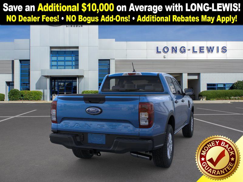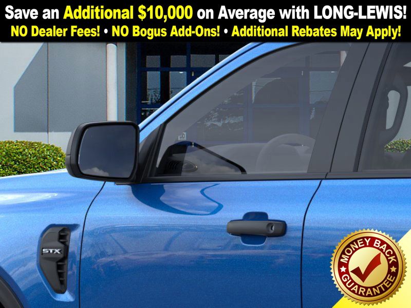 Velocity Blue Metallic 2025 Ford Ranger XL NFT RWD 10-Speed Automatic EcoBoost 2.3L I4 GTDi DOHC Turbocharged VCT 3.73 Axle Ratio, 4-Wheel Disc Brakes, 6 Speakers, ABS brakes, Air Conditioning, Alloy wheels, AM/FM radio, AM/FM Stereo, Auto High-beam Headlights, Brake assist, Bumpers: body-color, Carpet Floor Covering w/Carpet Floor Mats, Class IV Trailer Hitch Receiver, Cloth Front Bucket Seats, Compass, Delay-off headlights, Driver door bin, Dual front impact airbags, Dual front side impact airbags, Electronic Stability Control, Emergency communication system: SYNC 4 911 Assist, Equipment Group 100A Standard, Front anti-roll bar, Front Bucket Seats, Front Center Armrest, Front fog lights, Front License Plate Bracket, Front reading lights, Front wheel independent suspension, Fully automatic headlights, Halogen Fog Lamps, Illuminated entry, LED Reflector Headlamps, Low tire pressure warning, Occupant sensing airbag, Outside temperature display, Overhead airbag, Overhead console, Panic alarm, Passenger door bin, Power door mirrors, Power steering, Power windows, Rear reading lights, Rear seat center armrest, Rear step bumper, Remote keyless entry, Security system, Speed control, Speed-sensing steering, Steering wheel mounted audio controls, STX Appearance Package, STX Fender Badge, SYNC 4A, Telescoping steering wheel, Tilt steering wheel, Traction control, Trailer Tow Package, Trip computer, Variably intermittent wipers, Voltmeter, Wheels: 17" Silver-Painted Aluminum.