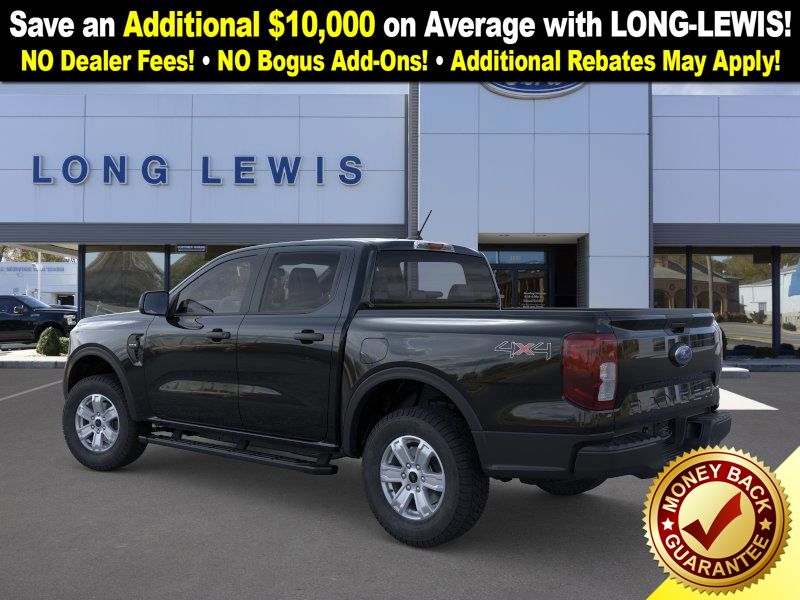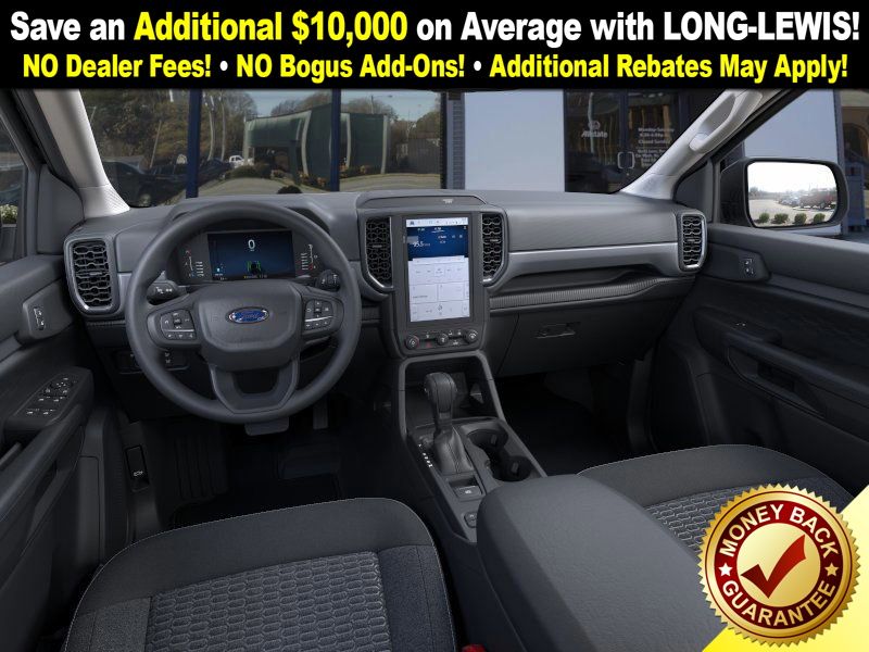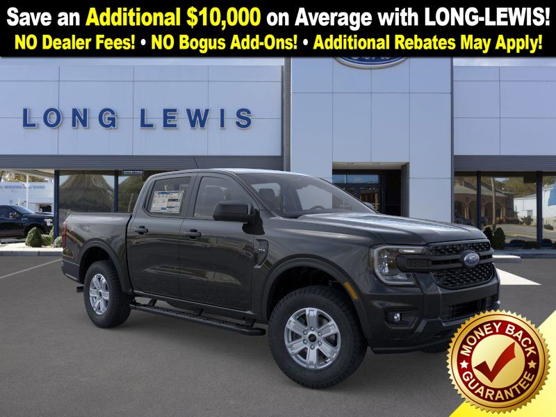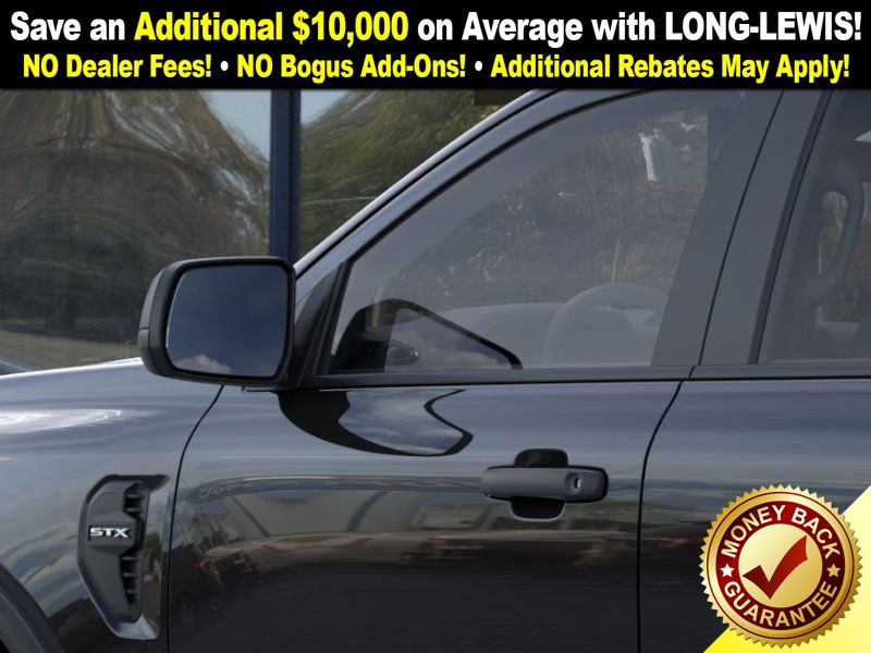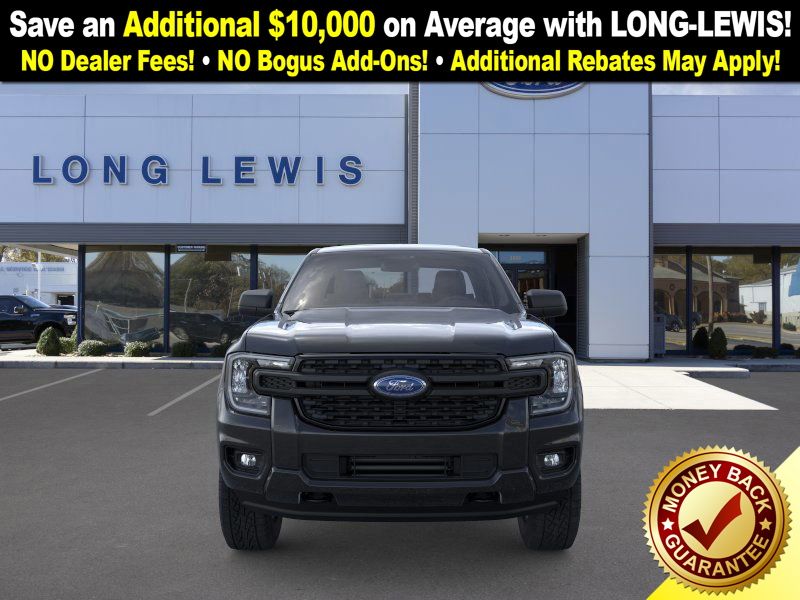 Shadow Black 2025 Ford Ranger XL NFT 4WD 10-Speed Automatic EcoBoost 2.3L I4 GTDi DOHC Turbocharged VCT 4WD, 4-Wheel Disc Brakes, 6 Speakers, ABS brakes, Air Conditioning, Alloy wheels, AM/FM radio, AM/FM Stereo, Auto High-beam Headlights, Black Running Boards, Brake assist, Bumpers: body-color, Carpet Floor Covering w/Carpet Floor Mats, Class IV Trailer Hitch Receiver, Cloth Front Bucket Seats, Compass, Delay-off headlights, Driver door bin, Dual front impact airbags, Dual front side impact airbags, Electronic Stability Control, Emergency communication system: SYNC 4 911 Assist, Front anti-roll bar, Front Bucket Seats, Front Center Armrest, Front fog lights, Front License Plate Bracket, Front reading lights, Front wheel independent suspension, Fully automatic headlights, Halogen Fog Lamps, Illuminated entry, Internet access capable: FordPass Connect 4G, LED Reflector Headlamps, Low tire pressure warning, Occupant sensing airbag, Outside temperature display, Overhead airbag, Overhead console, Panic alarm, Passenger door bin, Power door mirrors, Power steering, Power windows, Rear reading lights, Rear seat center armrest, Rear step bumper, Remote keyless entry, Security system, Speed control, Speed-sensing steering, Steering wheel mounted audio controls, STX Appearance Package, STX Fender Badge, SYNC 4A, Telescoping steering wheel, Tilt steering wheel, Traction control, Trailer Tow Package, Trip computer, Variably intermittent wipers, Voltmeter, Wheels: 17" Silver-Painted Aluminum, 4WD.