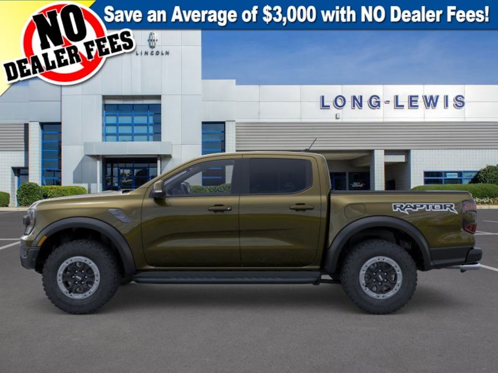 Dealer Discount of $1,000 off MSRP Shelter Green Metallic 2025 Ford Ranger Raptor 4WD 10-Speed Automatic 3.0L EcoBoost V6 4WD, 10 Speakers, 4-Wheel Disc Brakes, 4.27 Axle Ratio, ABS brakes, Air Conditioning, Alloy wheels, AM/FM radio: SiriusXM, Auto High-beam Headlights, Auto-dimming Rear-View mirror, Automatic temperature control, Brake assist, Compass, Delay-off headlights, Driver door bin, Driver vanity mirror, Dual front impact airbags, Dual front side impact airbags, Electronic Stability Control, Emergency communication system: SYNC 4 911 Assist, Front anti-roll bar, Front Bucket Seats, Front Center Armrest, Front dual zone A/C, Front fog lights, Front License Plate Bracket, Front reading lights, Front wheel independent suspension, Fully automatic headlights, Garage door transmitter, Heated door mirrors, Heated front seats, Heated steering wheel, Illuminated entry, Leather Shift Knob, Leather steering wheel, Leather-Trimmed Front Heated Bucket Seats, Low tire pressure warning, Memory seat, Navigation system: Connected Navigation, Occupant sensing airbag, Outside temperature display, Overhead airbag, Overhead console, Panic alarm, Passenger door bin, Passenger vanity mirror, Power door mirrors, Power driver seat, Power passenger seat, Power steering, Power windows, Radio: B&O Sound System by Bang & Olufsen, Rain sensing wipers, Rear reading lights, Rear seat center armrest, Rear step bumper, Rear window defroster, Remote keyless entry, Security system, SiriusXM Satellite Radio, Speed control, Speed-sensing steering, Steering wheel mounted audio controls, SYNC 4A, Telescoping steering wheel, Tilt steering wheel, Traction control, Trip computer, Turn signal indicator mirrors, Variably intermittent wipers, Voltmeter, Wheels: 17" Forged Beadlock Capable, Wheels: 17" Gray-Painted Aluminum, 4WD.