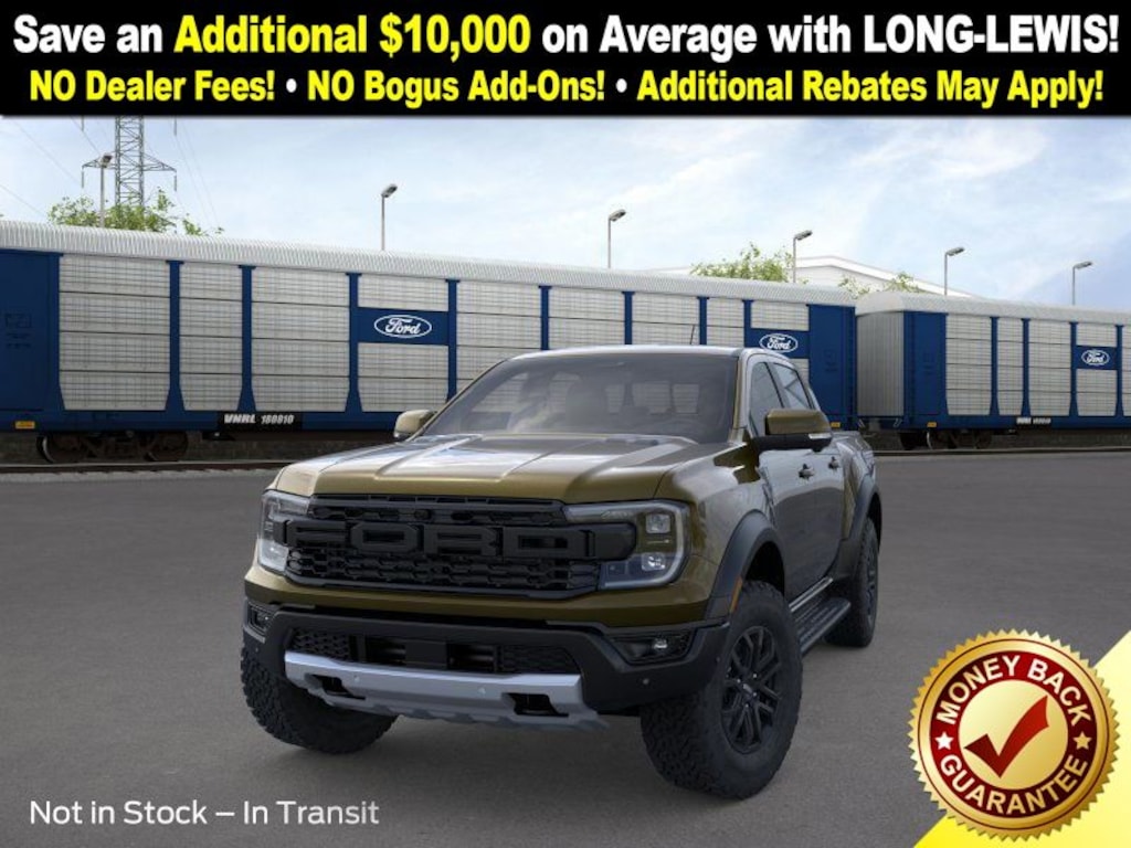 Shelter Green Metallic 2025 Ford Ranger Raptor NFT 4WD 10-Speed Automatic 3.0L EcoBoost V6 4WD, 10 Speakers, 4-Wheel Disc Brakes, 4.27 Axle Ratio, ABS brakes, Air Conditioning, Alloy wheels, AM/FM radio: SiriusXM, Auto High-beam Headlights, Auto-dimming Rear-View mirror, Automatic temperature control, Brake assist, Compass, Delay-off headlights, Driver door bin, Driver vanity mirror, Dual front impact airbags, Dual front side impact airbags, Electronic Stability Control, Emergency communication system: SYNC 4 911 Assist, Front anti-roll bar, Front Bucket Seats, Front Center Armrest, Front dual zone A/C, Front fog lights, Front License Plate Bracket, Front reading lights, Front wheel independent suspension, Fully automatic headlights, Garage door transmitter, Heated door mirrors, Heated front seats, Heated steering wheel, Illuminated entry, Leather Shift Knob, Leather steering wheel, Leather-Trimmed Front Heated Bucket Seats, Low tire pressure warning, Memory seat, Navigation system: Connected Navigation, Occupant sensing airbag, Outside temperature display, Overhead airbag, Overhead console, Panic alarm, Passenger door bin, Passenger vanity mirror, Power door mirrors, Power driver seat, Power passenger seat, Power steering, Power windows, Radio: B&O Sound System by Bang & Olufsen, Rain sensing wipers, Rear reading lights, Rear seat center armrest, Rear step bumper, Rear window defroster, Remote keyless entry, Security system, SiriusXM Satellite Radio, Speed control, Speed-sensing steering, Steering wheel mounted audio controls, SYNC 4A, Telescoping steering wheel, Tilt steering wheel, Traction control, Trip computer, Turn signal indicator mirrors, Variably intermittent wipers, Voltmeter, Wheels: 17" Gray-Painted Aluminum, 4WD.