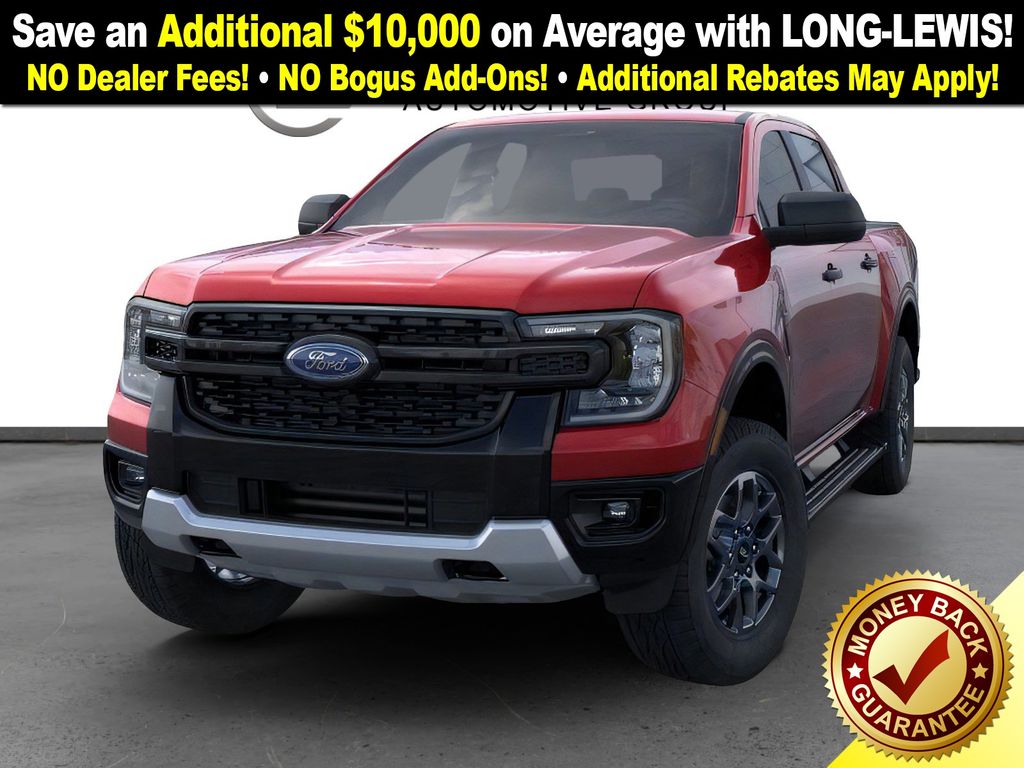 Ruby Red Metallic Tinted Clearcoat 2025 Ford Ranger XLT FCT 4WD 10-Speed Automatic 2.7L EcoBoost V6 4WD, 360-Degree Camera, 4-Wheel Disc Brakes, 6 Speakers, ABS brakes, Adaptive Cruise Control, Advanced Towing Package Plus Technology Package, Air Conditioning, Alloy wheels, AM/FM radio: SiriusXM, AM/FM Stereo, Auto High-beam Headlights, Auto-dimming Rear-View mirror, Black Running Boards, Brake assist, Class IV Trailer Hitch Receiver, Cloth Front Bucket Seats, Compass, Delay-off headlights, Driver door bin, Driver vanity mirror, Dual front impact airbags, Dual front side impact airbags, Electronic Stability Control, Emergency communication system: SYNC 4 911 Assist, Front anti-roll bar, Front Bucket Seats, Front Center Armrest, Front fog lights, Front License Plate Bracket, Front Parking Sensors, Front reading lights, Front wheel independent suspension, Fully automatic headlights, FX4 Off-Road Box Decal, FX4 Off-Road Package, FX4 Selectable Drive Modes, Gray Painted Center Bar & Grille Surround, Gray Painted Front Fascia & Rear Bumper, Illuminated entry, Integrated Box Side Step, Internet access capable: FordPass Connect 4G, Leather Shift Knob, Low tire pressure warning, Navigation system: Connected Navigation, Occupant sensing airbag, Off-Road Screen in Center Stack, Off-Road Tuned Shocks, Outside temperature display, Overhead airbag, Overhead console, Panic alarm, Passenger door bin, Passenger vanity mirror, Power door mirrors, Power steering, Power windows, Pro Trailer Backup Assist, Rear Parking Sensors w/Trailer Guidance, Rear reading lights, Rear seat center armrest, Rear step bumper, Rear window defroster, Remote keyless entry, Security system, SiriusXM Satellite Radio, Speed control, Speed-sensing steering, Sport Appearance Package, Sport Box Decal, Steering wheel mounted audio controls, SYNC 4A w/Connected Navigation, Telescoping steering wheel, Tilt steering wheel, Traction control, Trail Control, Trailer Brake Controller, Trailer Tow Package, Trip computer, Variably intermittent wipers, Voltmeter, Wheels: 17" Gray-Painted Aluminum, 4WD.