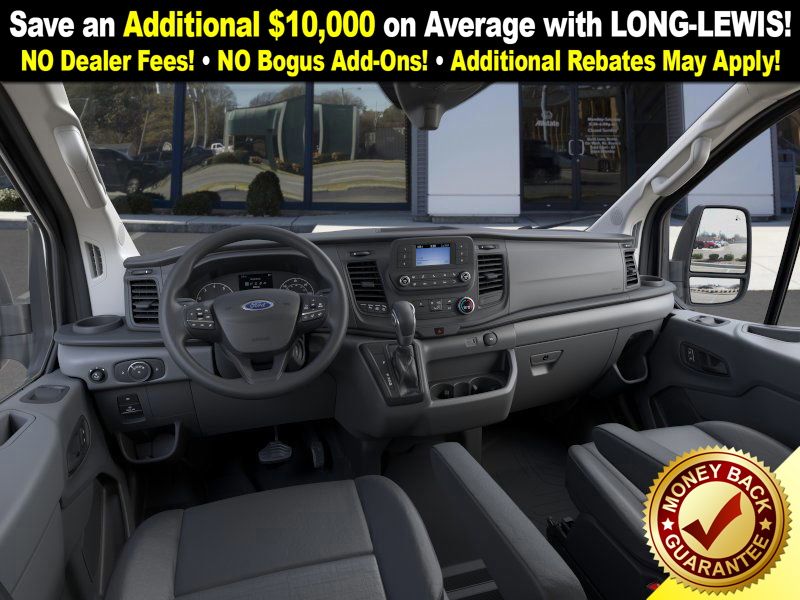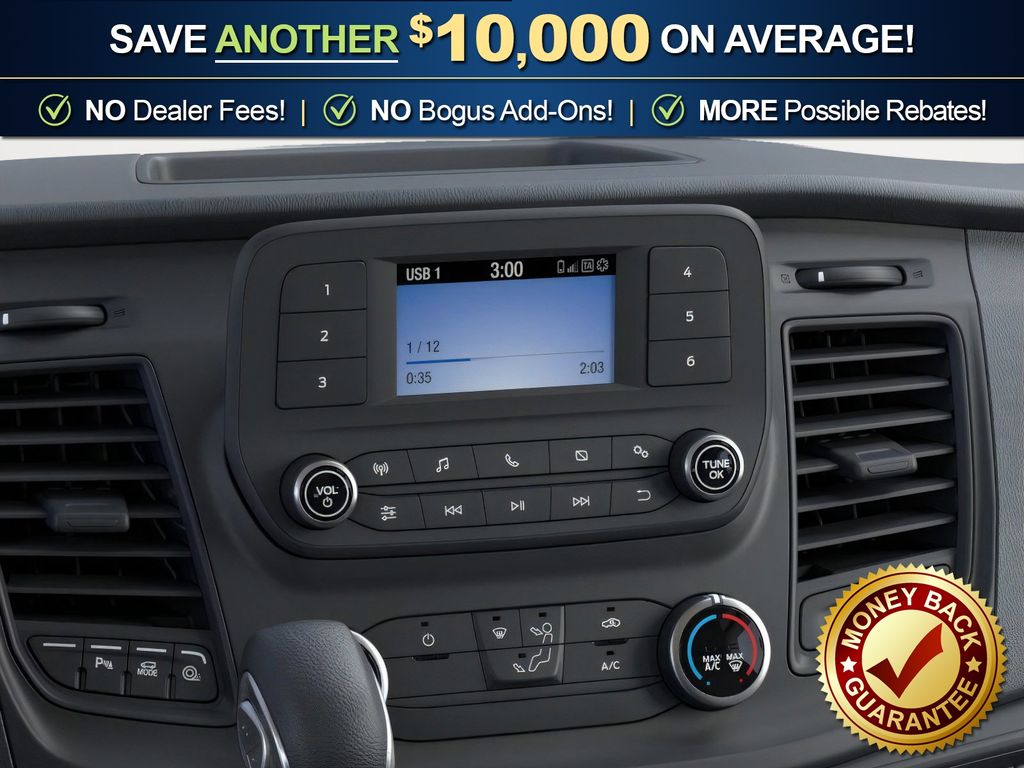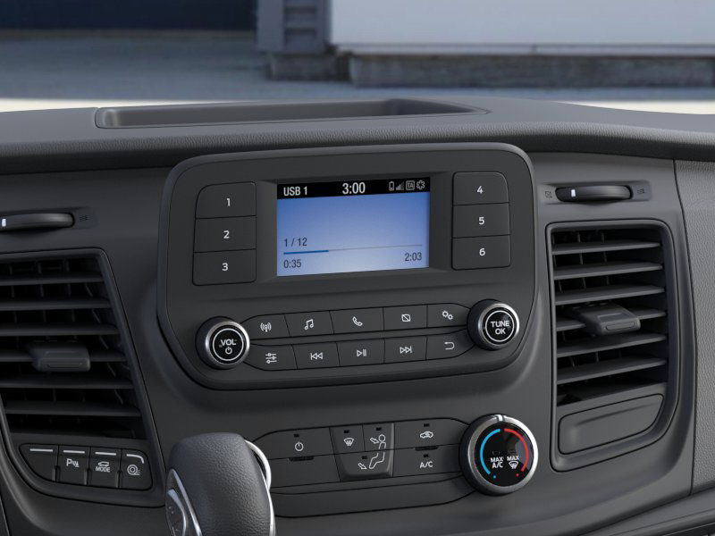 Oxford White 2025 Ford Transit-250 CMF RWD 10-Speed Automatic with Overdrive 3.5L V6 Flex Fuel 2 Additional Keys (4 Total), 3.73 Axle Ratio, 4 Speakers, 4-Wheel Disc Brakes, ABS brakes, Air Conditioning, AM/FM radio, AM/FM Stereo, Auto High-beam Headlights, Brake assist, Cloth Front Bucket Seats, Dark Palazzo Gray Vinyl Bucket Seats, Dark Palazzo Gray Vinyl Bucket Seats w/Armrests, Delay-off headlights, Driver door bin, Driver's Seat Mounted Armrest, Dual front impact airbags, Dual front side impact airbags, Electronic Stability Control, Exterior Parking Camera Rear, Front & Rear Vinyl Floor Covering, Front anti-roll bar, Front Bucket Seats, Front License Plate Bracket, Front reading lights, Front wheel independent suspension, Full Rear Compartment Lighting, Fully automatic headlights, Illuminated entry, Load Area Protection Package, Low tire pressure warning, Occupant sensing airbag, Overhead airbag, Panic alarm, Passenger cancellable airbag, Passenger door bin, Passenger-Side B-Pillar Assist Handle, Power door mirrors, Power steering, Power windows, Radio: AM/FM Stereo w/SYNC 3, Remote keyless entry, Reverse Sensing System, Short-Arm Manual-Folding Power Adjust Mirrors, Speed control, Steering wheel mounted audio controls, Tachometer, Telescoping steering wheel, Tilt steering wheel, Tow/Haul Mode w/Trailer Wiring Provisions, Traction control, Variably intermittent wipers, Vinyl Front Bucket Seats, Wheels: 16" Silver Steel w/Black Hubcap.