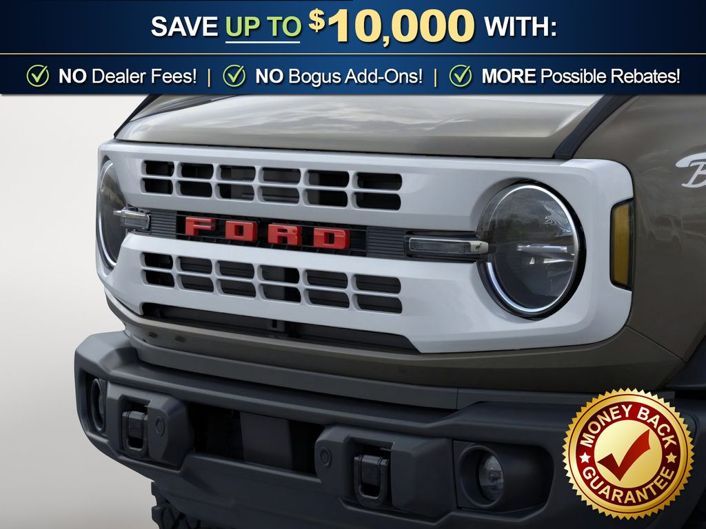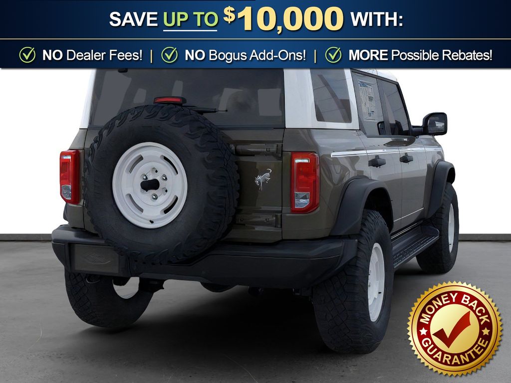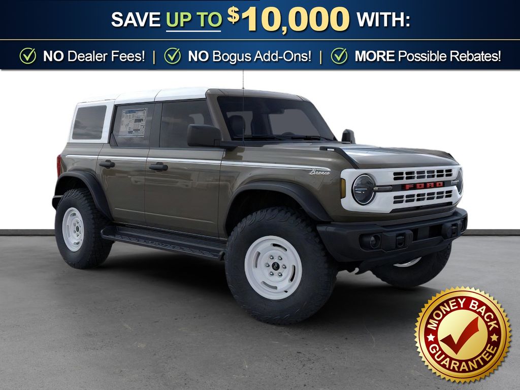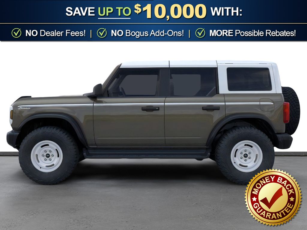 Marsh Gray 2026 Ford Bronco Heritage Edition NFT 4WD 10-Speed Automatic 2.7L EcoBoost V6 4-Wheel Disc Brakes, 7 Speakers, ABS brakes, Air Conditioning, Alloy wheels, AM/FM radio: SiriusXM with 360L, AM/FM Stereo, Auto High-beam Headlights, Auto-dimming Rear-View mirror, Automatic temperature control, Brake assist, Compass, Connected Navigation, Convertible HardTop, Convertible roof lining, Delay-off headlights, Driver door bin, Driver vanity mirror, Dual front impact airbags, Dual front side impact airbags, Electronic Stability Control, Emergency communication system: 911 Assist, Exterior Parking Camera Rear, Ford Connectivity Package (1-Year Included), Front anti-roll bar, Front Bucket Seats, Front Center Armrest, Front dual zone A/C, Front fog lights, Front reading lights, Front wheel independent suspension, Fully automatic headlights, Glass rear window, Heated door mirrors, Heated front seats, Heated steering wheel, Illuminated entry, Integrated roll-over protection, Low tire pressure warning, Navigation system: Connected Navigation, Occupant sensing airbag, Outside temperature display, Overhead airbag, Overhead console, Panic alarm, Passenger door bin, Passenger vanity mirror, Plaid Cloth Front Heated Bucket Seats, Power door mirrors, Power steering, Power windows, Radio data system, Rear window defroster, Rear window wiper, Remote keyless entry, Security system, SiriusXM with 360L, Speed control, Split folding rear seat, Steering wheel mounted audio controls, SYNC 4, Tachometer, Telescoping steering wheel, Tilt steering wheel, Traction control, Trip computer, Variably intermittent wipers, Wheels: 17" Unique White.