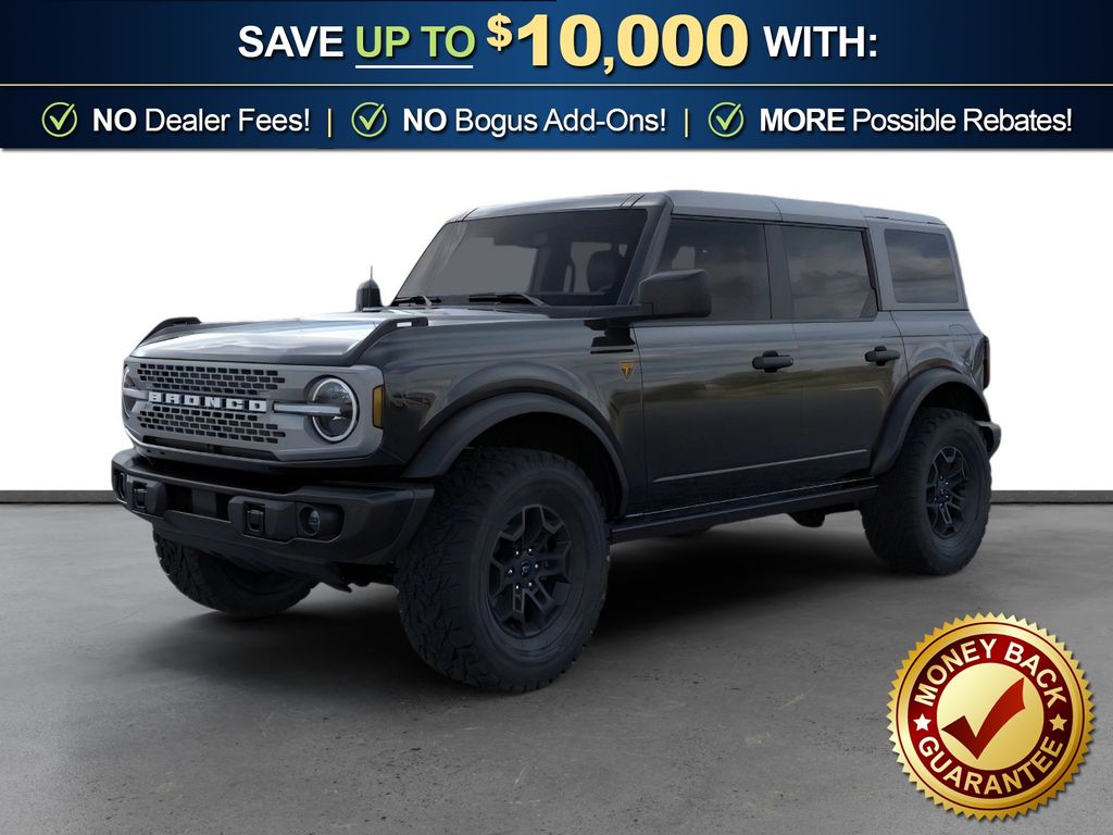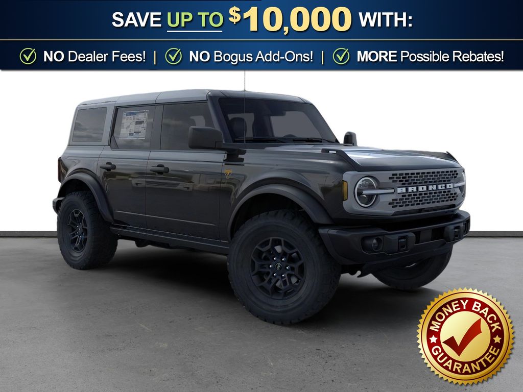 Dealer Discount of $1,550 off MSRP Shadow Black 2026 Ford Bronco Badlands NFT 4WD 10-Speed Automatic 2.7L EcoBoost V6 4-Wheel Disc Brakes, 4.7 Axle Ratio, 7 Speakers, ABS brakes, Air Conditioning, Alloy wheels, AM/FM radio: SiriusXM with 360L, AM/FM Stereo, Auto High-beam Headlights, Auto-dimming Rear-View mirror, Brake assist, Carbonized Gray Molded-in-Color Hard Top, Compass, Delay-off headlights, Driver door bin, Driver vanity mirror, Dual front impact airbags, Dual front side impact airbags, Electronic Stability Control, Emergency communication system: 911 Assist, Exterior Parking Camera Rear, Ford Connectivity Package (1-Year Included), Front anti-roll bar, Front Bucket Seats, Front Center Armrest, Front fog lights, Front License Plate Bracket, Front reading lights, Front wheel independent suspension, Fully automatic headlights, Hard Top Sound Deadening Headliner, Heated door mirrors, Heated front seats, Illuminated entry, Integrated roll-over protection, Leather Shift Knob, Low tire pressure warning, Marine Grade Vinyl Heated Bucket Seats, Occupant sensing airbag, Outside temperature display, Overhead airbag, Overhead console, Panic alarm, Passenger door bin, Passenger vanity mirror, Power door mirrors, Power steering, Power windows, Radio data system, Rear-Window Defroster and Washer, Remote keyless entry, Security system, SiriusXM with 360L, Speed control, Split folding rear seat, Steering wheel mounted audio controls, SYNC 4, Tachometer, Telescoping steering wheel, Tilt steering wheel, Traction control, Trip computer, Variably intermittent wipers, Voltmeter, Wheels: 17" Carbonized Gray-Painted Aluminum.