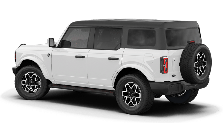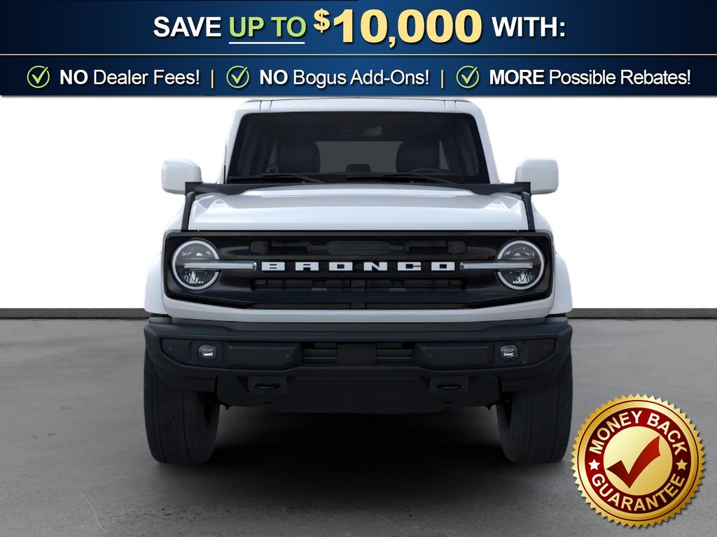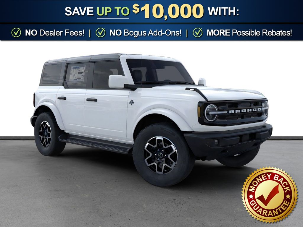 Dealer Discount of $1,212 off MSRP Oxford White 2026 Ford Bronco Outer Banks NFT 4WD 10-Speed Automatic 2.3L EcoBoost I-4 18" Bright Machined Aluminum Wheels, 3.73 Axle Ratio, 4-Wheel Disc Brakes, 7 Speakers, ABS brakes, Air Conditioning, Alloy wheels, AM/FM radio: SiriusXM with 360L, AM/FM Stereo, Auto High-beam Headlights, Auto-dimming Rear-View mirror, Automatic temperature control, Brake assist, Compass, Connected Navigation, Delay-off headlights, Driver door bin, Driver vanity mirror, Dual front impact airbags, Dual front side impact airbags, Electronic Stability Control, Emergency communication system: 911 Assist, Exterior Parking Camera Rear, Ford Connectivity Package (1-Year Included), Front anti-roll bar, Front Bucket Seats, Front Center Armrest, Front dual zone A/C, Front fog lights, Front License Plate Bracket, Front reading lights, Front wheel independent suspension, Fully automatic headlights, Hard Top Sound Deadening Headliner, Heated door mirrors, Heated front seats, Heated Leather-Trimmed/Vinyl Bucket Seats, Heated steering wheel, Illuminated entry, Integrated roll-over protection, Leather Shift Knob, Low tire pressure warning, Navigation system: Connected Navigation, Occupant sensing airbag, Outside temperature display, Overhead airbag, Overhead console, Panic alarm, Passenger door bin, Passenger vanity mirror, Power door mirrors, Power driver seat, Power passenger seat, Power steering, Power windows, Radio data system, Rear seat center armrest, Rear-Window Defroster and Washer, Remote keyless entry, Security system, Shadow Black-Painted Hard Top, SiriusXM with 360L, Speed control, Split folding rear seat, Steering wheel mounted audio controls, SYNC 4, Tachometer, Telescoping steering wheel, Tilt steering wheel, Traction control, Trip computer, Variably intermittent wipers, Voltmeter.
