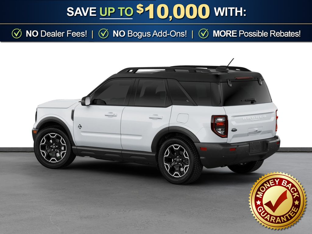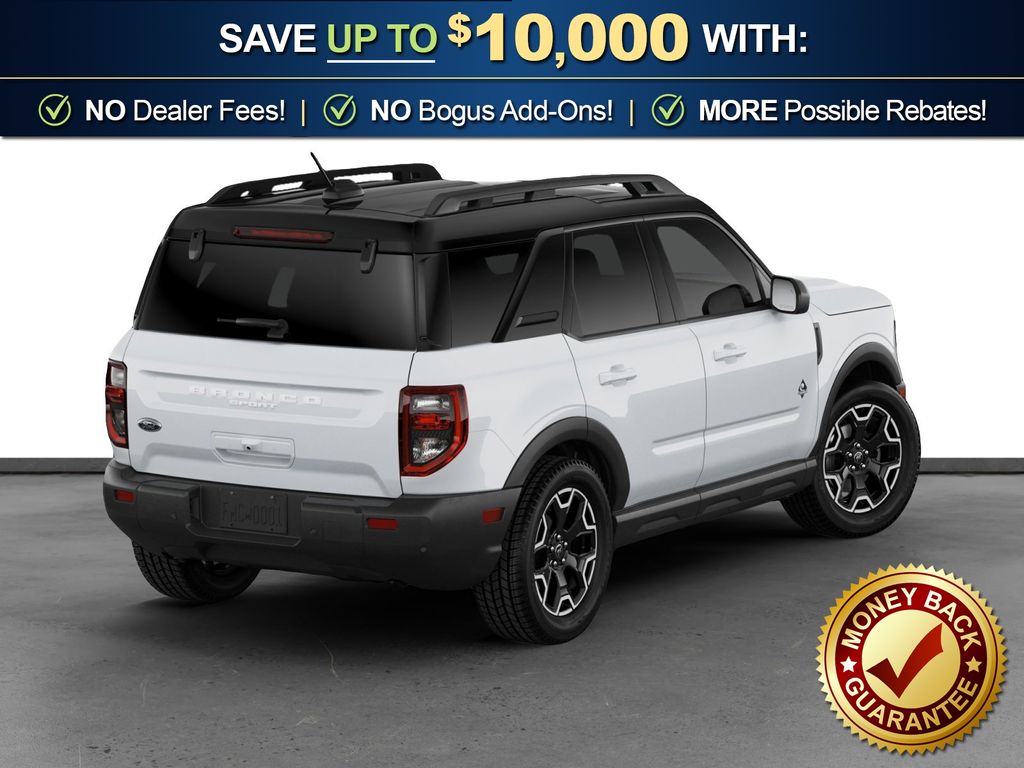 Dealer Discount of $1,136 off MSRP Priced below KBB Fair Purchase Price! Oxford White 2026 Ford Bronco Sport Outer Banks NFT 4WD 8-Speed Automatic 1.5L EcoBoost 4-Wheel Disc Brakes, 6 Speakers, ABS brakes, Air Conditioning, Alloy wheels, AM/FM radio: SiriusXM with 360L, AM/FM Stereo, Apple CarPlay/Android Auto, Auto High-beam Headlights, Auto-dimming Rear-View mirror, Automatic temperature control, Brake assist, Compass, Delay-off headlights, Driver door bin, Driver vanity mirror, Dual front impact airbags, Dual front side impact airbags, Electronic Stability Control, Emergency communication system: SYNC 4 911 Assist, Exterior Parking Camera Rear, Ford Connectivity Package (1-Year Included), Four wheel independent suspension, Front anti-roll bar, Front Bucket Seats, Front Center Armrest, Front Driver/Passenger Seat Back Map Pockets, Front dual zone A/C, Front fog lights, Front License Plate Bracket, Front reading lights, Fully automatic headlights, Heated door mirrors, Heated front seats, Heated steering wheel, Illuminated entry, Internet access capable: 5G Modem - Ford Connectivity Package, Knee airbag, Low tire pressure warning, Memory seat, Occupant sensing airbag, Outside temperature display, Overhead airbag, Overhead console, Panic alarm, Passenger door bin, Passenger vanity mirror, Power door mirrors, Power driver seat, Power passenger seat, Power steering, Power windows, Radio data system, Rear anti-roll bar, Rear Parking Sensors, Rear reading lights, Rear seat center armrest, Rear window defroster, Rear window wiper, Remote keyless entry, Security system, SiriusXM with 360L, Speed control, Speed-sensing steering, Speed-Sensitive Wipers, Split folding rear seat, Steering wheel mounted audio controls, SYNC 4 with Enhanced Voice Recognition, Tachometer, Telescoping steering wheel, Tilt steering wheel, Traction control, Trip computer, Variably intermittent wipers, Wheels: 18" Ebony Black.