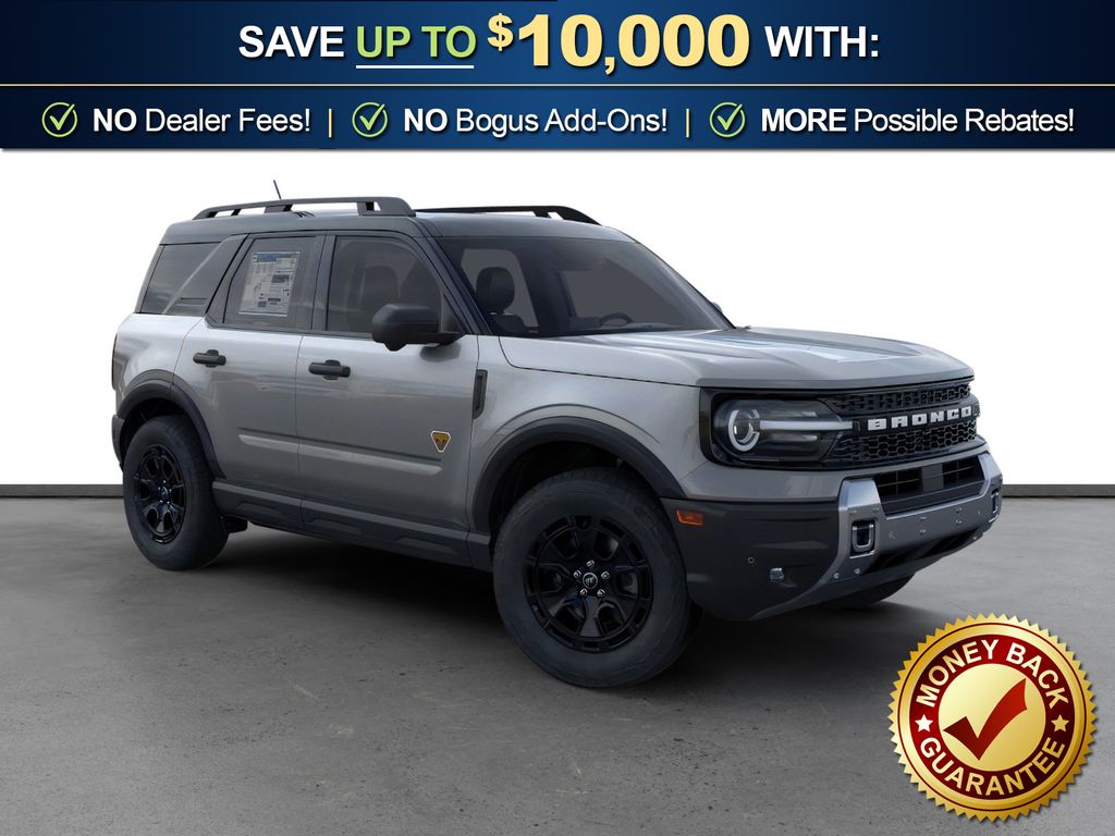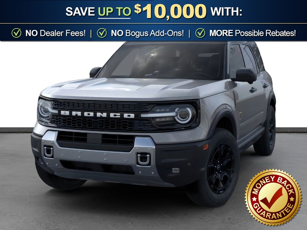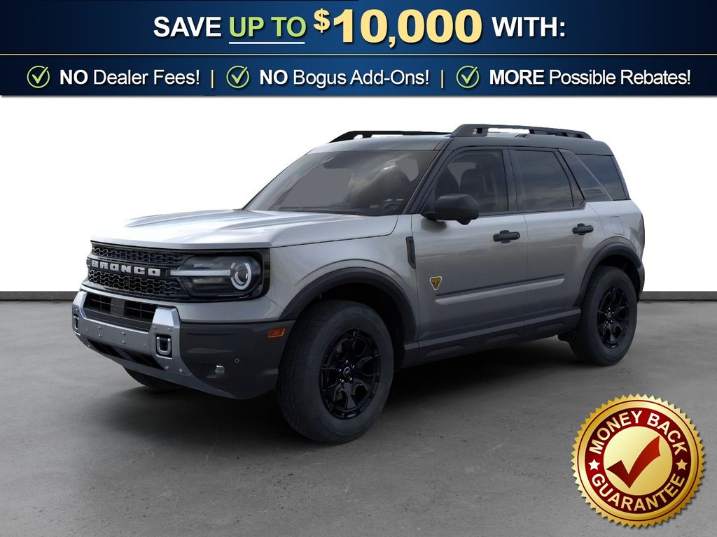 Dealer Discount of $1,515 off MSRP Carbonized Gray Metallic 2026 Ford Bronco Sport Badlands NFT 4WD 8-Speed Automatic EcoBoost 2.0L I4 GTDi DOHC Turbocharged VCT 2 Rear D-Ring Recovery Hooks, 4-Wheel Disc Brakes, 6 Speakers, 850W Engine Cooling Fan, ABS brakes, Air Conditioning, Alloy wheels, AM/FM radio: SiriusXM with 360L, AM/FM Stereo, Apple CarPlay/Android Auto, Auto High-beam Headlights, Auto-dimming Rear-View mirror, Automatic temperature control, Auxiliary Switches and Wiring, Badlands Tech Package, Brake assist, Compass, Connected Navigation (1-Year Included), Delay-off headlights, Driver door bin, Driver vanity mirror, Dual front impact airbags, Dual front side impact airbags, Electronic Stability Control, Emergency communication system: SYNC 4 911 Assist, Exterior Parking Camera Rear, Ford Connectivity Package (1-Year Included), Four wheel independent suspension, Front anti-roll bar, Front Bucket Seats, Front Center Armrest, Front fog lights, Front License Plate Bracket, Front reading lights, Fully automatic headlights, Heated door mirrors, Heated front seats, Heated steering wheel, High Clearance Fender Flares, HOSS 3.0 Off-Road Suspension, Illuminated entry, Internet access capable: 5G Modem - Ford Connectivity Package, Knee airbag, Leather-Trimmed Heated Front Sport Contour Bucket Seats, Low tire pressure warning, Memory seat, Noise Reduction Module, Occupant sensing airbag, Outside temperature display, Overhead airbag, Overhead console, Panic alarm, Passenger door bin, Passenger vanity mirror, Power door mirrors, Power driver seat, Power Moonroof, Power passenger seat, Power steering, Power windows, Radio data system, Radio: HD w/B&O Sound System by Bang & Olufsen, Rear anti-roll bar, Rear Black Bumpers with Steel Plates, Rear reading lights, Rear seat center armrest, Rear window defroster, Rear window wiper, Remote keyless entry, Sasquatch Badlands Package, Security system, SiriusXM with 360L, Speed control, Speed-sensing steering, Speed-Sensitive Wipers, Split folding rear seat, Steering wheel mounted audio controls, SYNC 4 with Enhanced Voice Recognition, Tachometer, Telescoping steering wheel, Tilt steering wheel, Traction control, Trip computer, Variably intermittent wipers, Wheels: 17" Ebony Black-Painted Aluminum, Wheels: 17" Matte Black-Painted Aluminum.