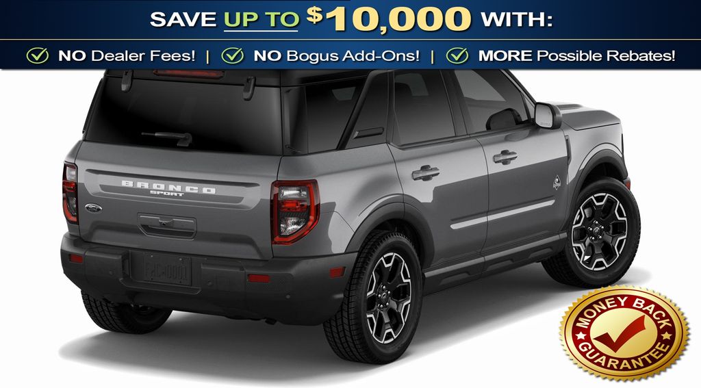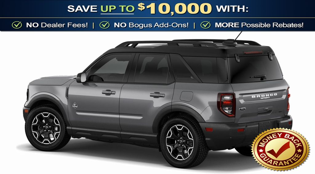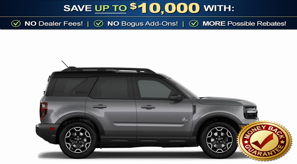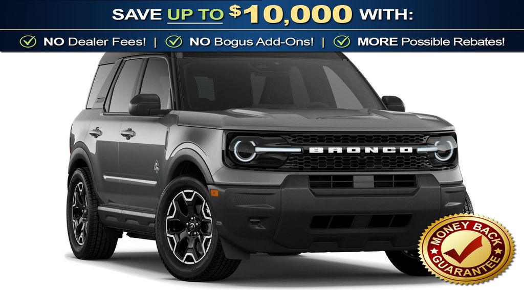 Dealer Discount of $1,136 off MSRP Carbonized Gray Metallic 2026 Ford Bronco Sport Outer Banks NFT 4WD 8-Speed Automatic 1.5L EcoBoost 4-Wheel Disc Brakes, 6 Speakers, ABS brakes, Air Conditioning, Alloy wheels, AM/FM radio: SiriusXM with 360L, AM/FM Stereo, Apple CarPlay/Android Auto, Auto High-beam Headlights, Auto-dimming Rear-View mirror, Automatic temperature control, Brake assist, Compass, Delay-off headlights, Driver door bin, Driver vanity mirror, Dual front impact airbags, Dual front side impact airbags, Electronic Stability Control, Emergency communication system: SYNC 4 911 Assist, Exterior Parking Camera Rear, Ford Connectivity Package (1-Year Included), Four wheel independent suspension, Front anti-roll bar, Front Bucket Seats, Front Center Armrest, Front Driver/Passenger Seat Back Map Pockets, Front dual zone A/C, Front fog lights, Front License Plate Bracket, Front reading lights, Fully automatic headlights, Heated door mirrors, Heated front seats, Heated steering wheel, Illuminated entry, Internet access capable: 5G Modem - Ford Connectivity Package, Knee airbag, Low tire pressure warning, Memory seat, Occupant sensing airbag, Outside temperature display, Overhead airbag, Overhead console, Panic alarm, Passenger door bin, Passenger vanity mirror, Power door mirrors, Power driver seat, Power passenger seat, Power steering, Power windows, Radio data system, Rear anti-roll bar, Rear Parking Sensors, Rear reading lights, Rear seat center armrest, Rear window defroster, Rear window wiper, Remote keyless entry, Security system, SiriusXM with 360L, Speed control, Speed-sensing steering, Speed-Sensitive Wipers, Split folding rear seat, Steering wheel mounted audio controls, SYNC 4 with Enhanced Voice Recognition, Tachometer, Telescoping steering wheel, Tilt steering wheel, Traction control, Trip computer, Variably intermittent wipers, Wheels: 18" Ebony Black.