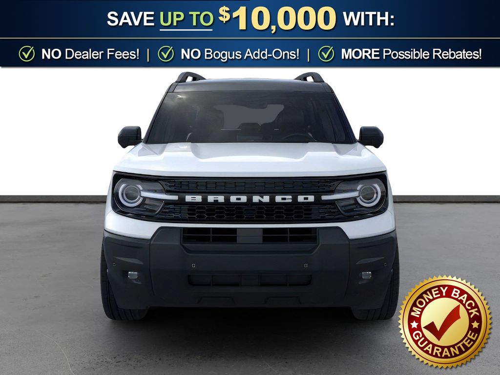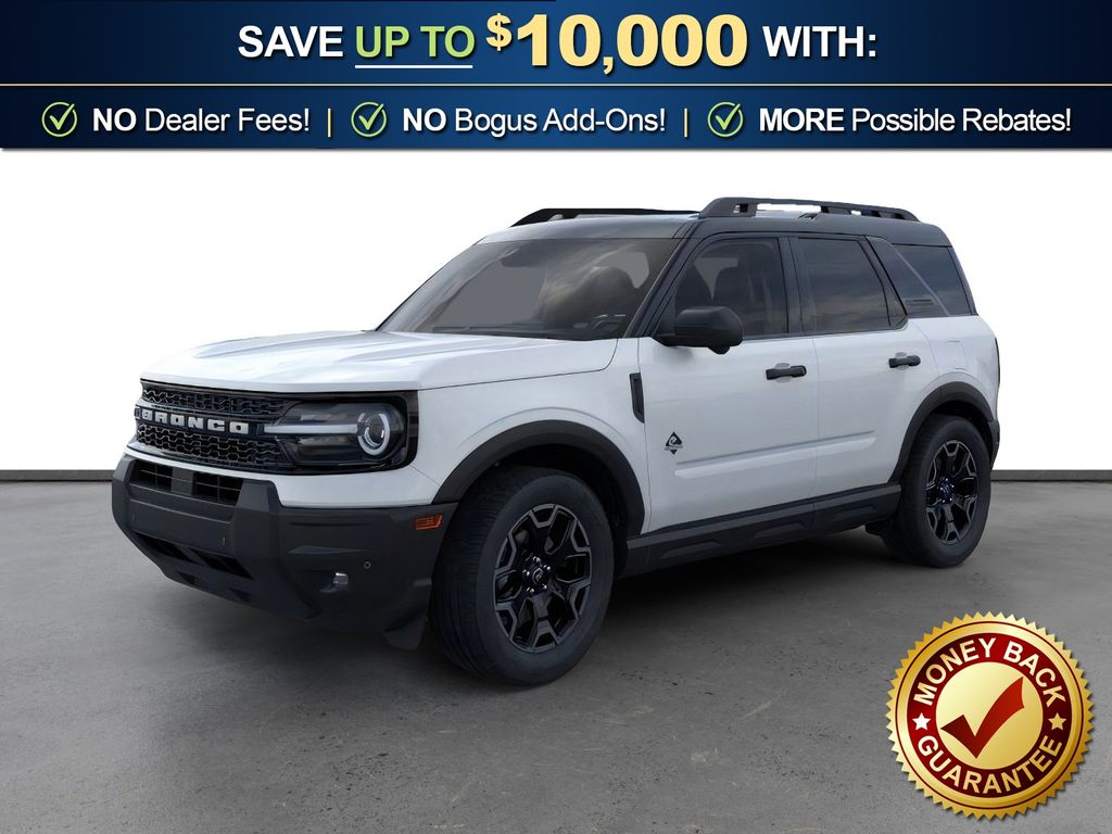 Oxford White 2026 Ford Bronco Sport Outer Banks FCT 4WD 8-Speed Automatic 1.5L EcoBoost 360-Degree Camera with Trail View, 4-Wheel Disc Brakes, 6 Speakers, ABS brakes, Air Conditioning, Alloy wheels, AM/FM radio: SiriusXM with 360L, AM/FM Stereo, Apple CarPlay/Android Auto, Auto High-beam Headlights, Auto-dimming Rear-View mirror, Automatic temperature control, Brake assist, Compass, Connected Navigation (1-Year Included), Delay-off headlights, Driver door bin, Driver vanity mirror, Dual front impact airbags, Dual front side impact airbags, Electronic Stability Control, Emergency communication system: SYNC 4 911 Assist, Exterior Parking Camera Rear, Ford Connectivity Package (1-Year Included), Four wheel independent suspension, Front anti-roll bar, Front Bucket Seats, Front Center Armrest, Front Driver/Passenger Seat Back Map Pockets, Front dual zone A/C, Front fog lights, Front License Plate Bracket, Front Parking Sensors, Front reading lights, Fully automatic headlights, Heated door mirrors, Heated front seats, Heated steering wheel, Illuminated entry, Internet access capable: 5G Modem - Ford Connectivity Package, Knee airbag, Low tire pressure warning, Memory seat, Occupant sensing airbag, Outer Banks Tech Package+, Outside temperature display, Overhead airbag, Overhead console, Panic alarm, Passenger door bin, Passenger vanity mirror, Power door mirrors, Power driver seat, Power Moonroof, Power passenger seat, Power steering, Power windows, Premium Trimmed Heated Front Sport Contour Bucket Seats, Radio data system, Radio: HD w/B&O Sound System by Bang & Olufsen, Rear anti-roll bar, Rear Parking Sensors, Rear reading lights, Rear seat center armrest, Rear window defroster, Rear window wiper, Remote keyless entry, Reverse Brake Assist, Security system, SiriusXM with 360L, Speed control, Speed-sensing steering, Speed-Sensitive Wipers, Split folding rear seat, Steering wheel mounted audio controls, SYNC 4 with Enhanced Voice Recognition, Tachometer, Telescoping steering wheel, Tilt steering wheel, Traction control, Trip computer, Variably intermittent wipers, Wheels: 18" Ebony Black.